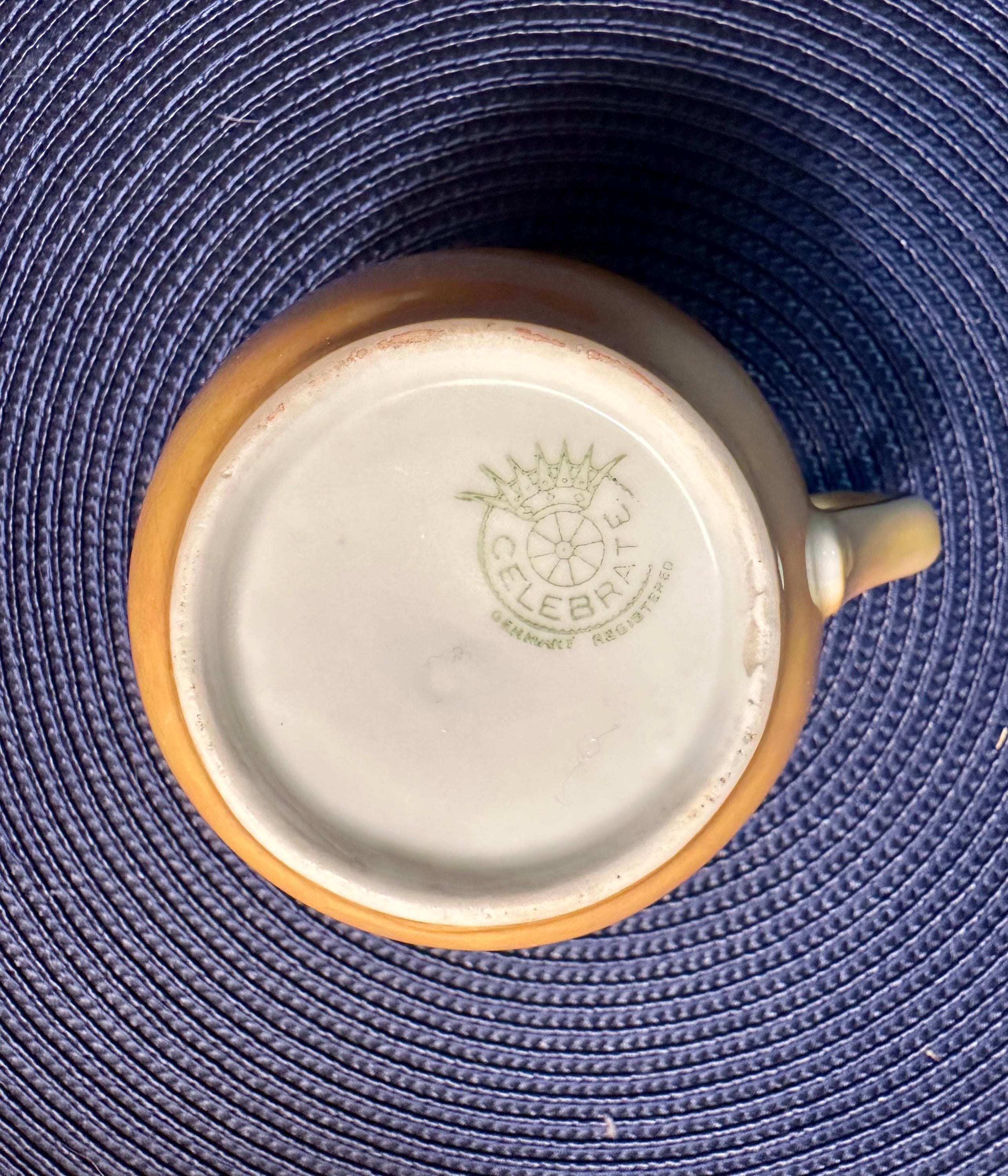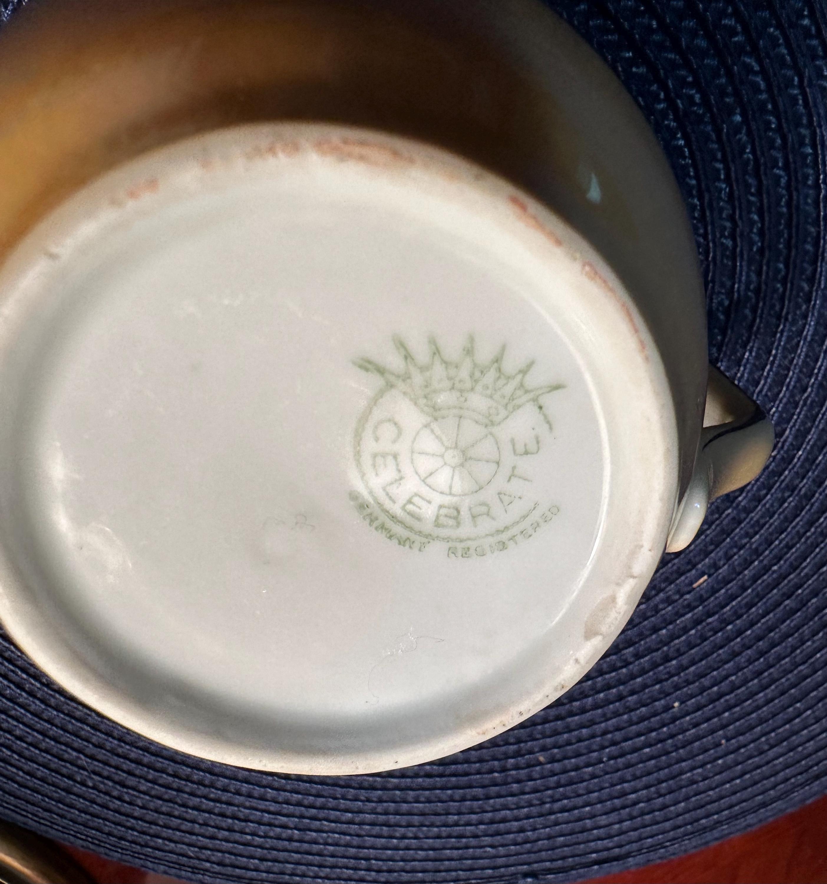 1930’s-1940’s Lusterware Celebrate Art Deco porcelain creamer made in Germany. This is only the creamer and not the set of creamer and sugar bowl. This creamer has a discoloration on the side of the creamer. On the bottom of the creamer it is stamped with: “CELEBRATE” “Germany Registered” Please contact seller if you would like to have more pictures. **Disclaimer- color maybe different due to lighting or camera”