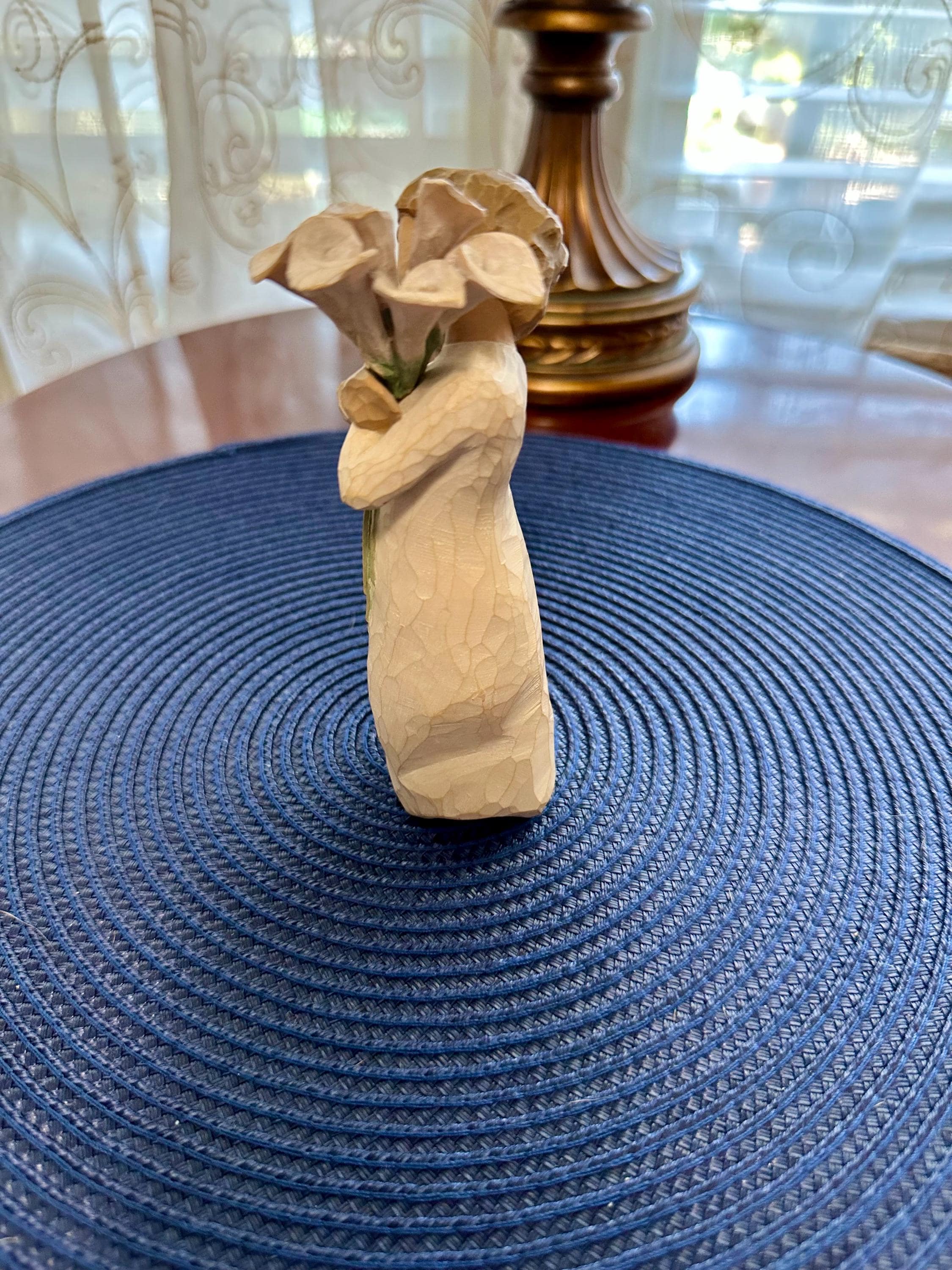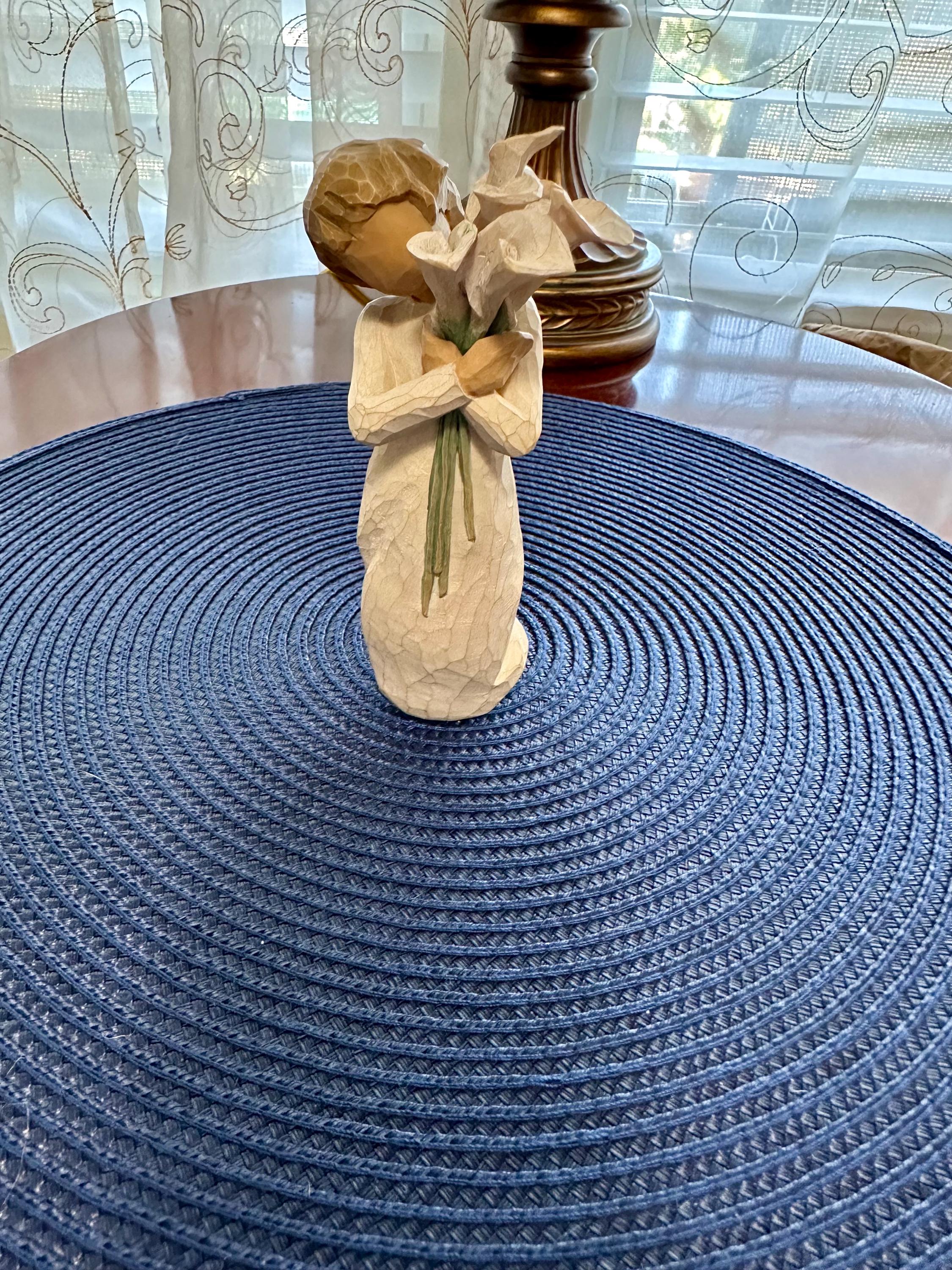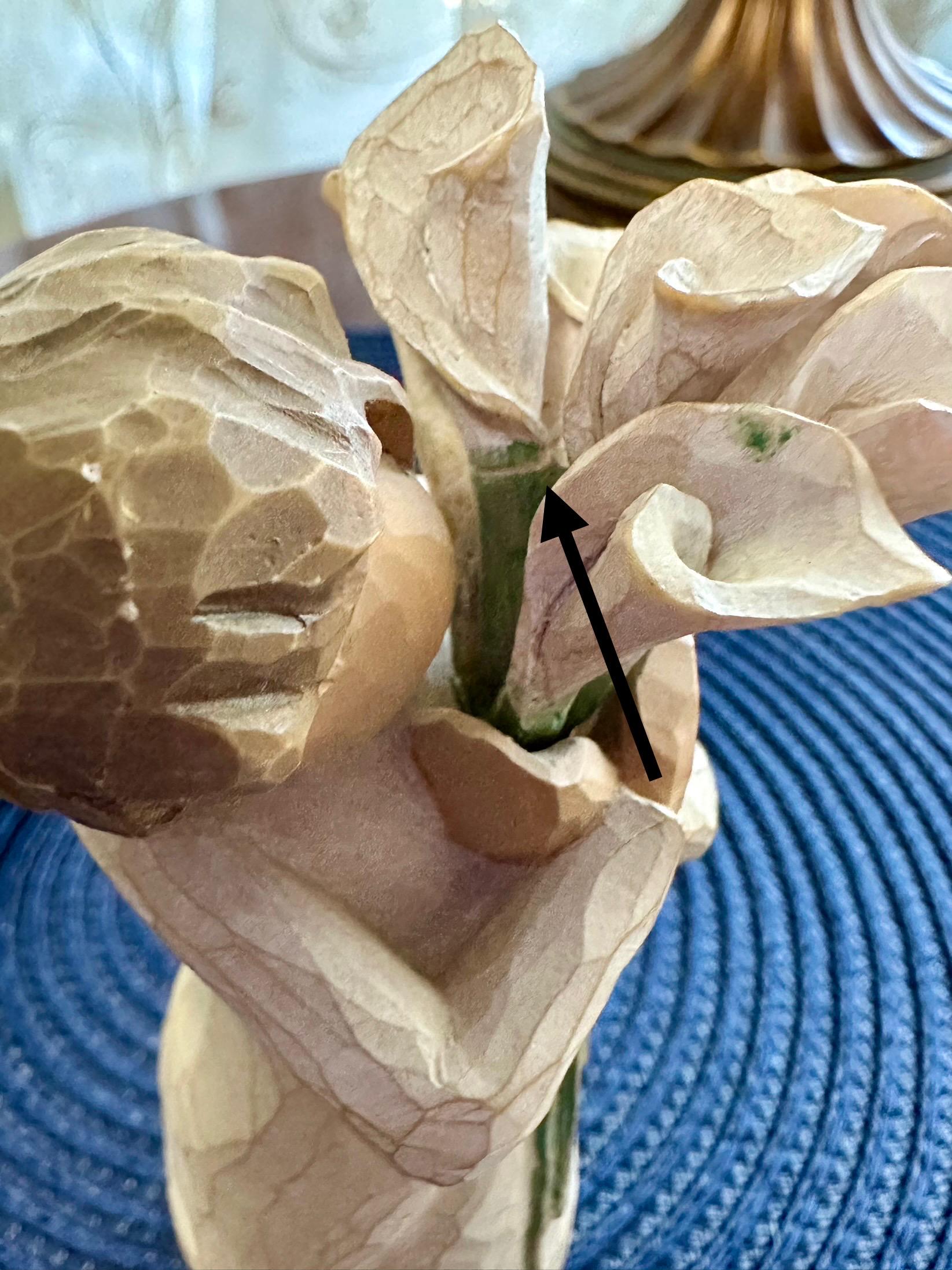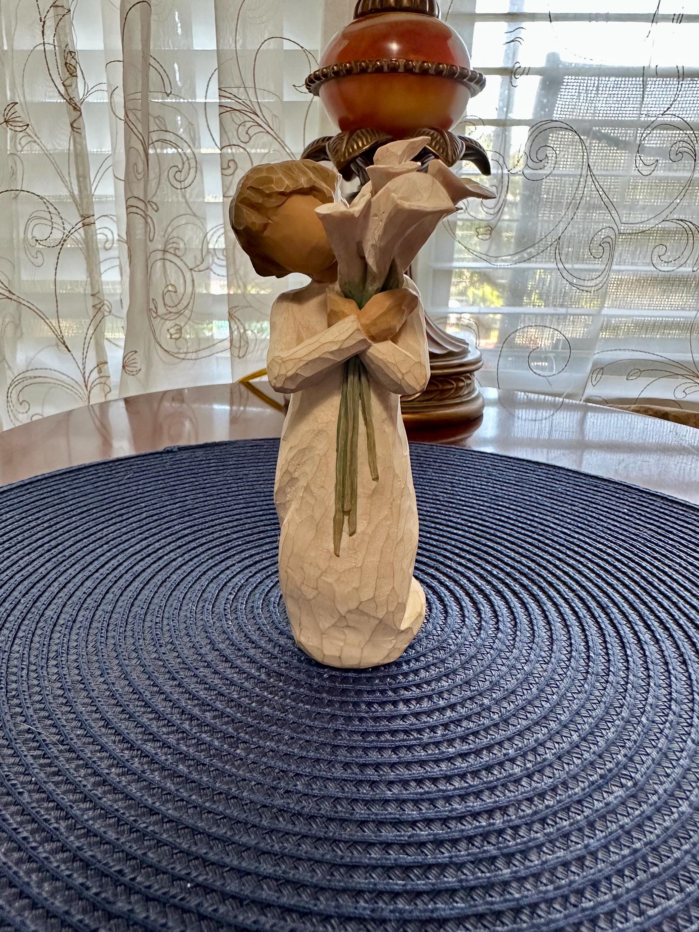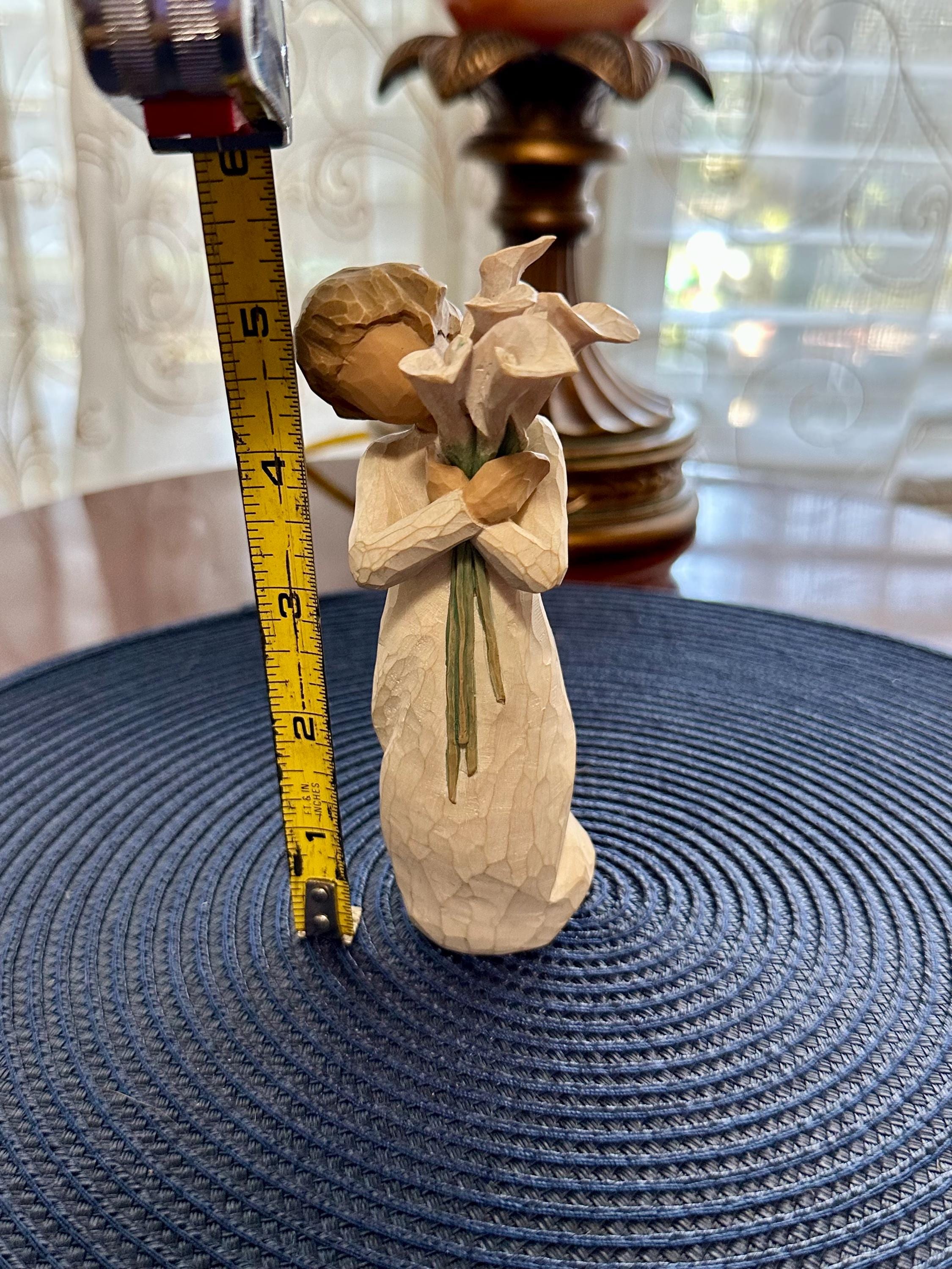 Willow Tree Figurine “Beautiful Wishes” made by Susan Lordi. This does not come in its original box and does not have the tag. There is a slight crack on the stem of the flower (noted in pictures). This is a must have for your collection. We offer complimentary wrapping on all items. If you would like us to wrap it for you please let us know what occasion is it for so we can use the appropriate supplies. All offers will be accepted. Please look at our other Willow Tree Figurines.