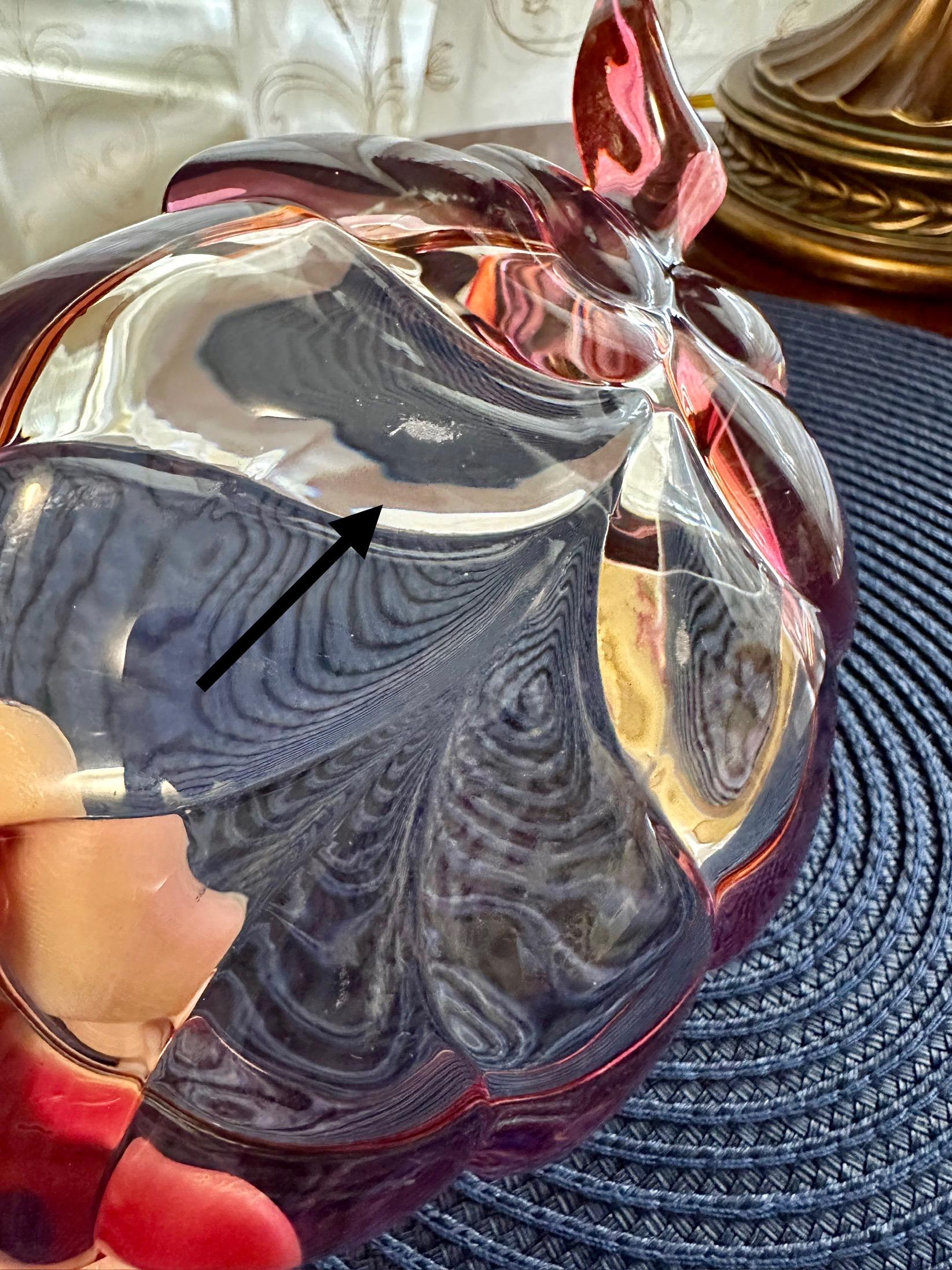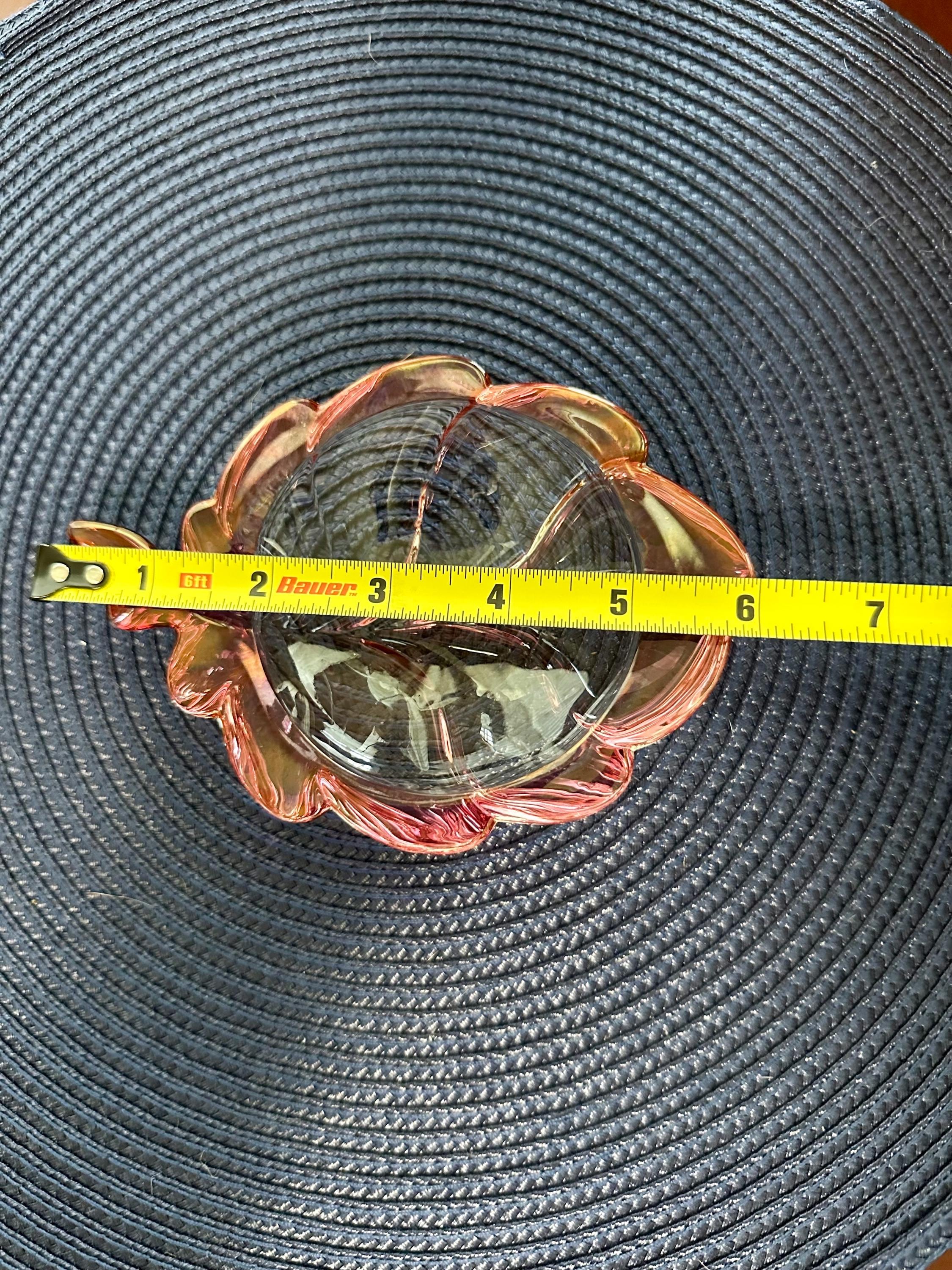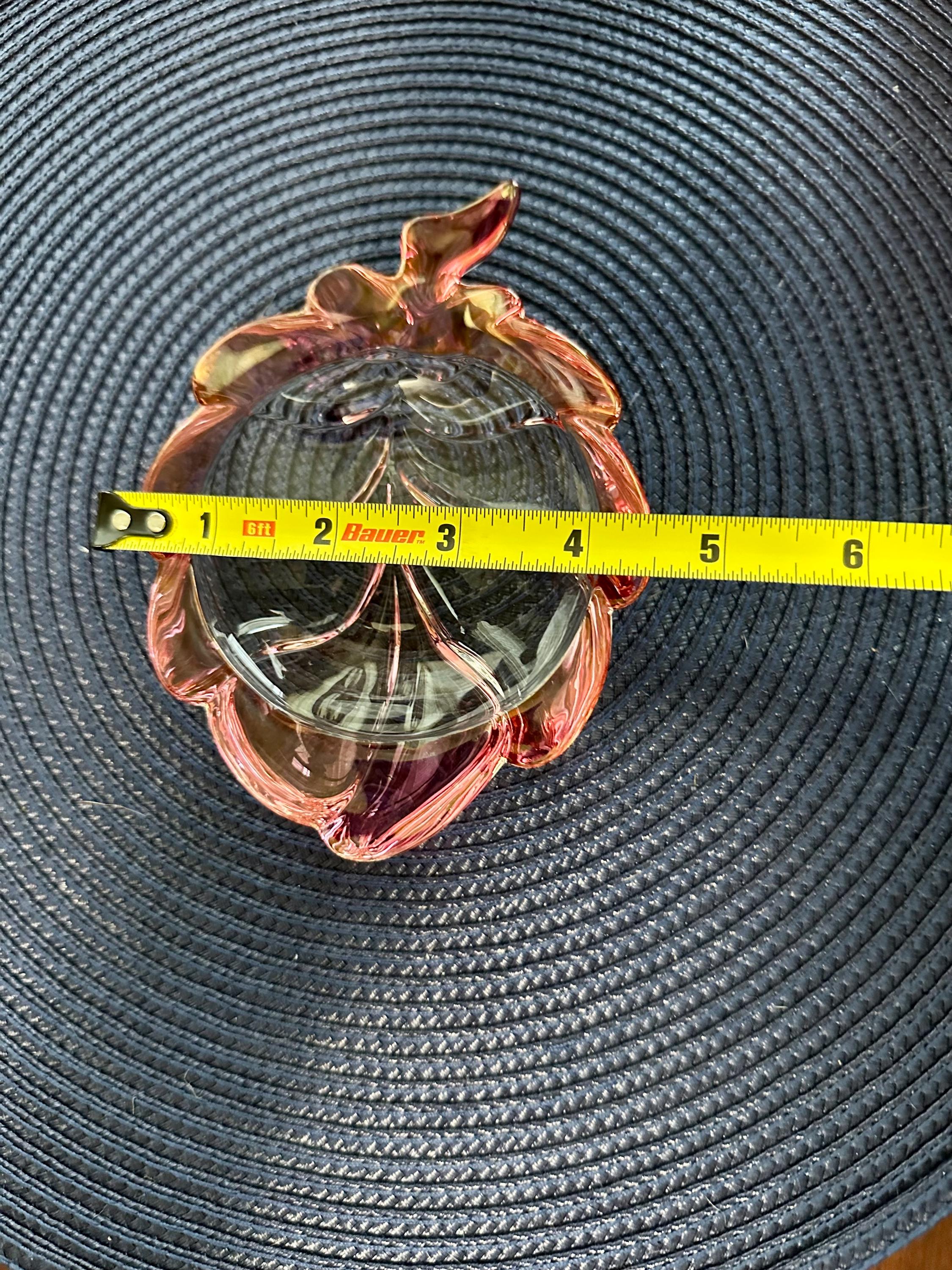 This is a vintage pink leaf-shaped trinket dish. There is a scuff on the bottom of the dish from where it was placed. Due to age, some of the coloration is missing; pictures are included. Please contact the seller if you have any questions or would like to make an offer.