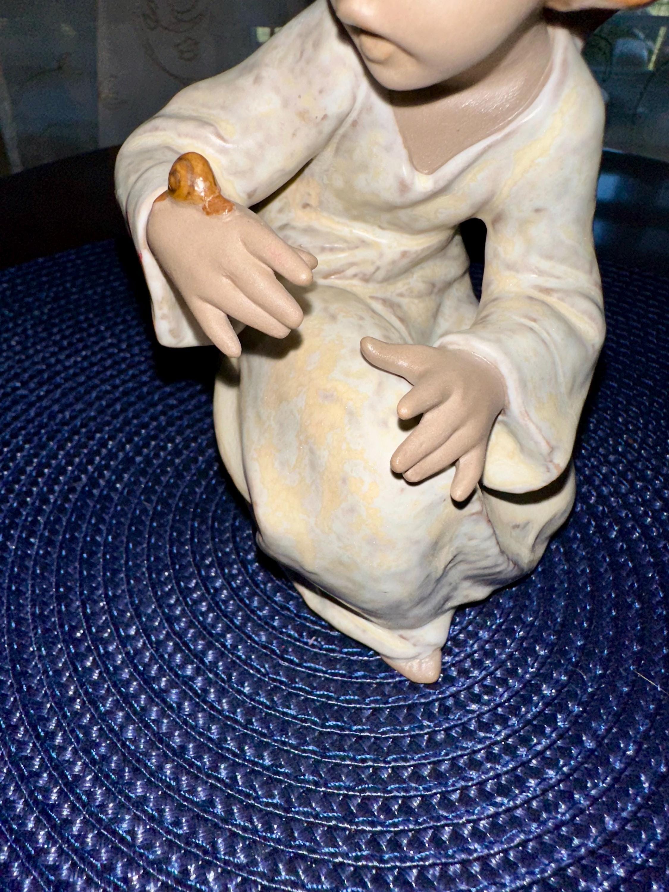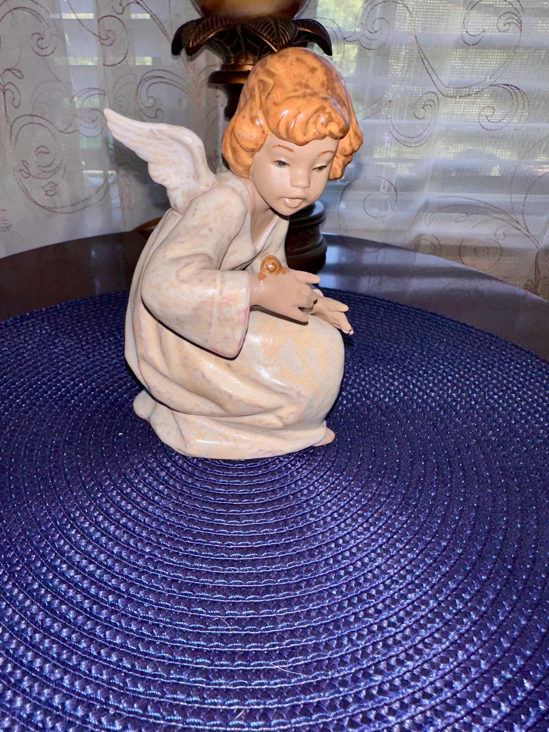 This is a retired Lladro figurine of an angel with a snail on her right wrist. Llado founded in 1953 by three brothers in Spain, is known for its handcrafted porcelain sculptures. This is a rare find. This item’s number is 2214. There are no chips, cracks, crazing, or blemishes. All offers with be accepted, we have 2 in stock. Please contact the seller if you have an offer or would like additional information.
