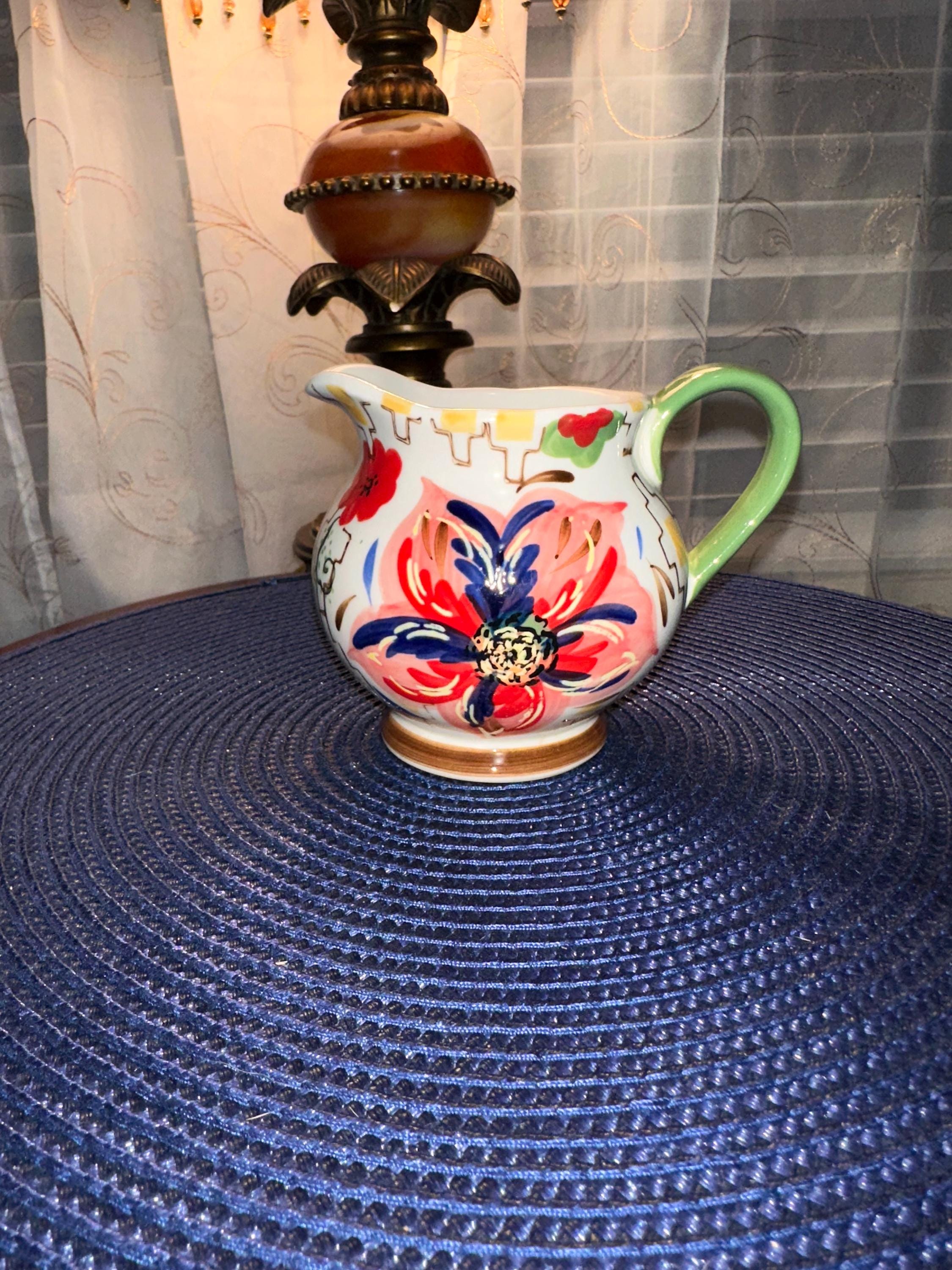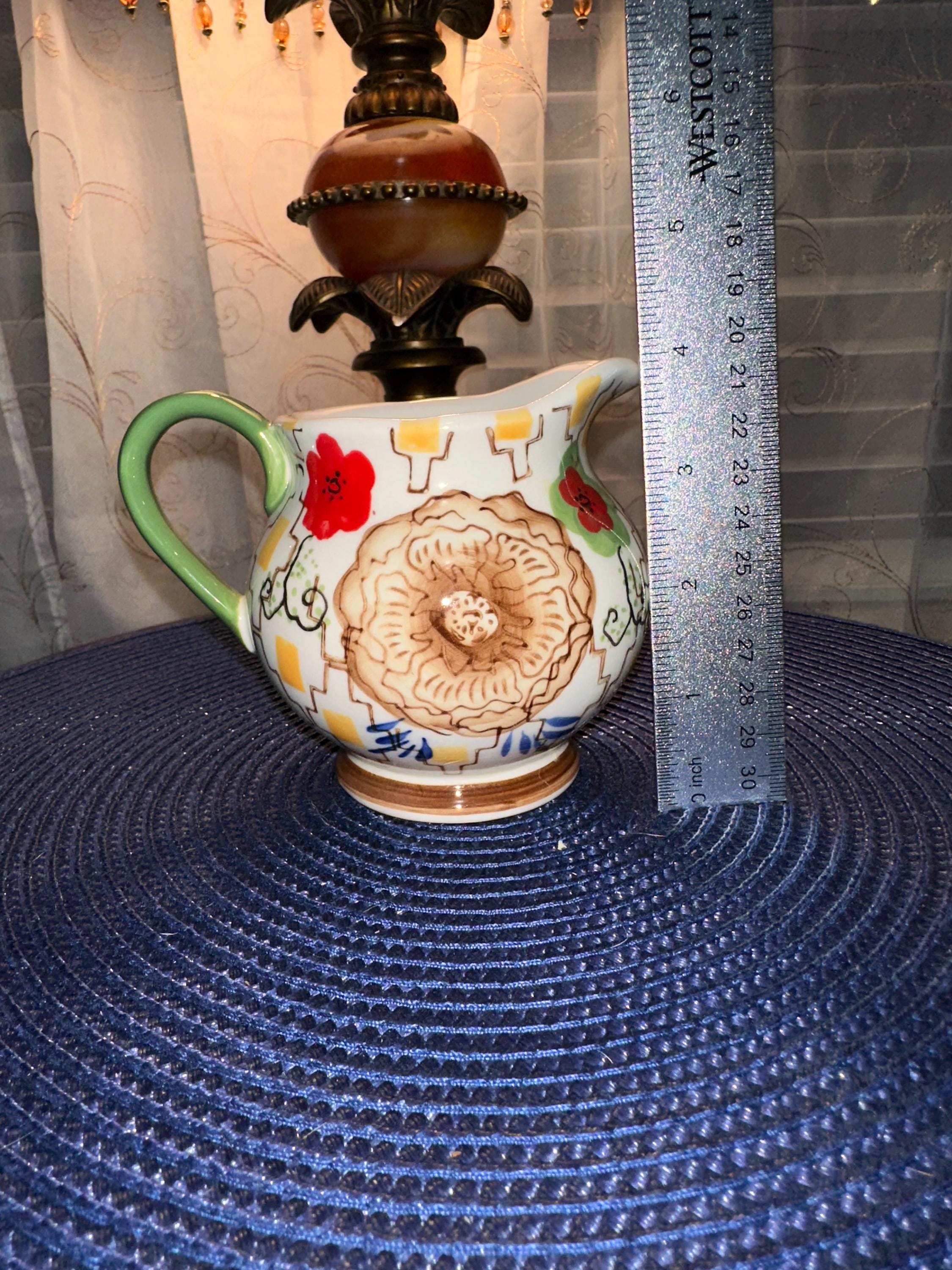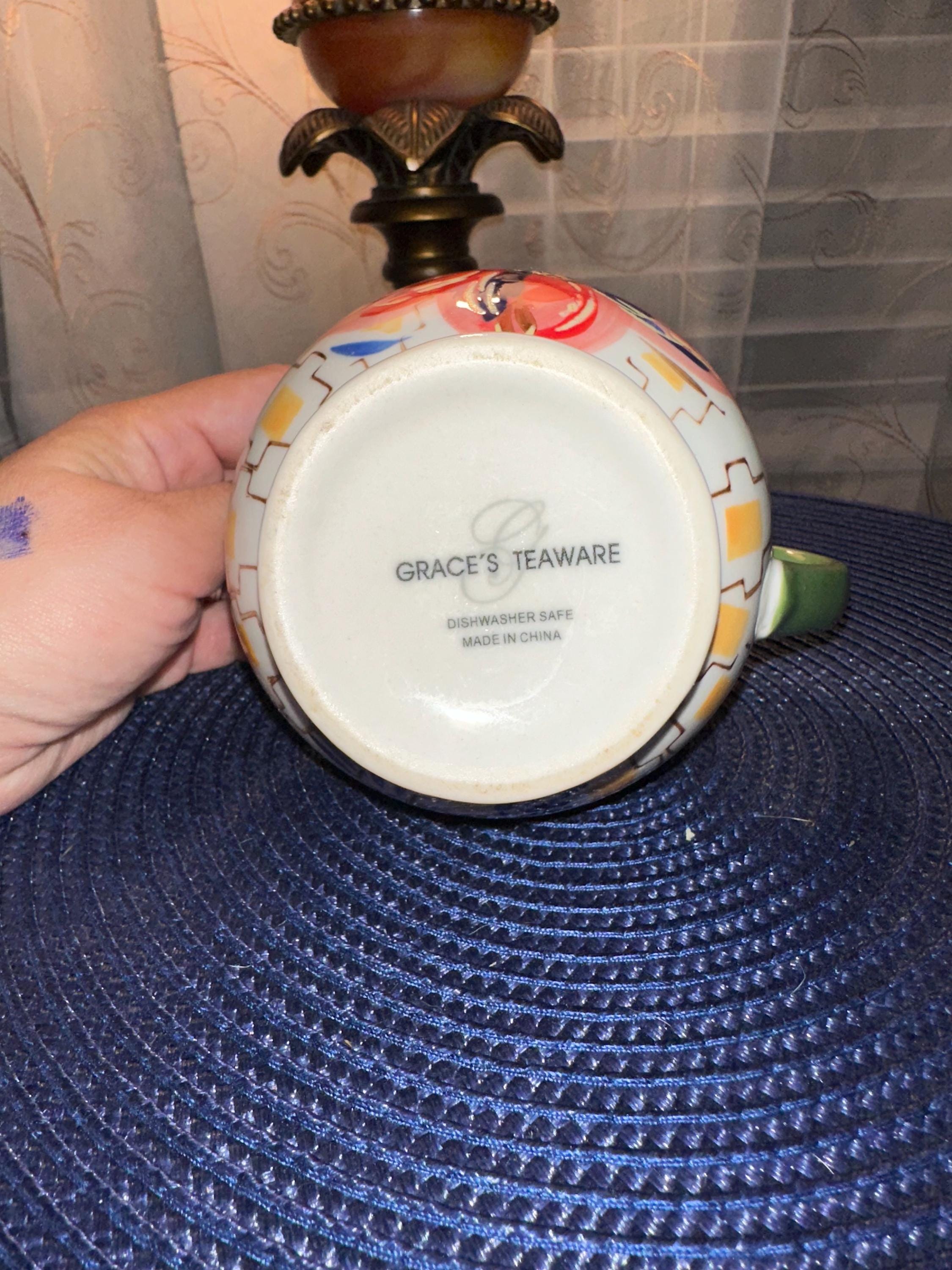 Grace Teaware Creamer in great conditions stands at 4 inches tall. There are no cracks, chips, cracks or crazing. This is only the creamer and does not have the original box. However, we will make sure that it gets to your house with love and care. If you have any questions or would like additional pictures please contact us. Color may be different due to lighting or the camera.