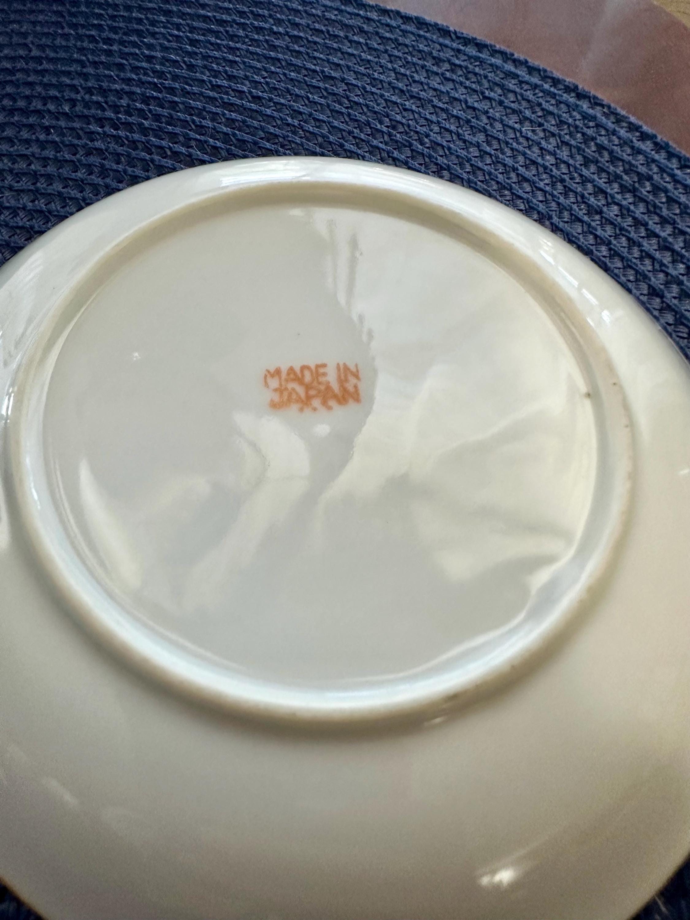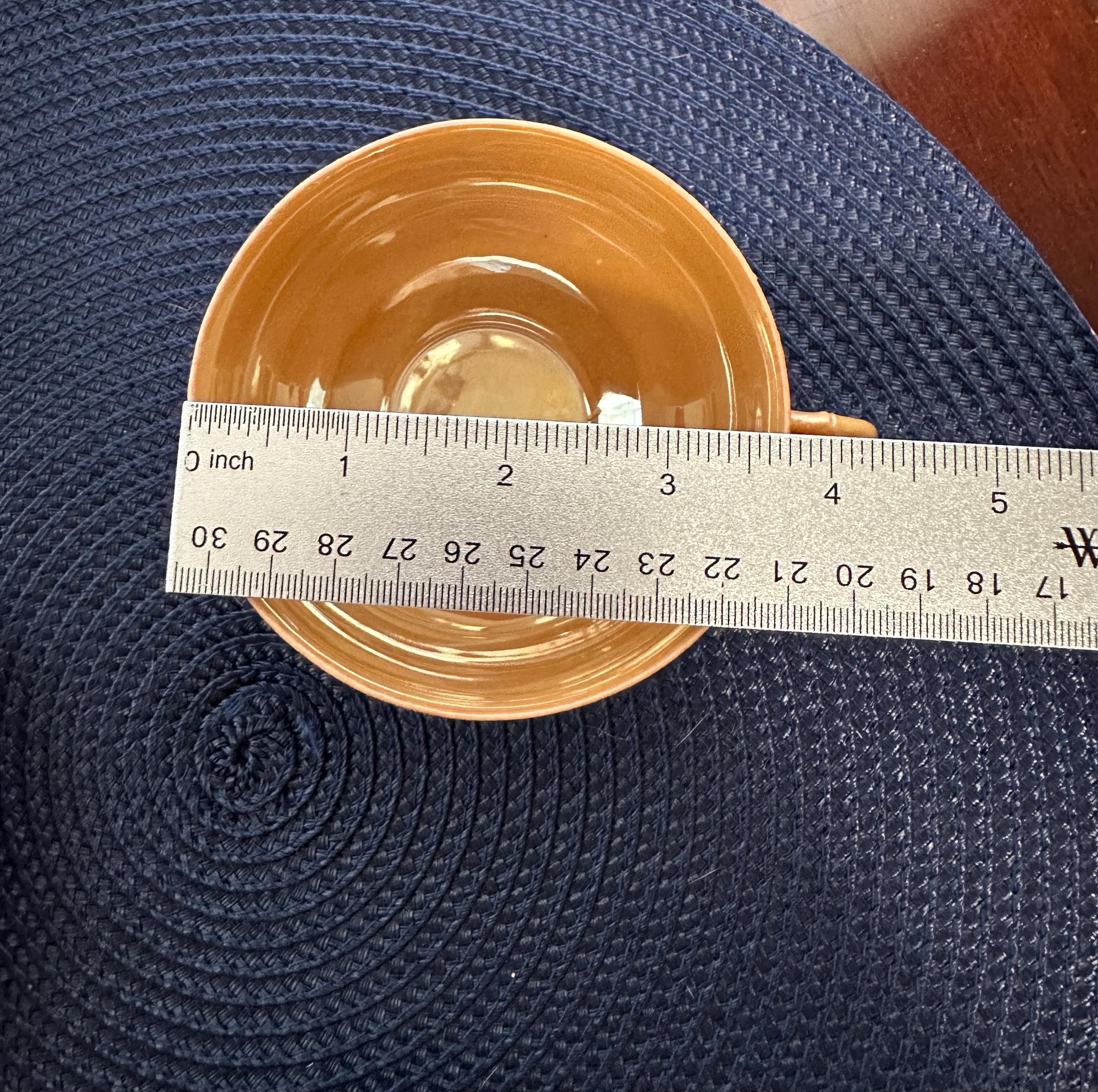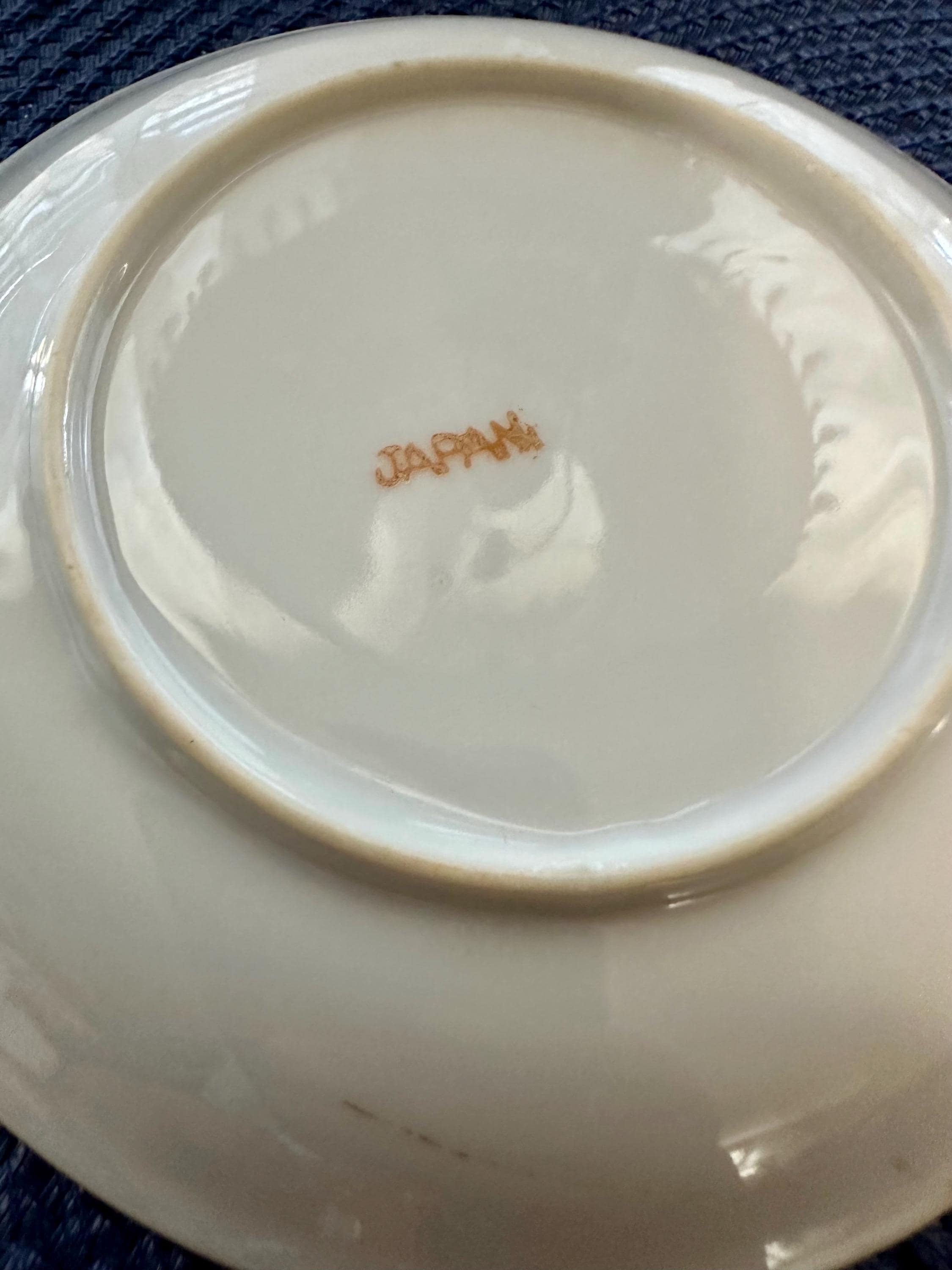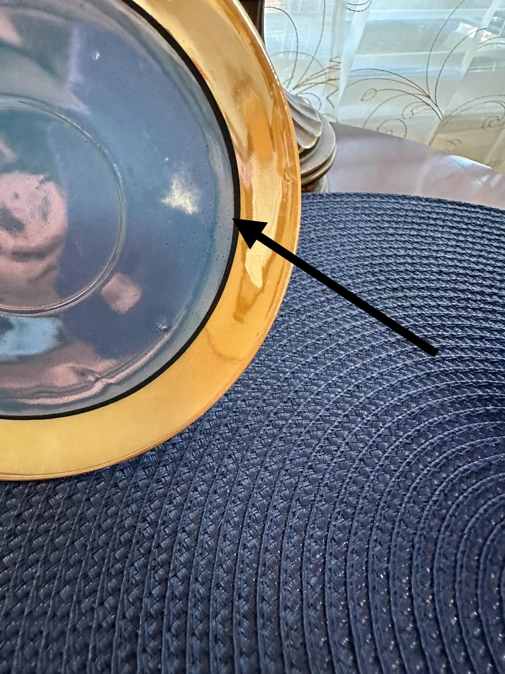 Beautiful lusterware blue and peach tea cup and saucer PLUS a bonus saucer. Before you ask "What am I going to do with an extra saucer?" The answer is easy. That is for your snacks to go with your hot cup of tea. This is a vintage item and for the age it is in great shape. There is a slight haze to one of the saucers and a white spot on the other saucer (pictures are included). This has been discounted for the blemishes. If you have any questions or would like additional pictures please contact us.