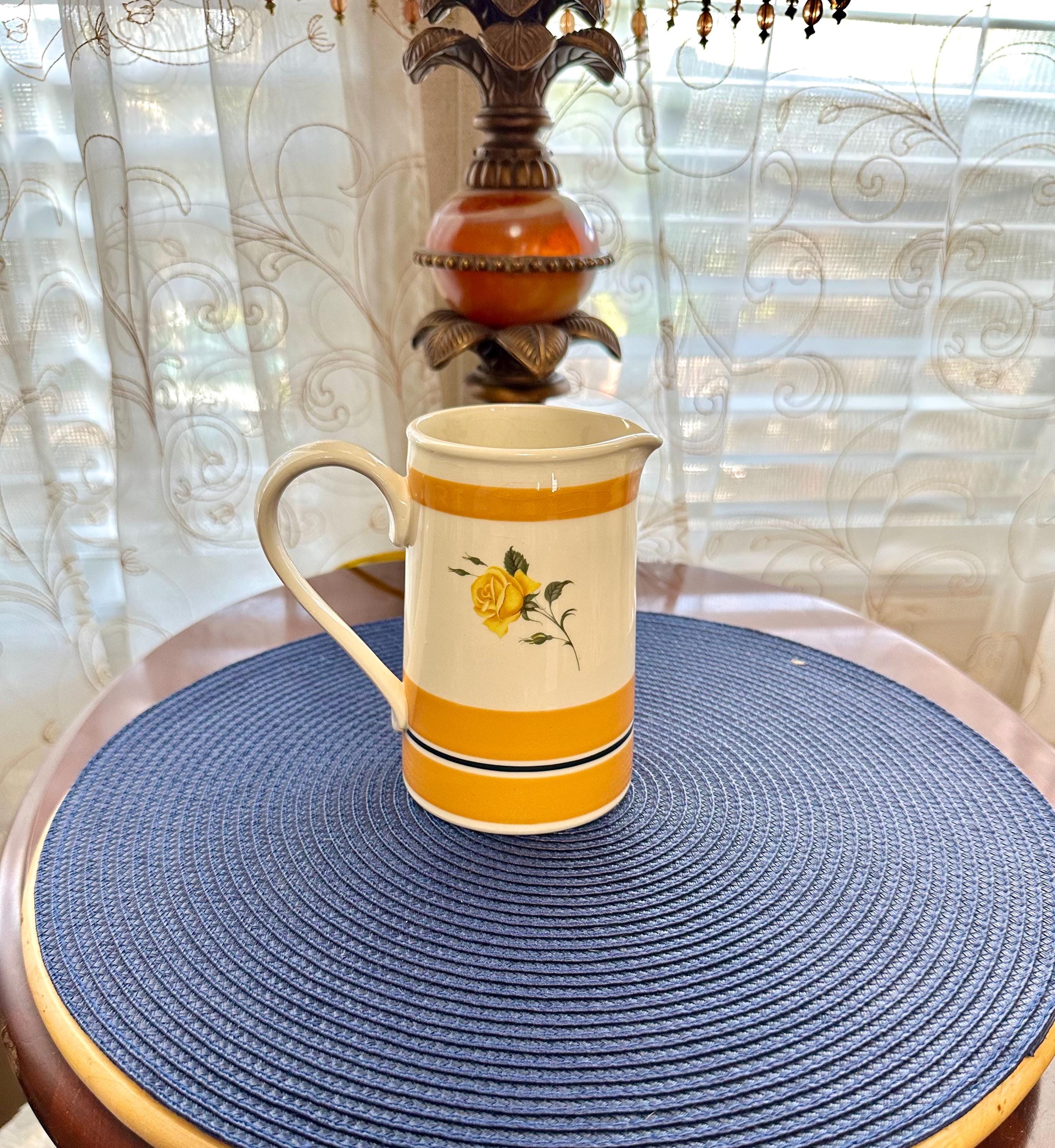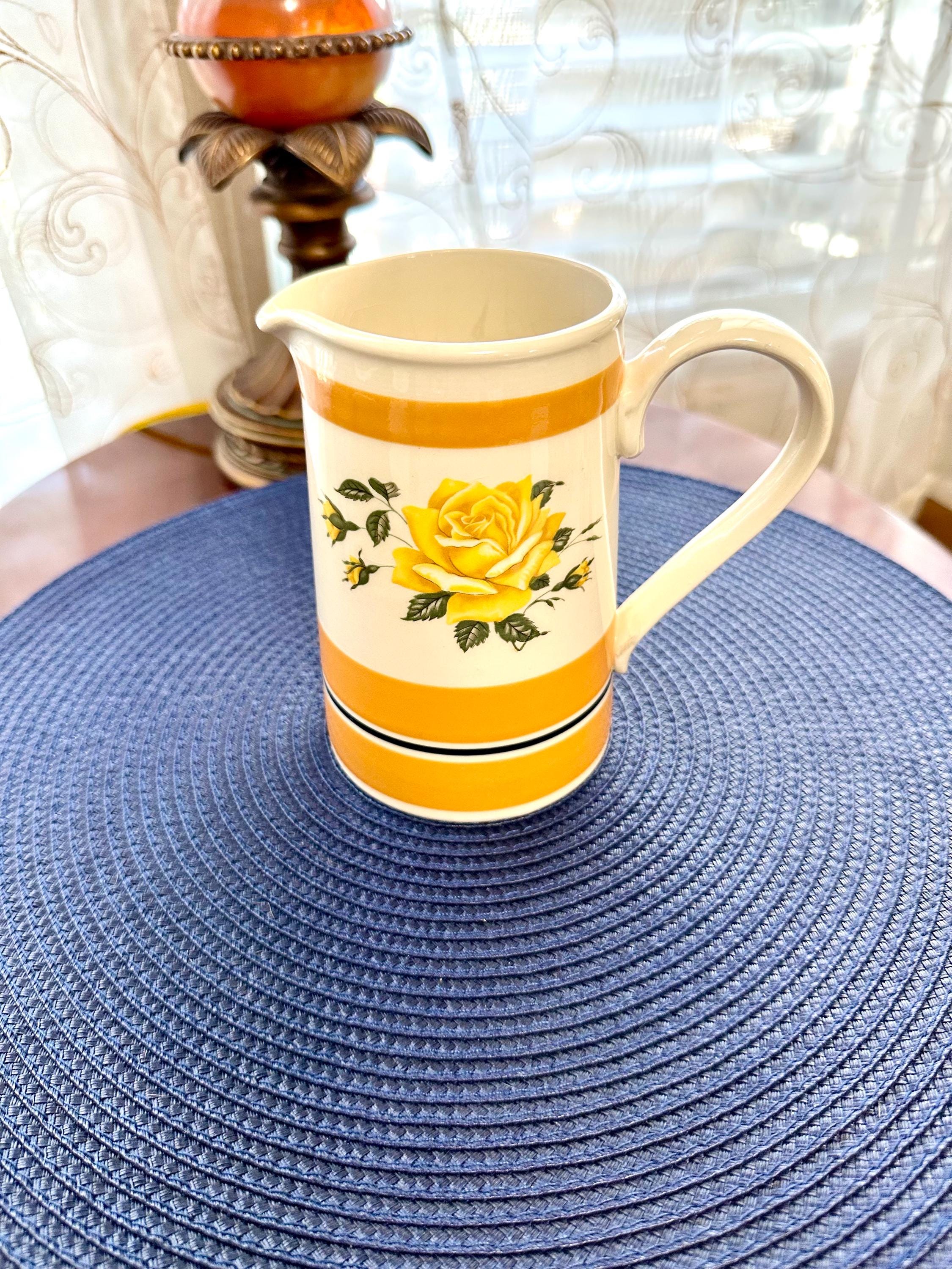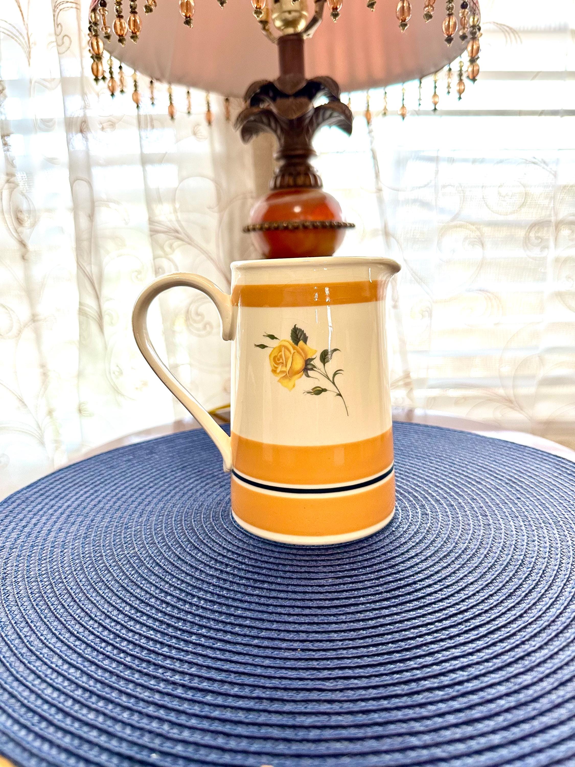 This is a vintage Sadler yellow rose pitcher. This was made in Staffordshire, England, by James Sadler & Sons. There is crazing on the inside and bottom of this creamer (pictures are included).