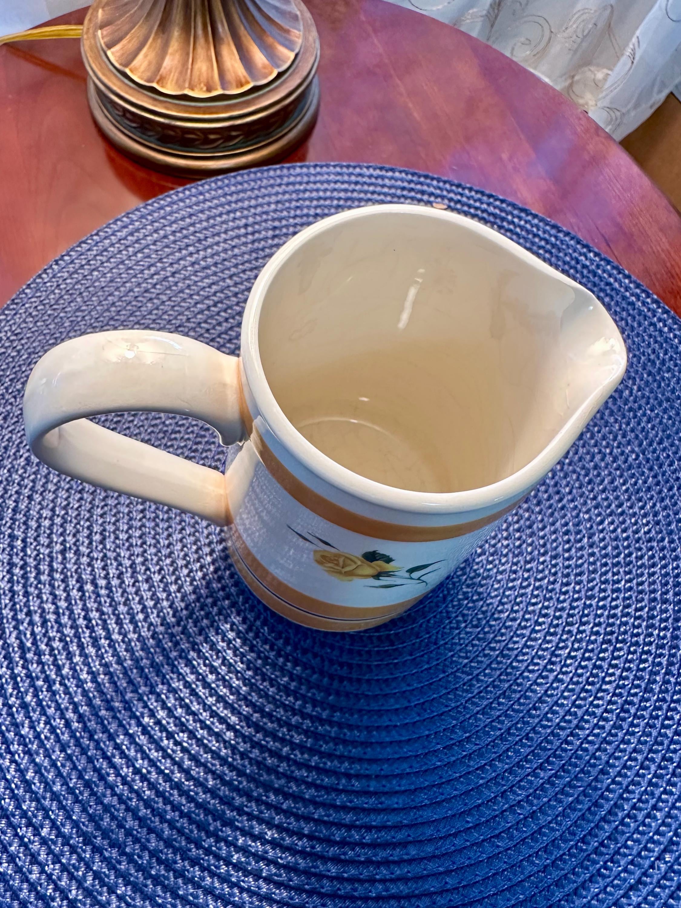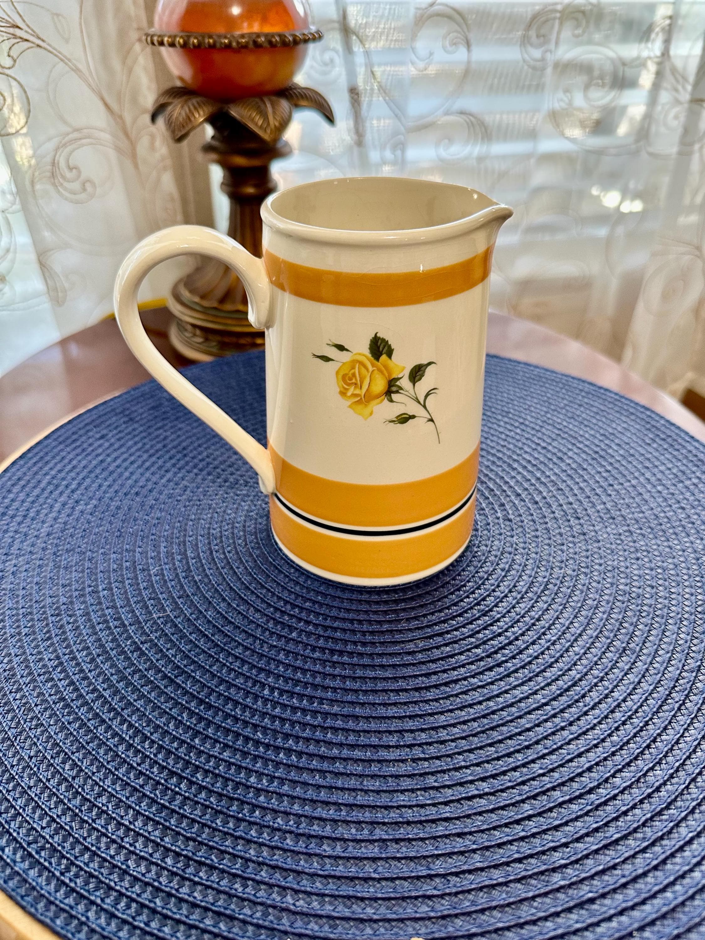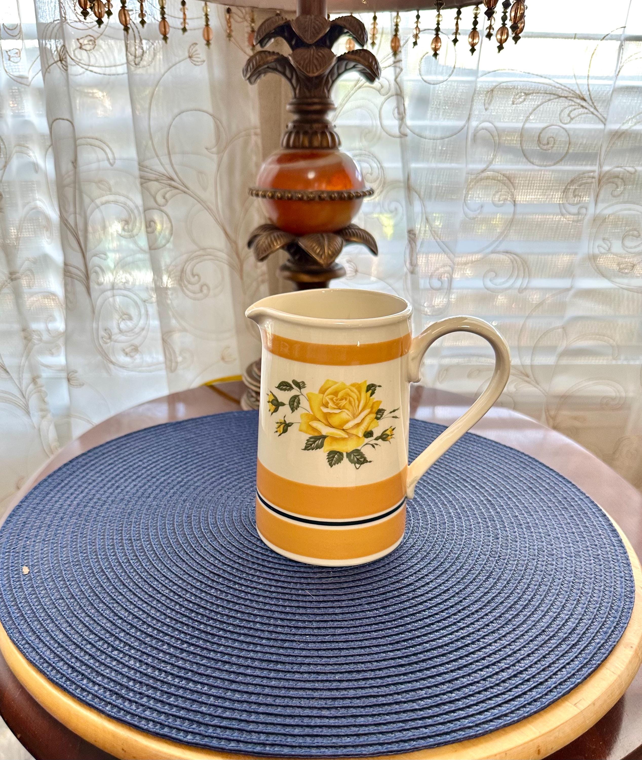 This is a vintage Sadler yellow rose pitcher. This was made in Staffordshire, England, by James Sadler & Sons. There is crazing on the inside and bottom of this creamer (pictures are included).