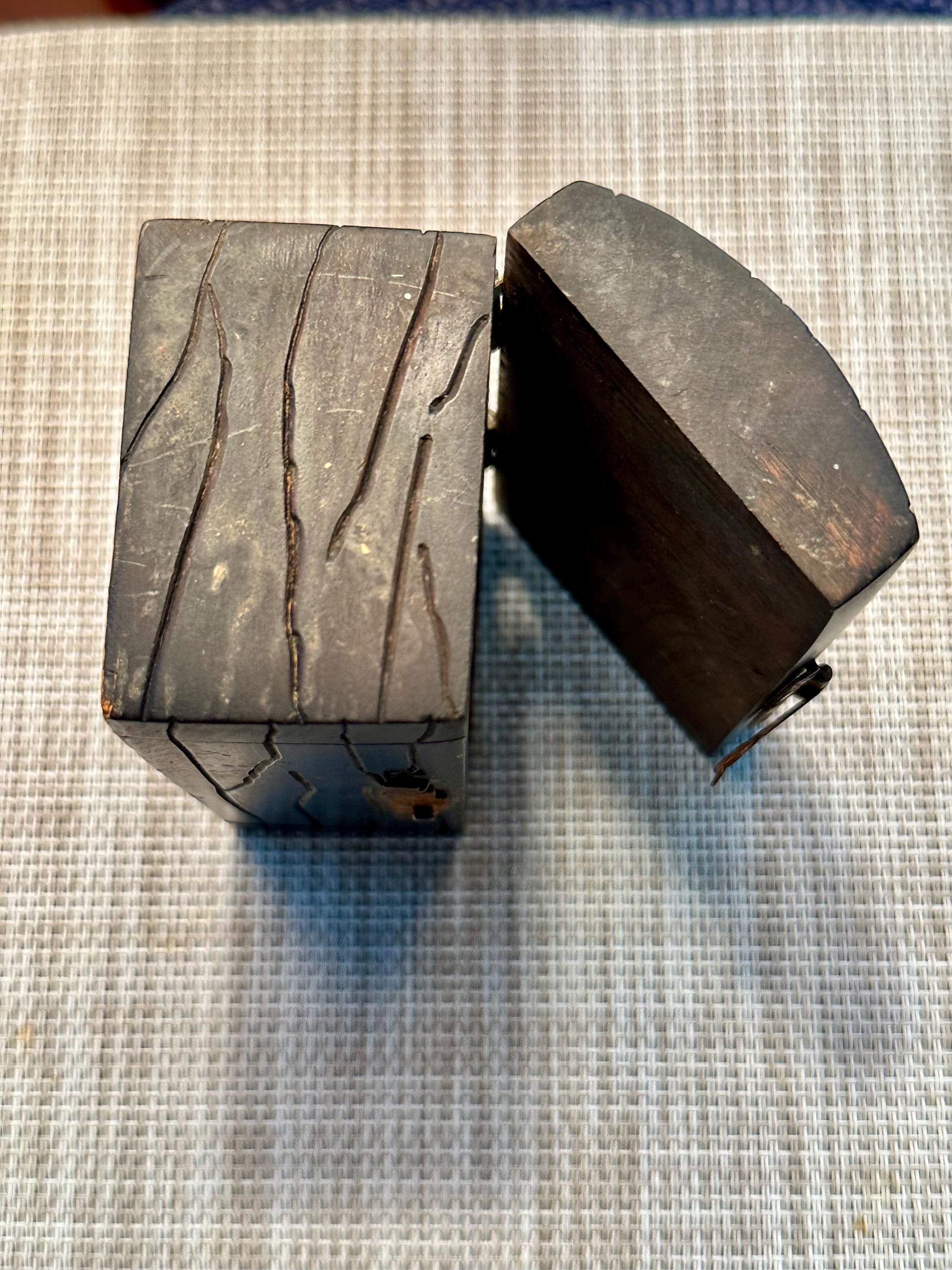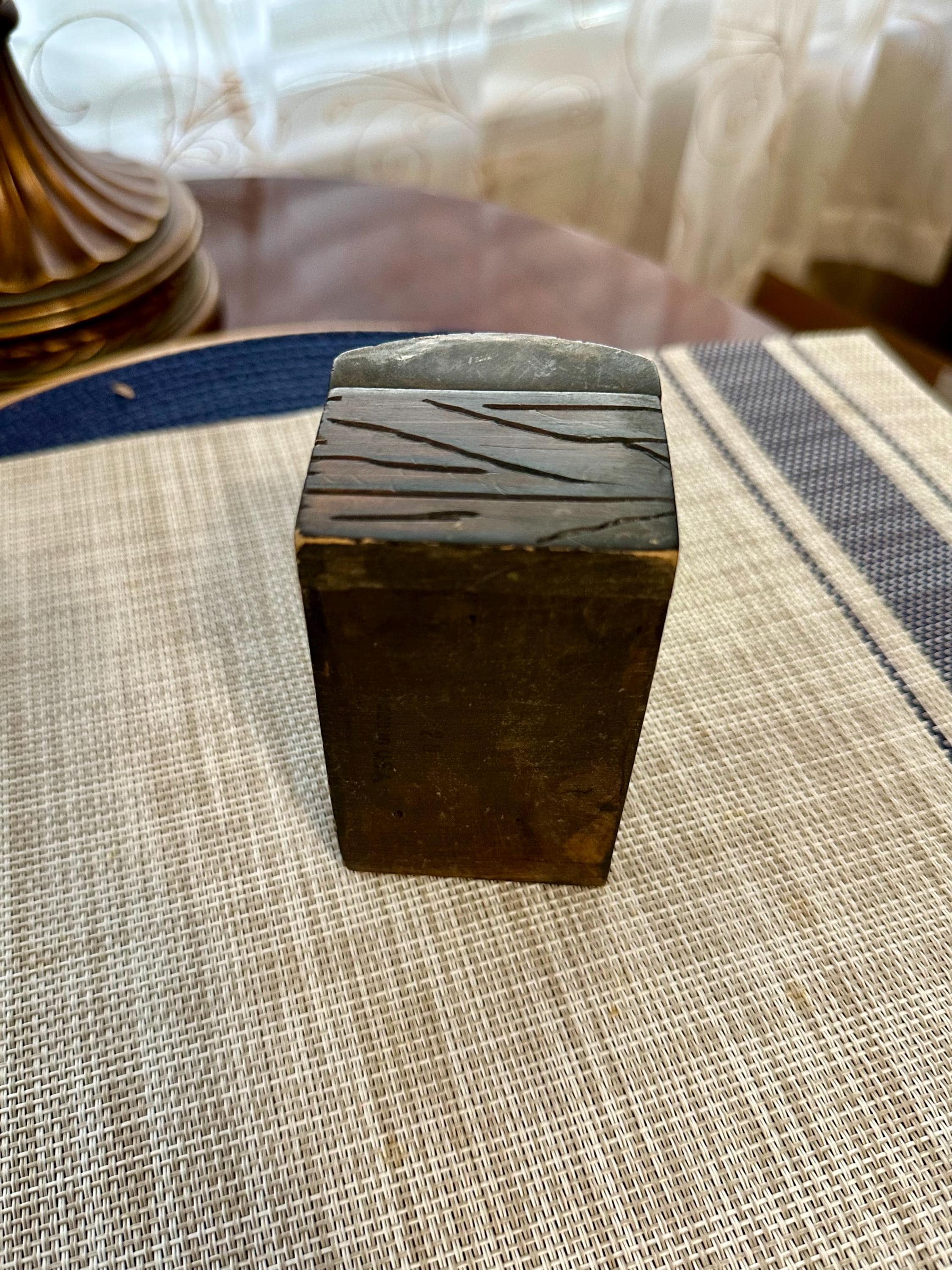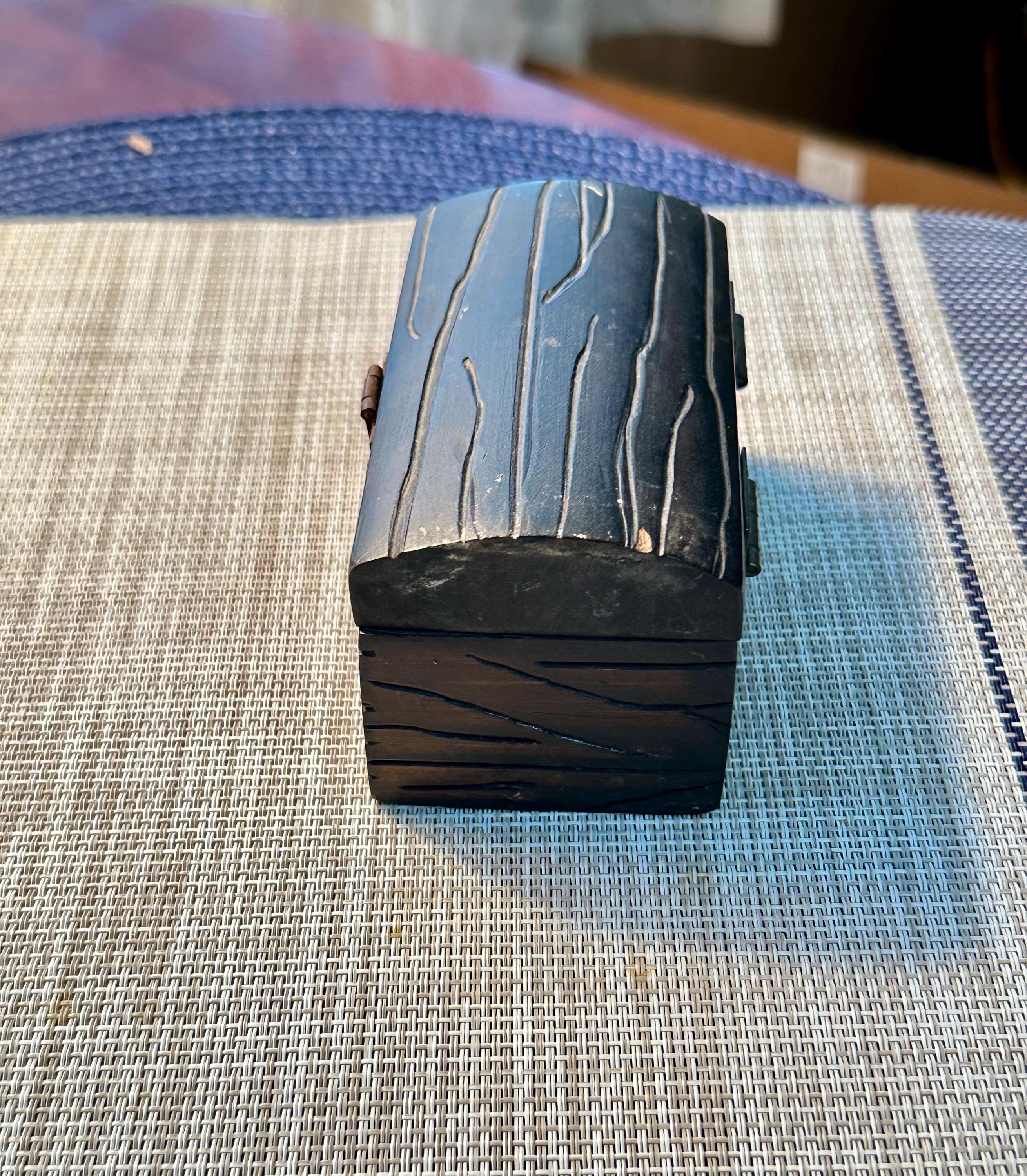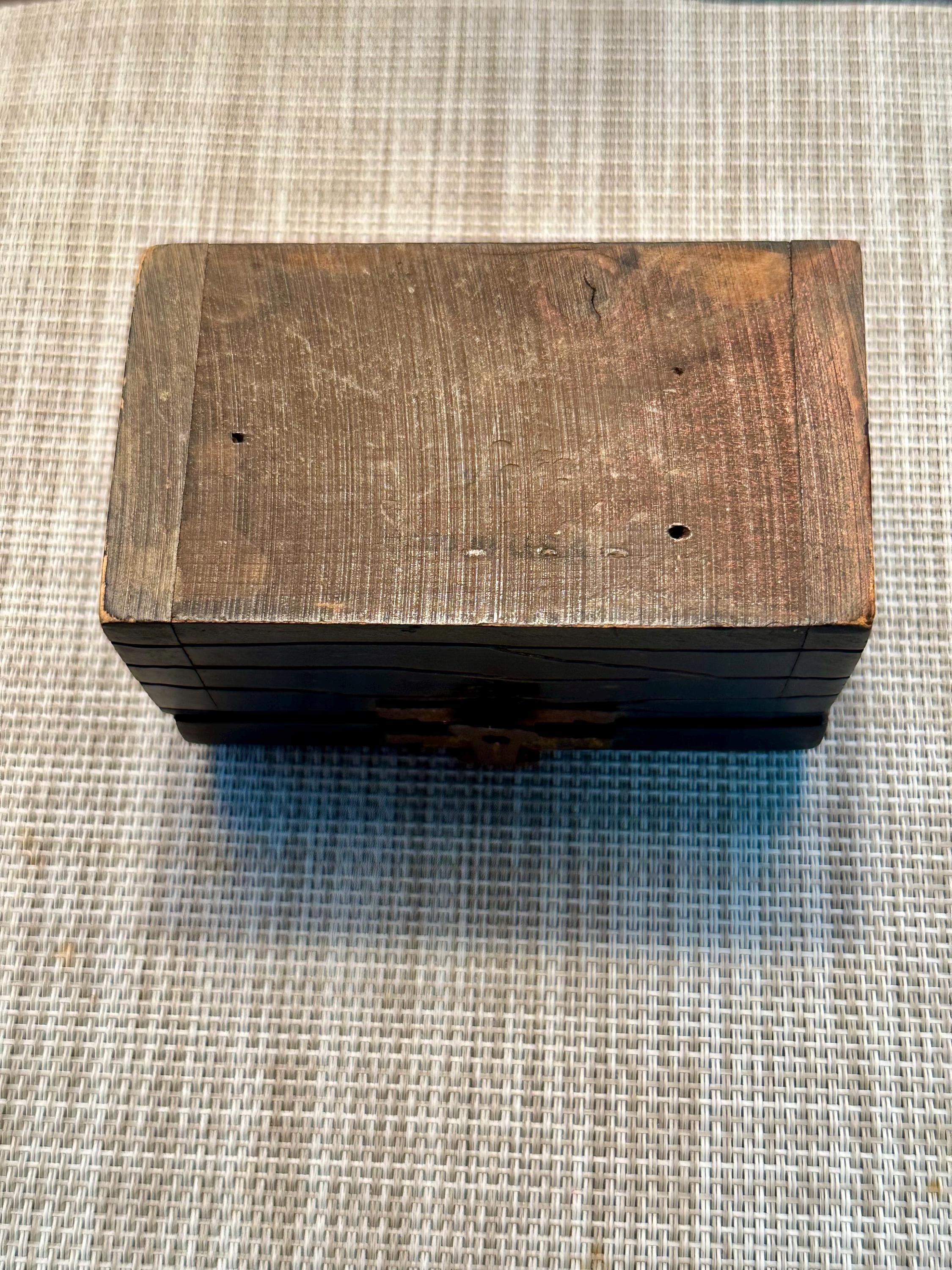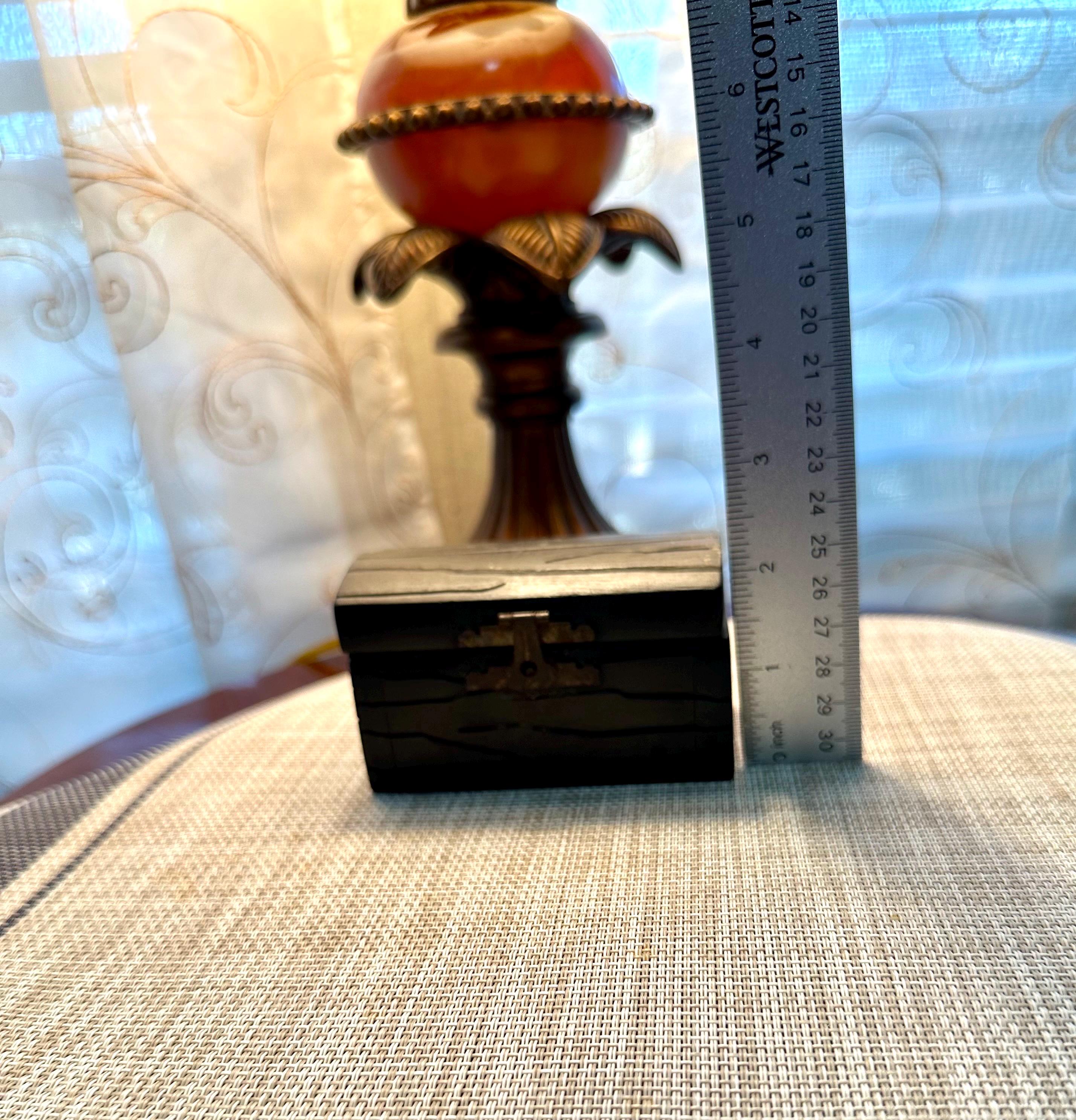 This is a miniature hope chest made of wood. This is a brown box that is 2 inches tall, 3 1/2 inches long, 2 1/2 inches wide. The latch does close, and if you wanted to add a tiny padlock, it would be an option. This item is sold as is and there will not be any refunds or returns.