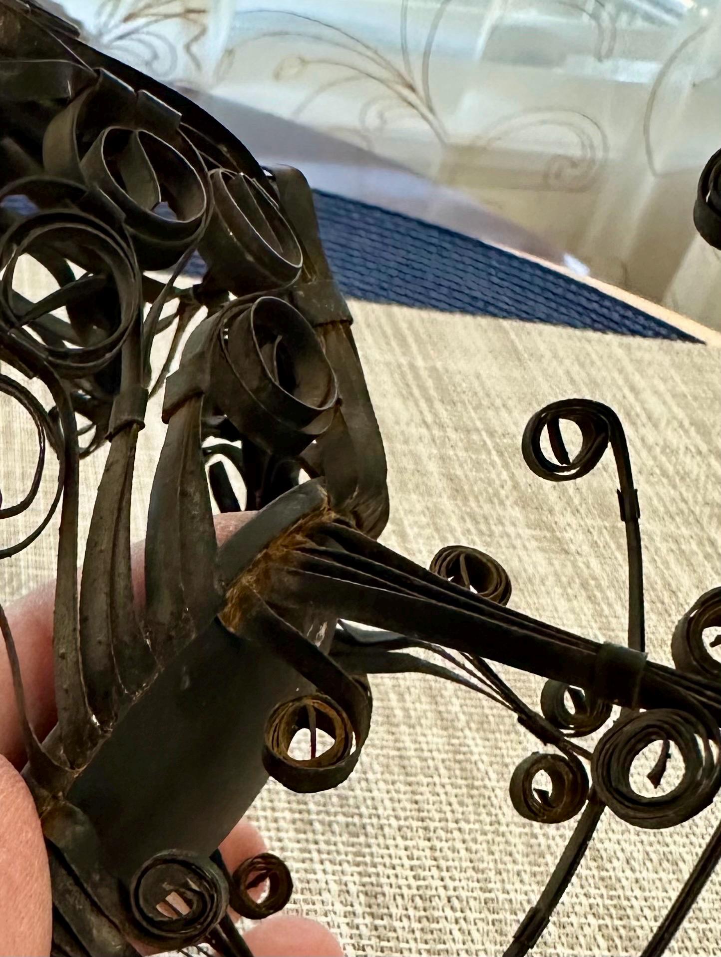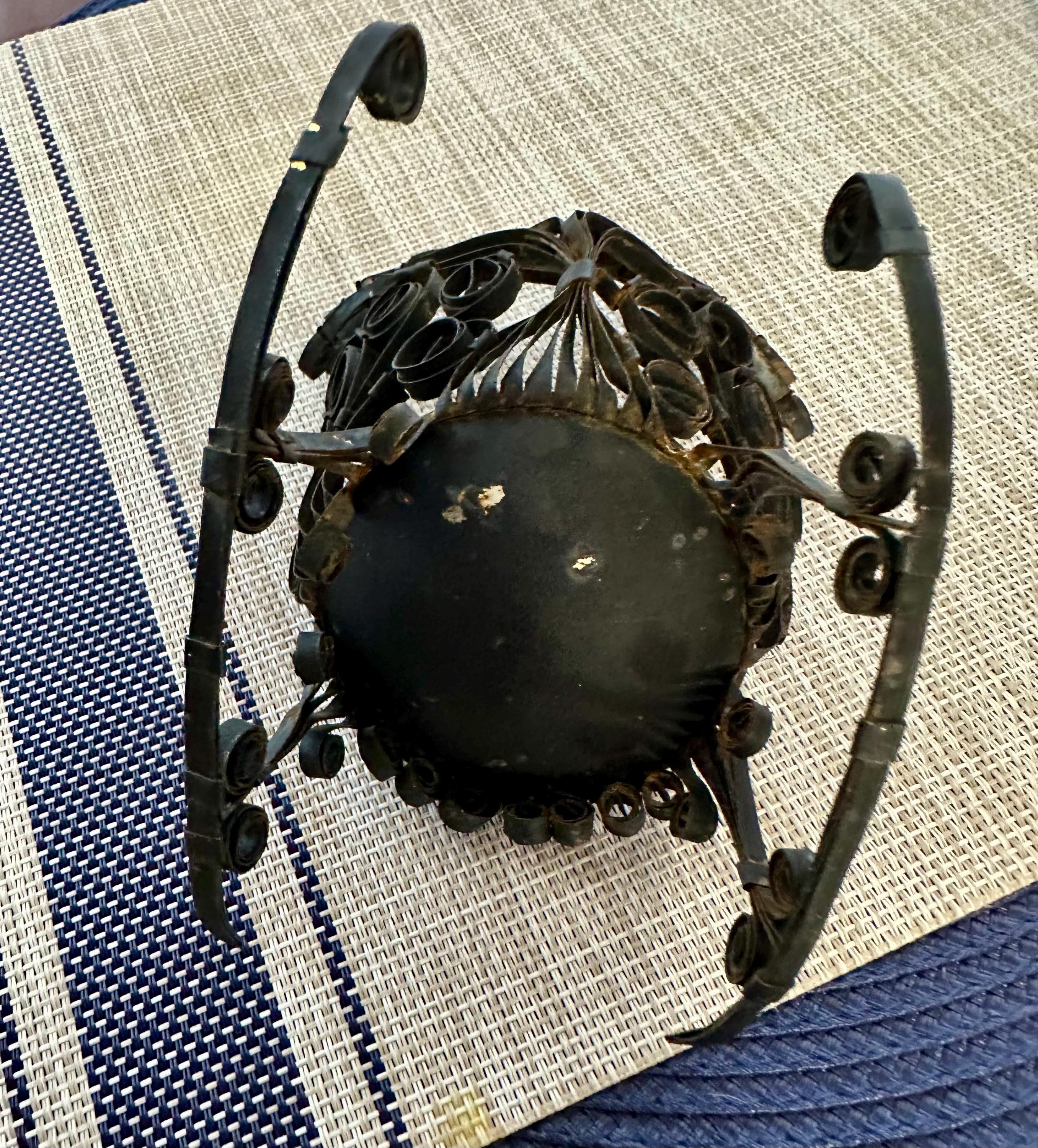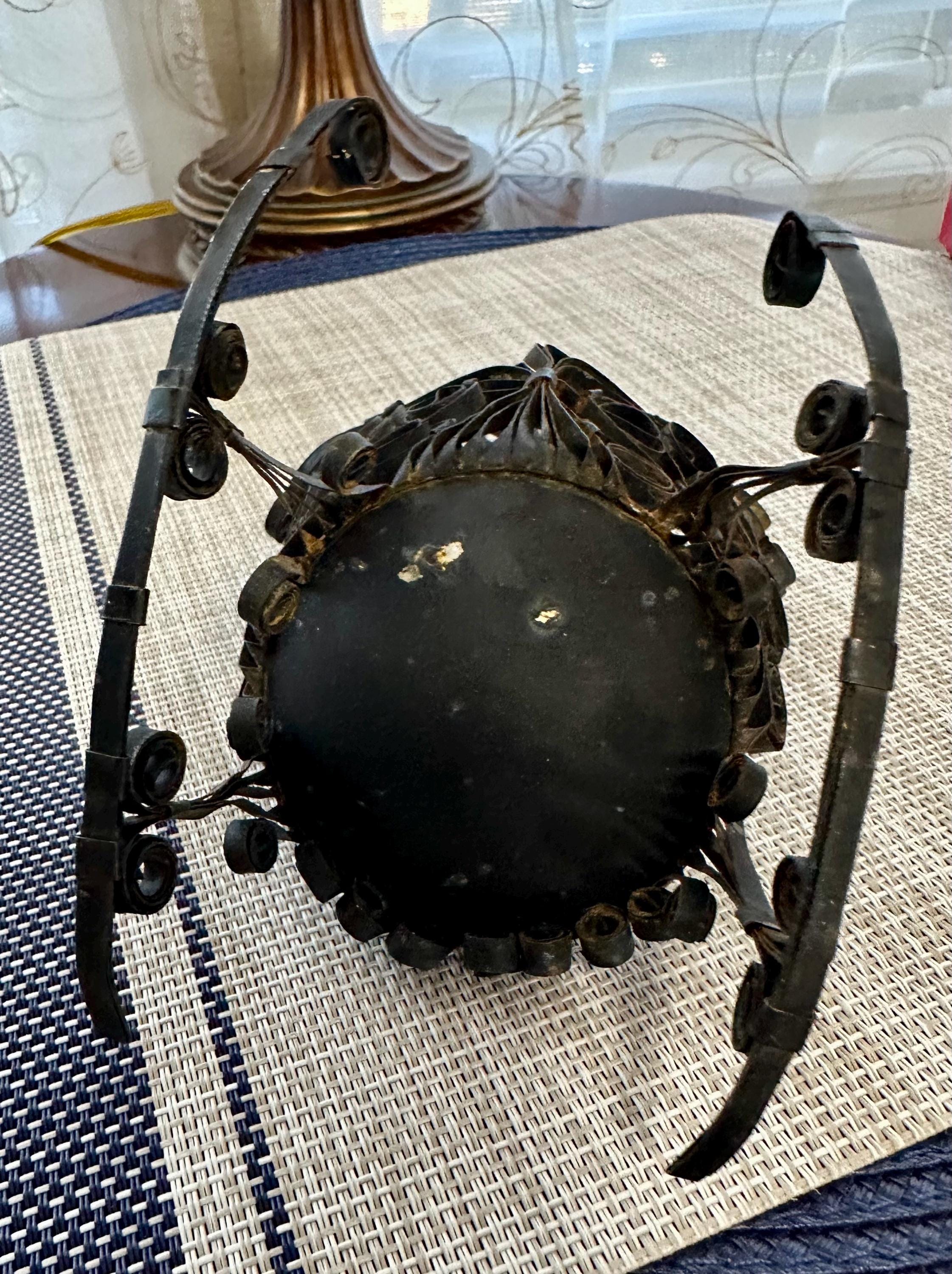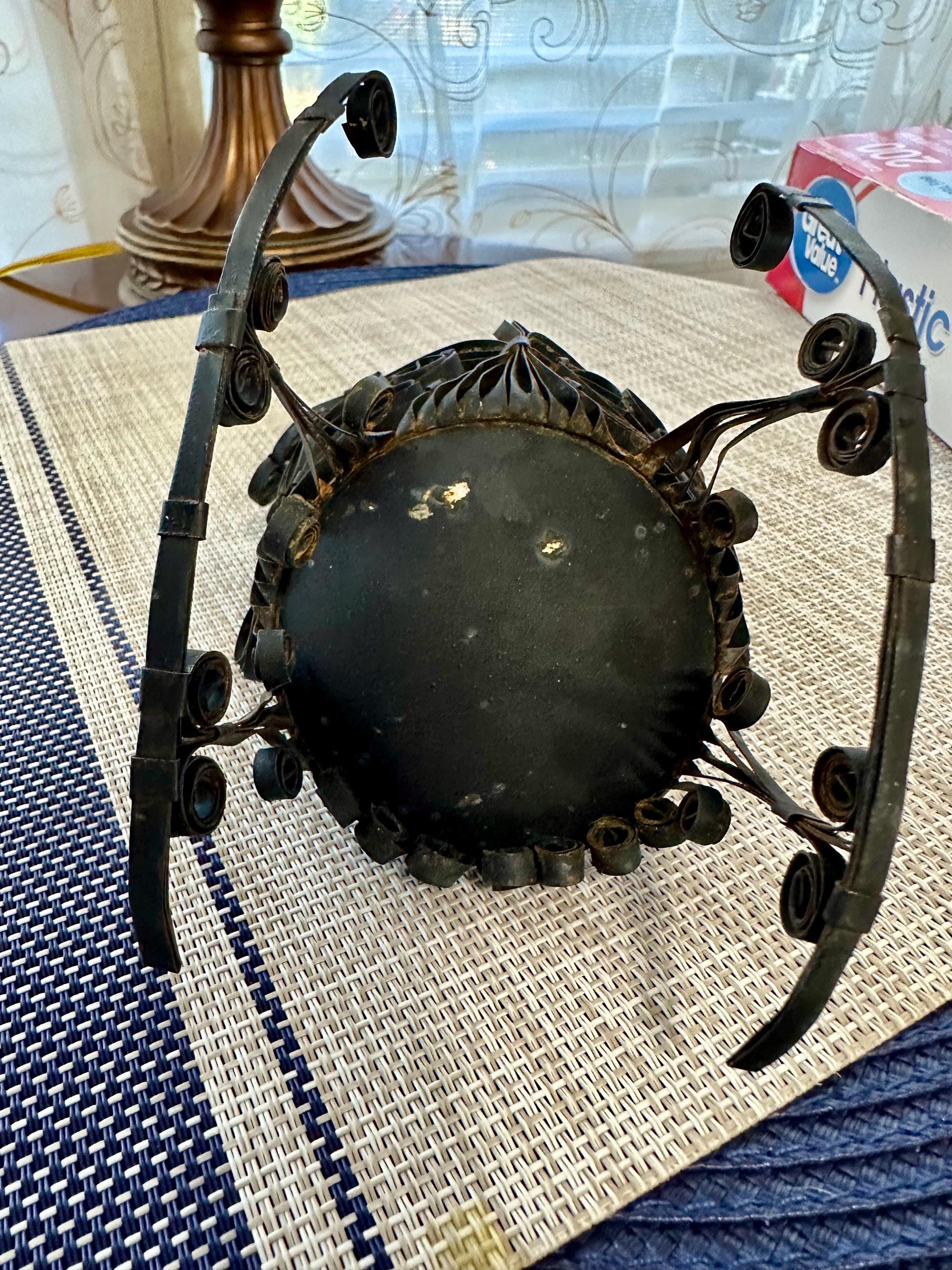 This is a miniature rocking chair. It is 4.5 inches tall and 4.5 inches wide. This chair has a detachable red cushion. There is some slight rust on the back of the chair and underneath the chair, there are a few spots that is missing the black paint. The color may be different due to the camera or the lighting. Please contact us if you have any questions or would like additional pictures. Though we try to reduce and reuse, the cost of additional shipping materials are included in the price.