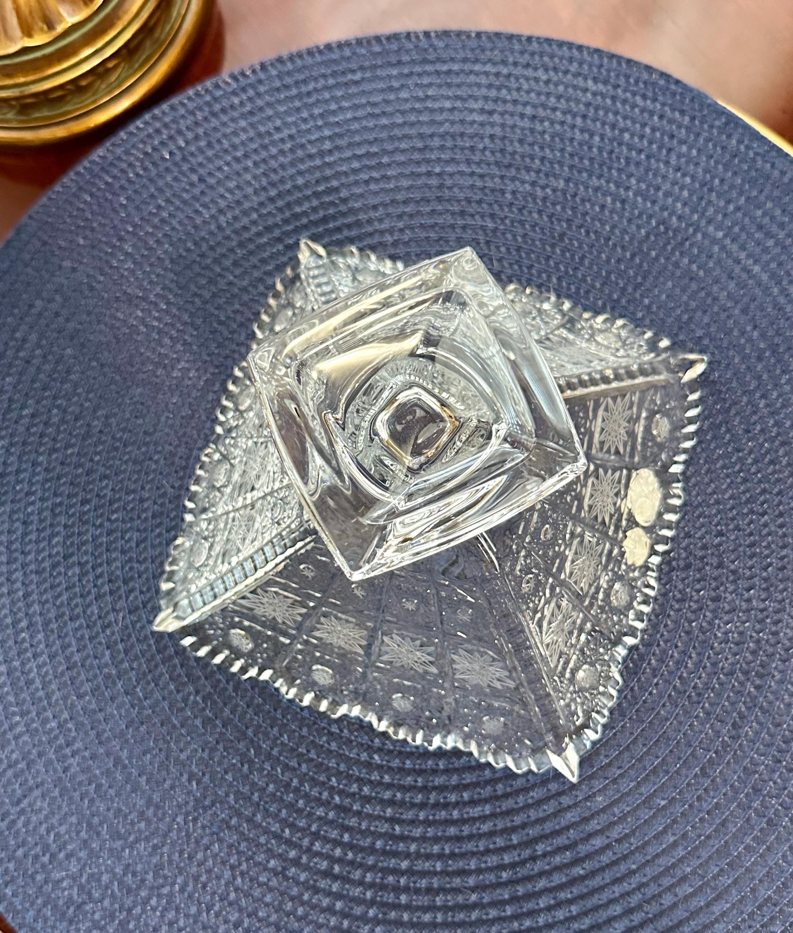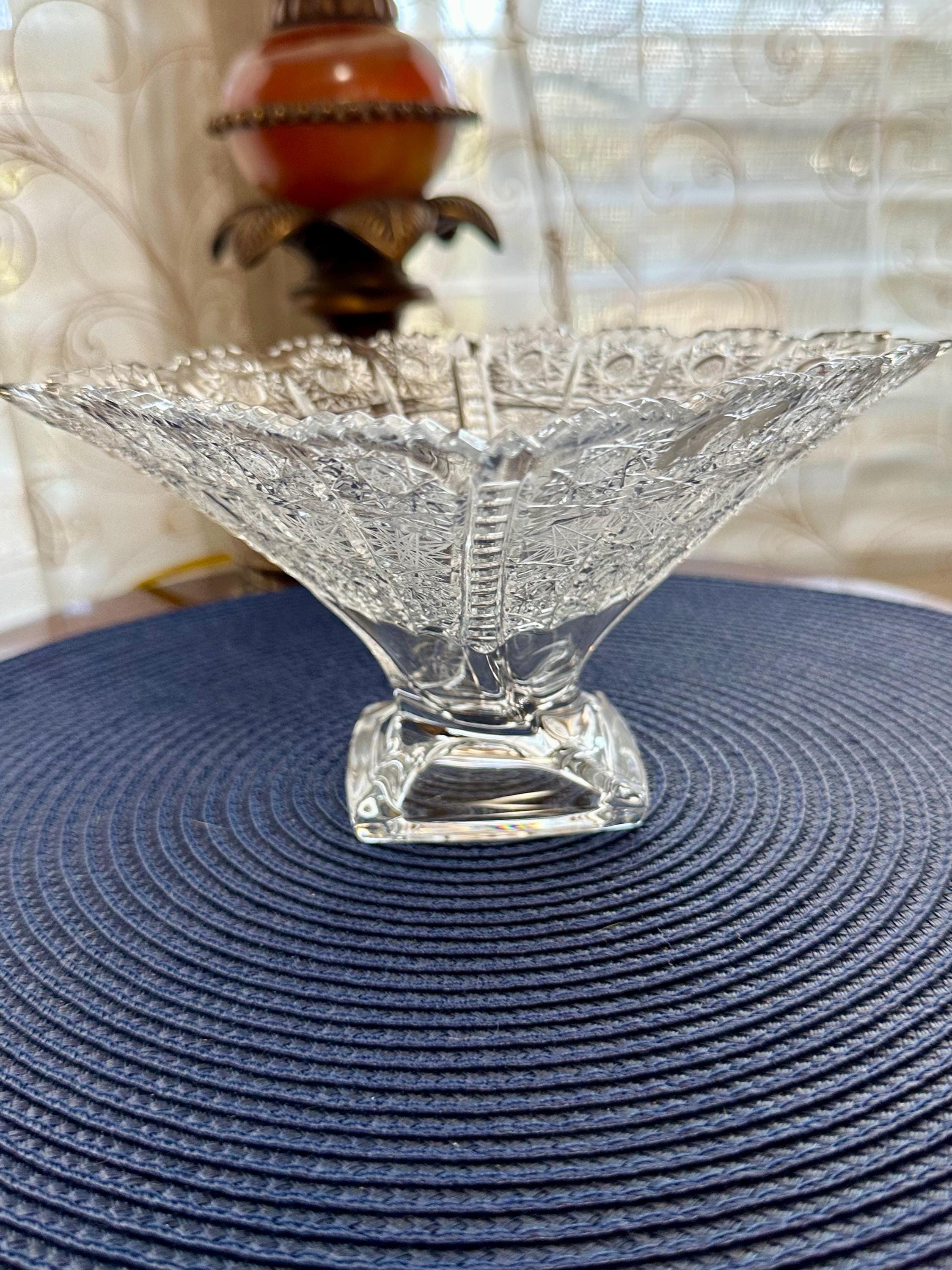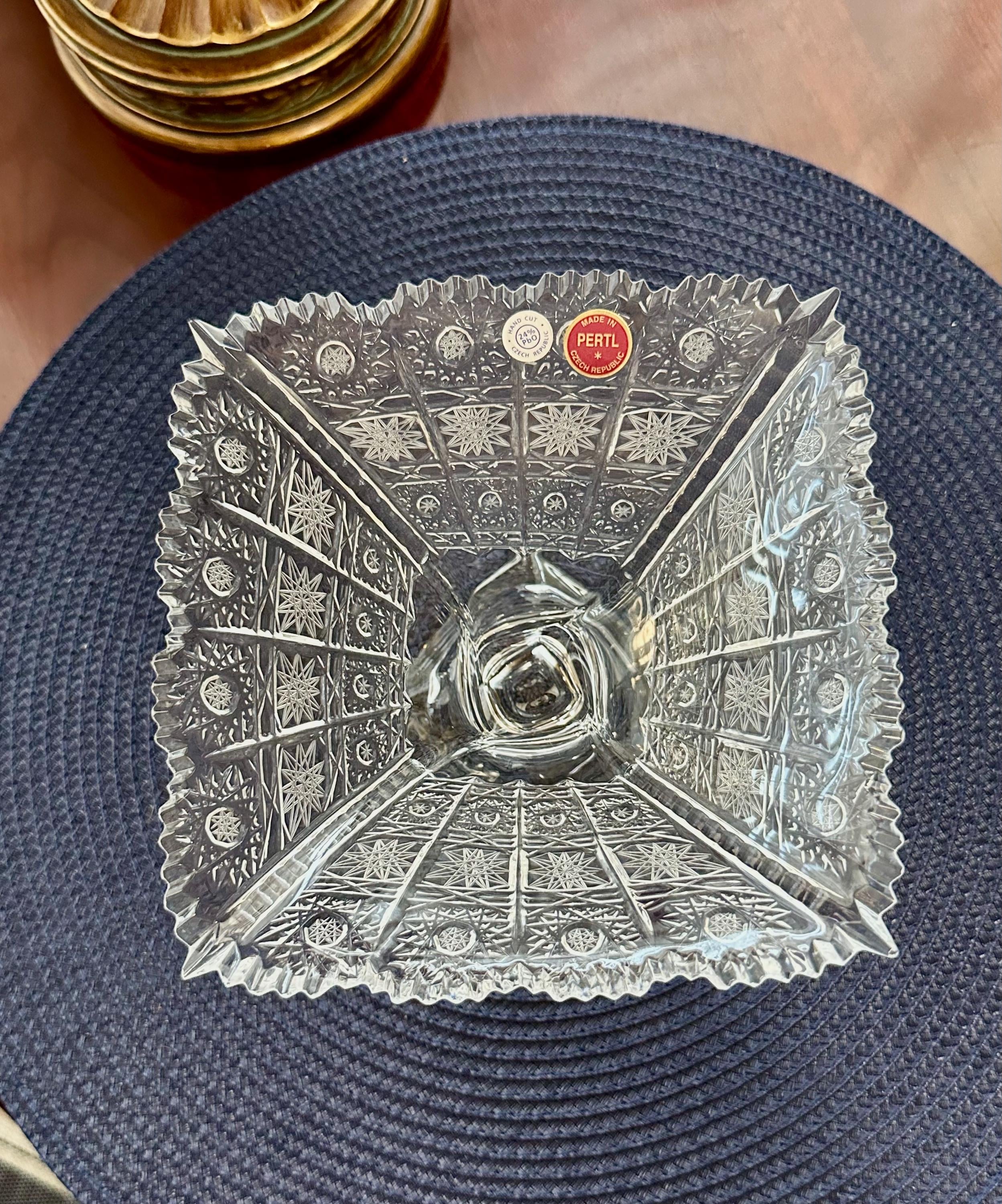 This is a rare find. This beautiful bowl is made in PERTL, CZECH REPUBLIC. This Bohemian crystal (Bohemian glass) is handmade with 24% lead, which enhances the glass's hand-cut designs. This does not come in the original box. But it will be shipped to you with care and love. There are no chips, cracks, or blemishes on this beautiful bowl. The color may be different due to the camera or lighting. If you have any questions or would like additional pictures, please contact us. Though we try to reduce and reuse, the cost of additional shipping materials are included in the price.