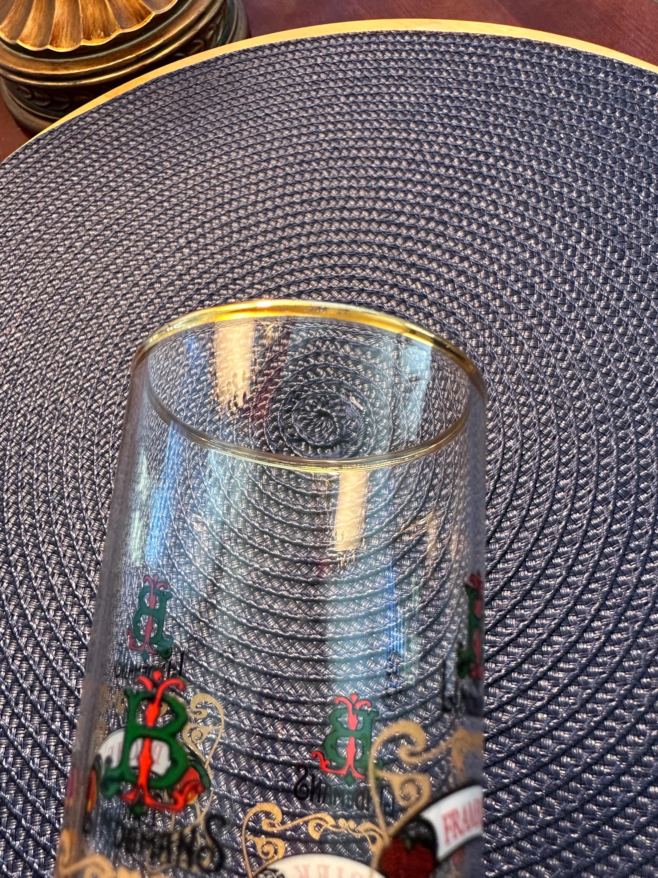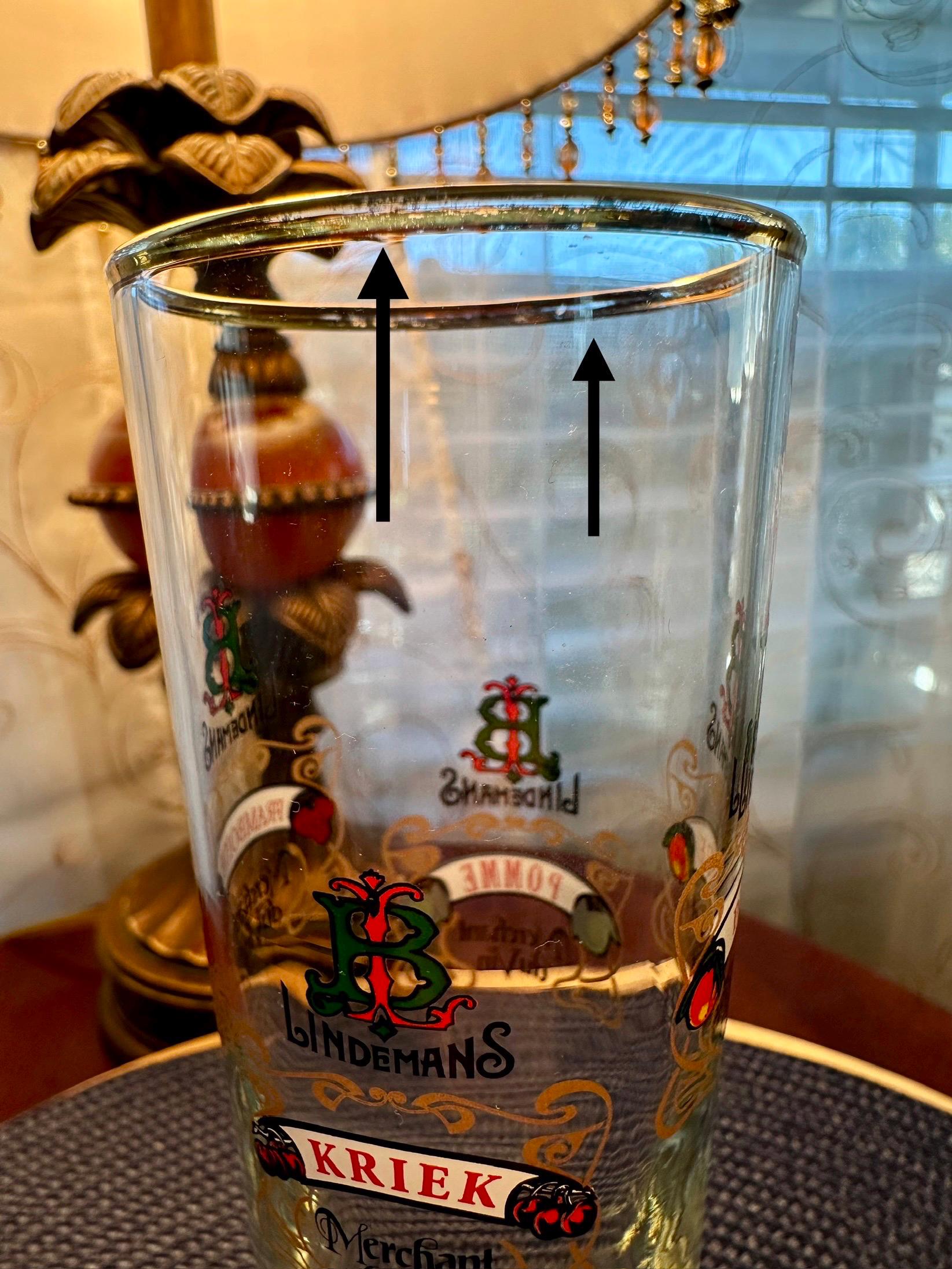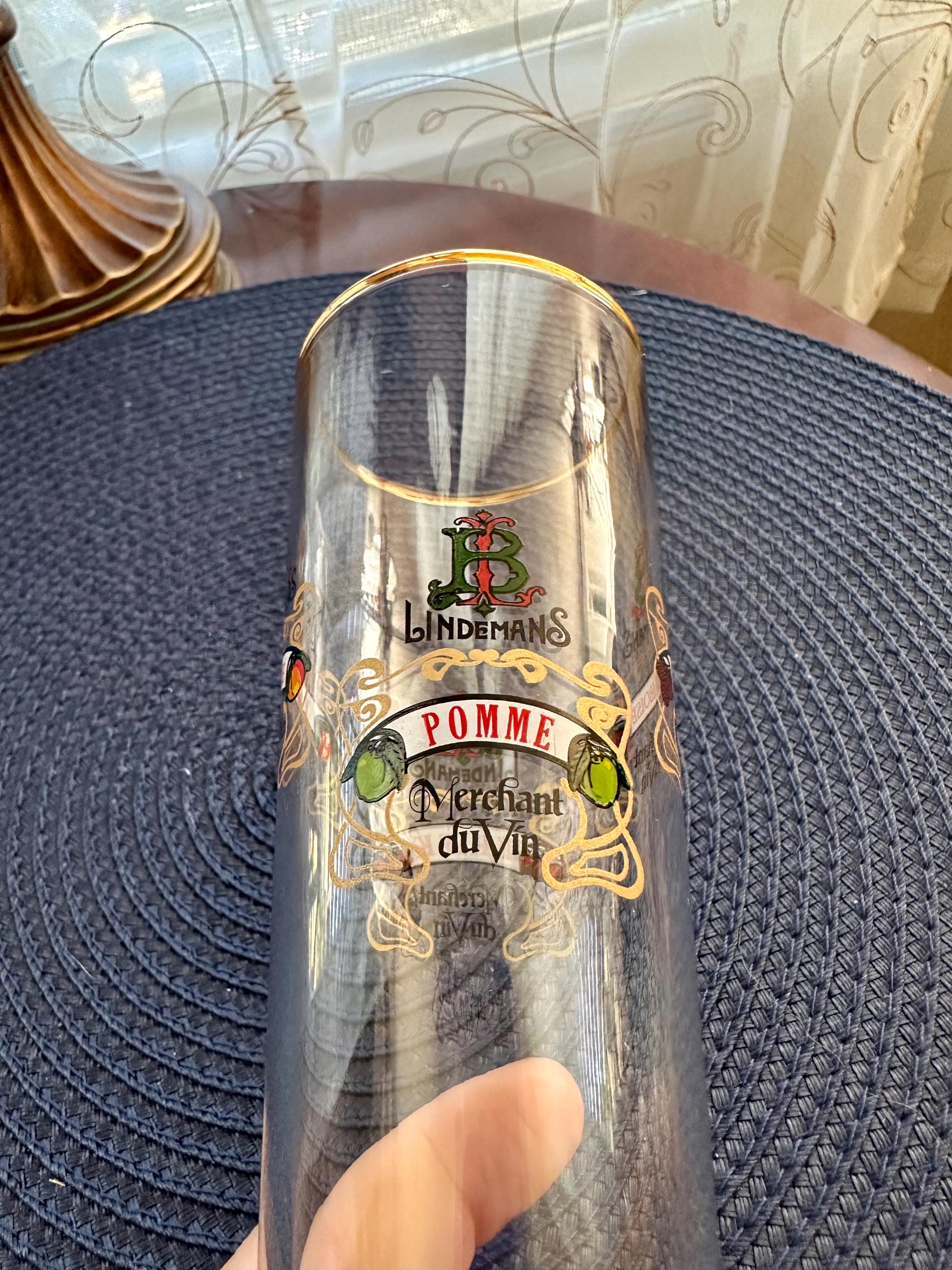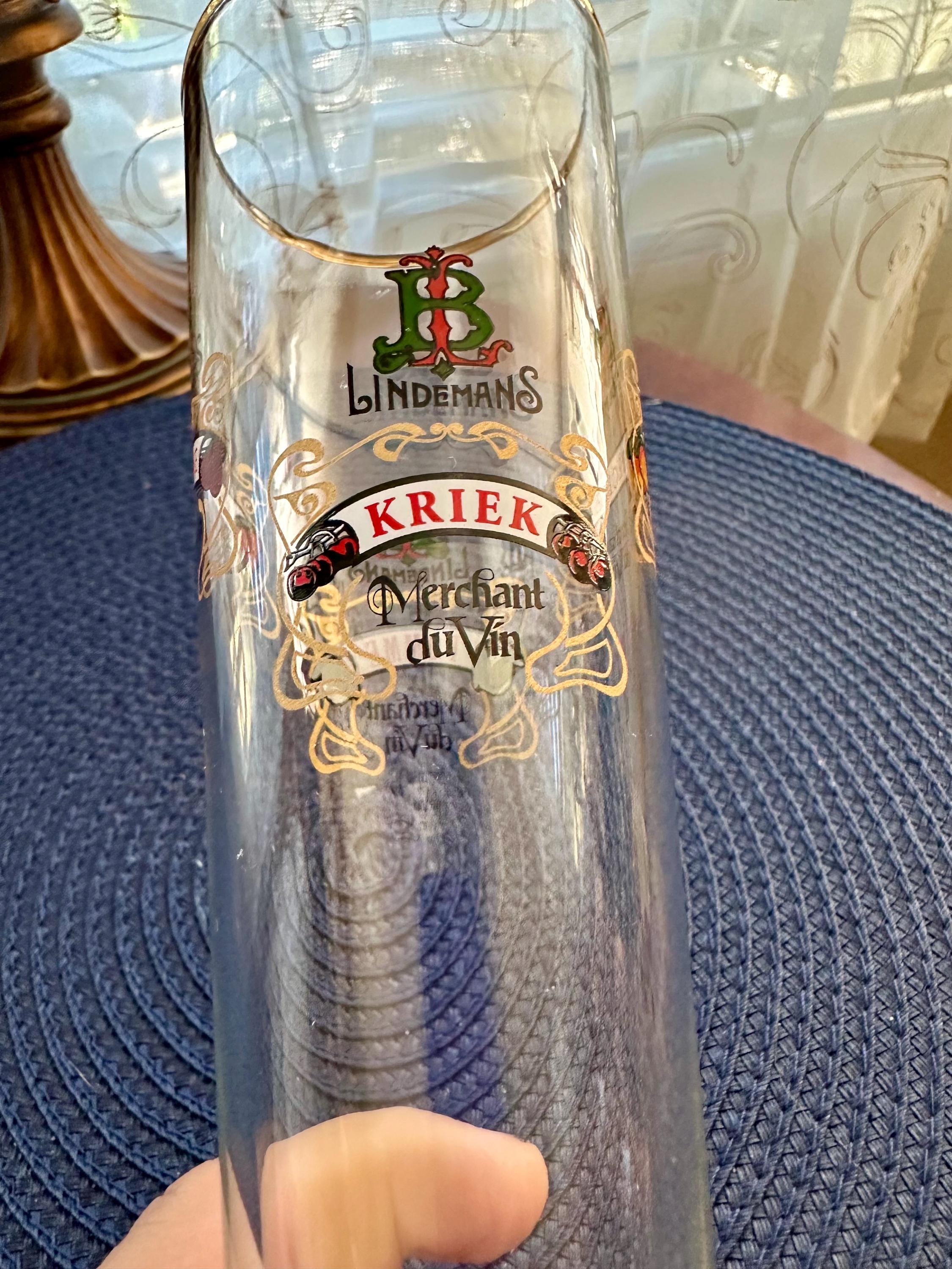 This is a fun piece to add to your collection or pull out to have a nice cold one during a game. This is a Lindemans Kriek Beer Glass. This glass is fluted and has gold trim around the brim. When you rotate this glass you will see their different brews written on it. The following is written on this glass as you rotate it: LINDEMANS KRIEK Merchant duVin