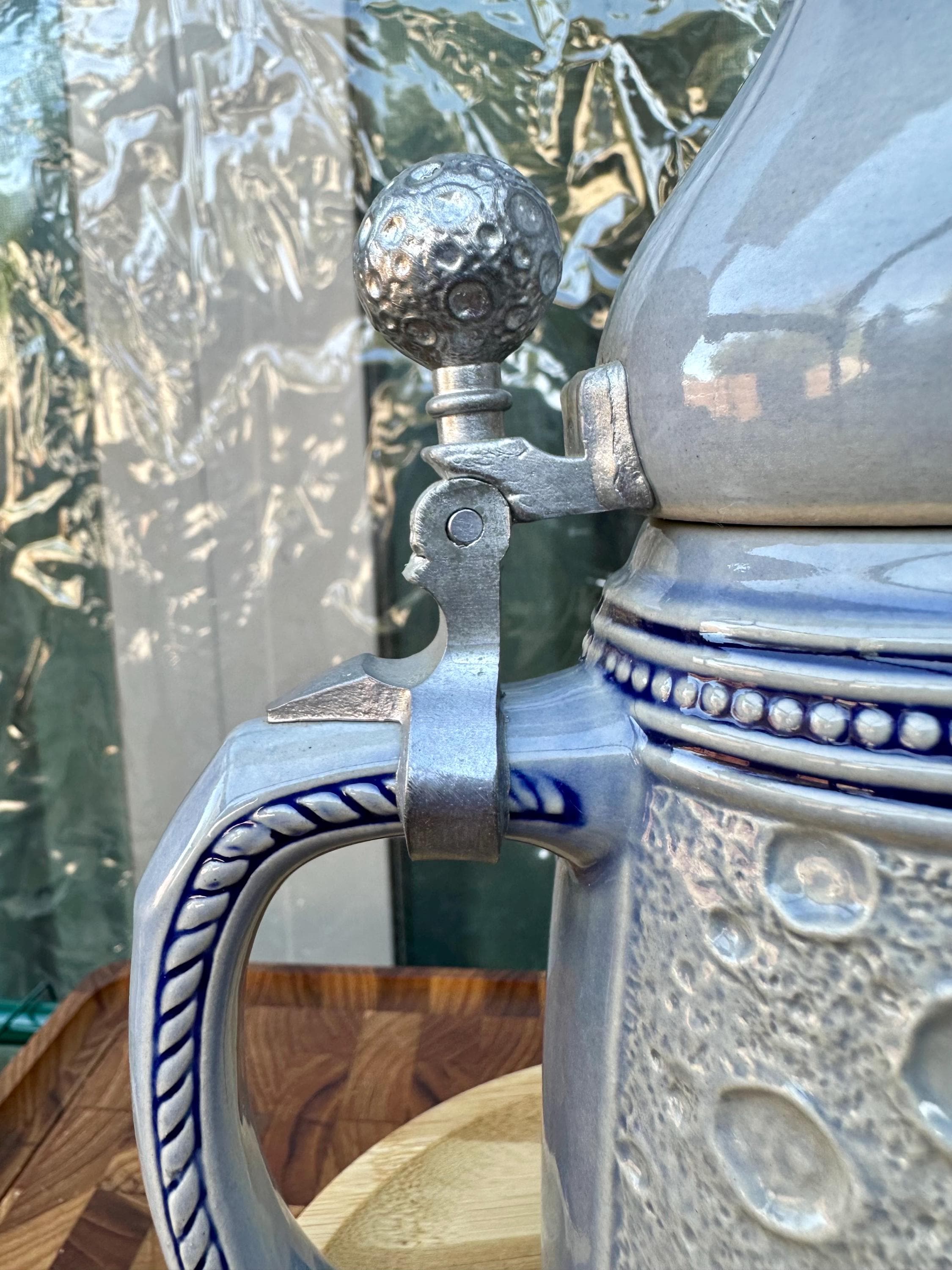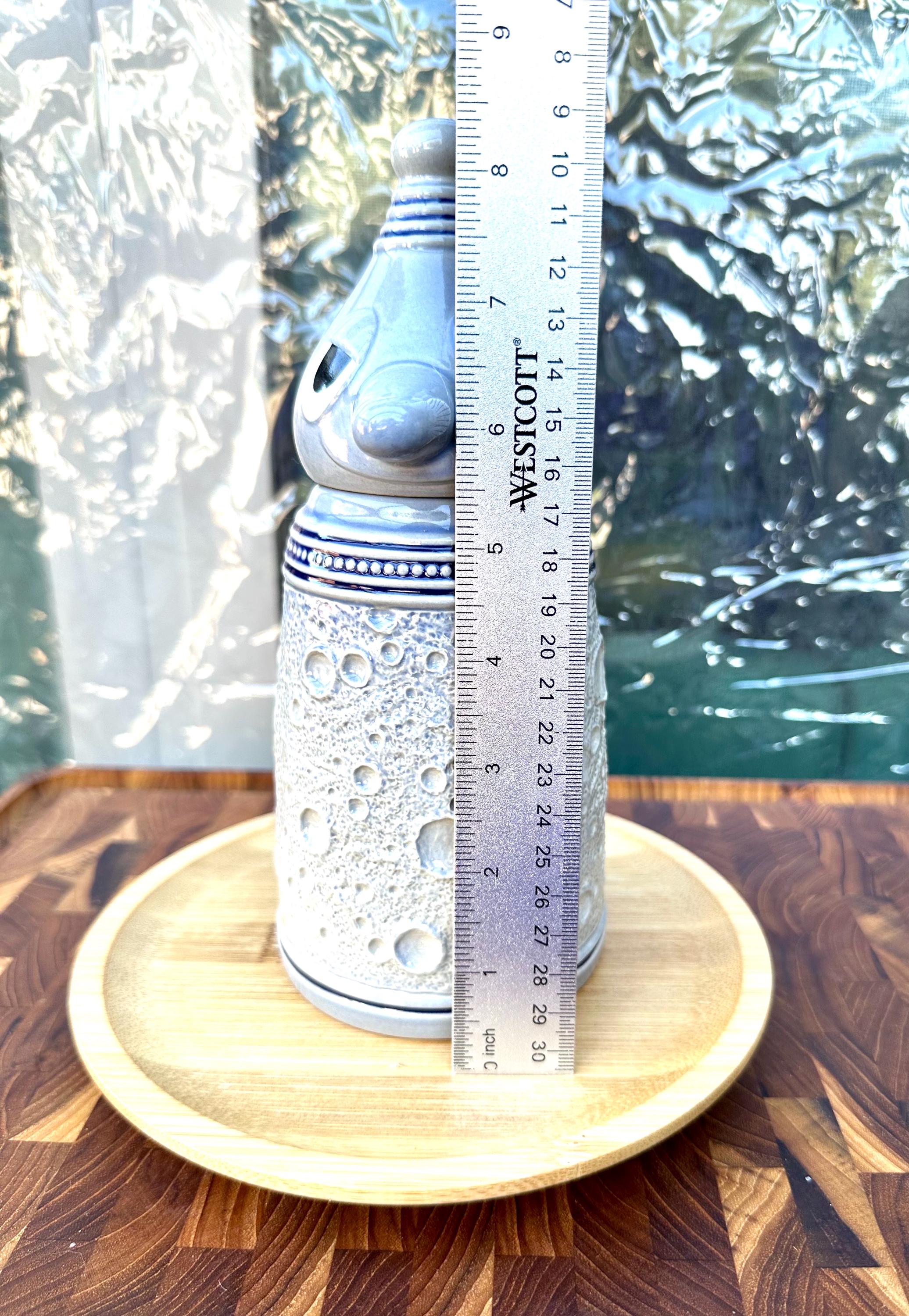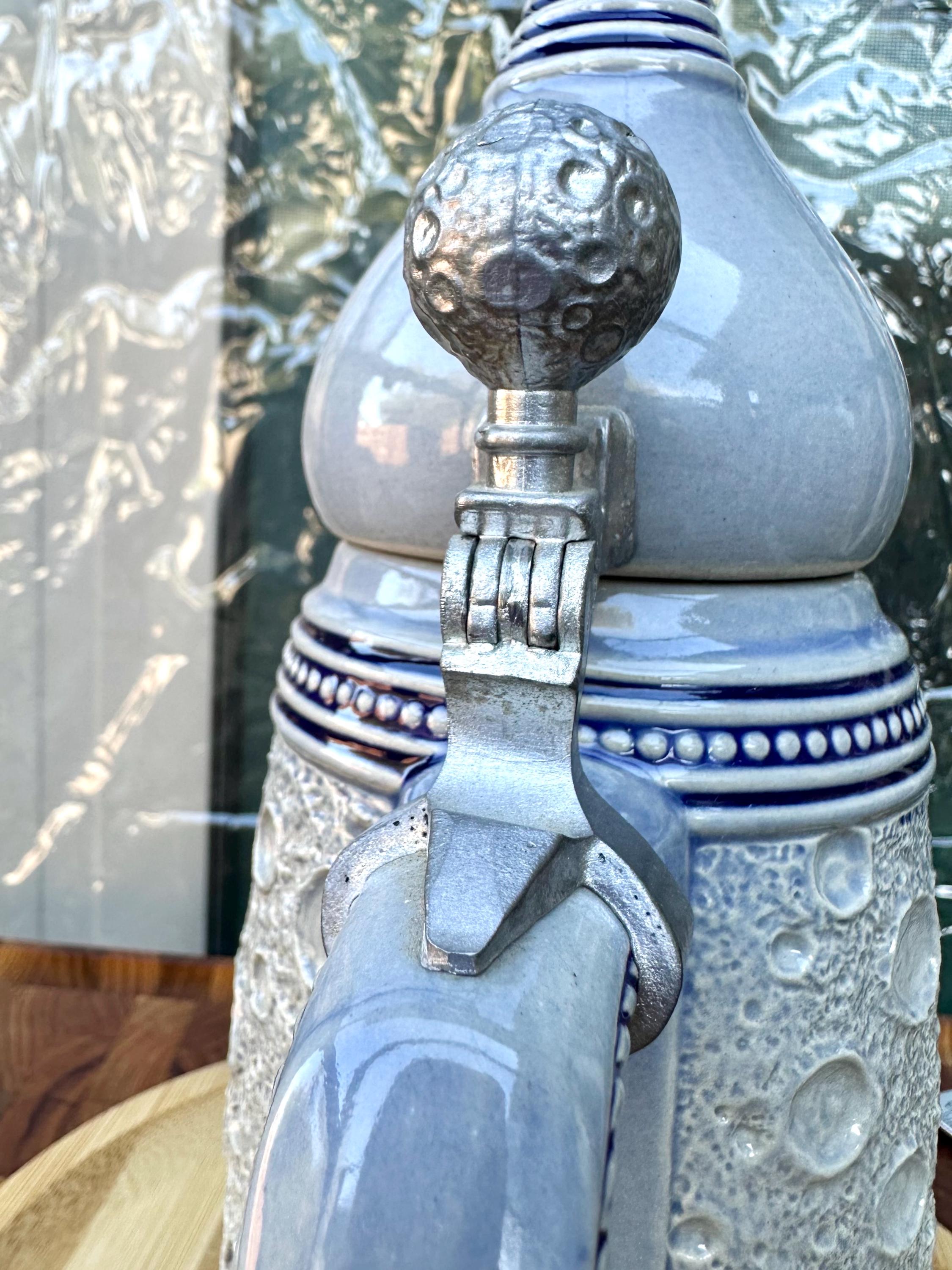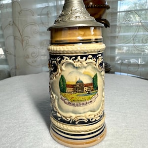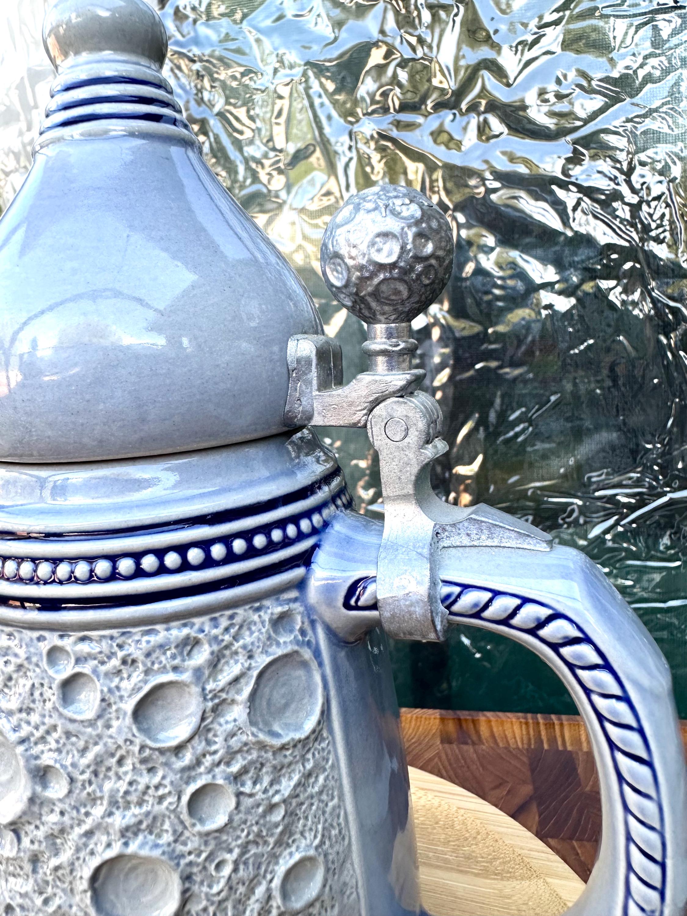 This is the "Moon Man", from the Schultz & Dooley Utica Club Beer Stein Family. This is a unique beer stein. The tumblift is shaped like the moon. The thumblift, strap, hinge and shank are in great working condition. The Moon Man does not have any crazing, cracks, chips, or blemishes. He does not have the silver antenna, however you can add a silver pipe cleaner I did not want to alter this mug in any way. The bottom of this stein reads: First Edition WEBCO Made in Germany for FX Matt Brewing Co. Utica NY This mug was made between 1993 and 1995. This mug is not microwave or dishwasher safe. This is a hand wash only item. Disclaimer The color maybe different due to the lighting or camera. Though we try to reduce and reuse, the cost of additional shipping materials are included in the price. We are not responsible for damages incurred during shipping. As always please contact us if you would like additional pictures or if you have any questions.