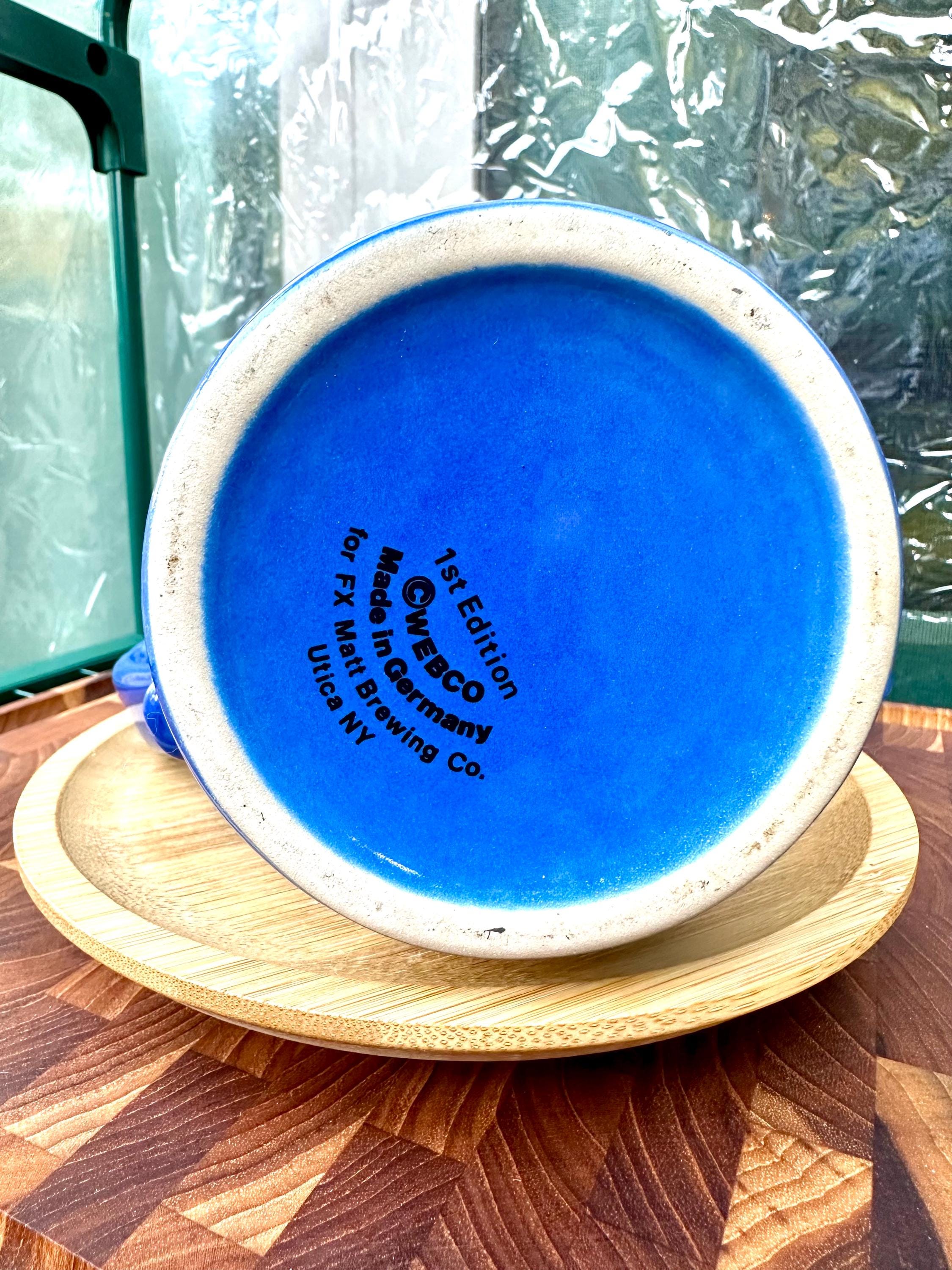 This is "Uncle Rudolph" from the Schultz & Dooley beer club universe. Uncle Rudolph is a sea captain and was originally issued in 1994 by Gerz in Germany. This is 1 of 10,000 first edition beer steins produced. The bottom of the mug reads: 1st Edition WEBCO Made in Germany for FX Matt Brewing Co. Utica NY By this stamp on the bottom this was made between 1993-1995. This mug is not damaged, there is no crazing, chips, cracks or defects. We do not recommend that you put this stein in the dishwasher or microwave. Hand wash only.