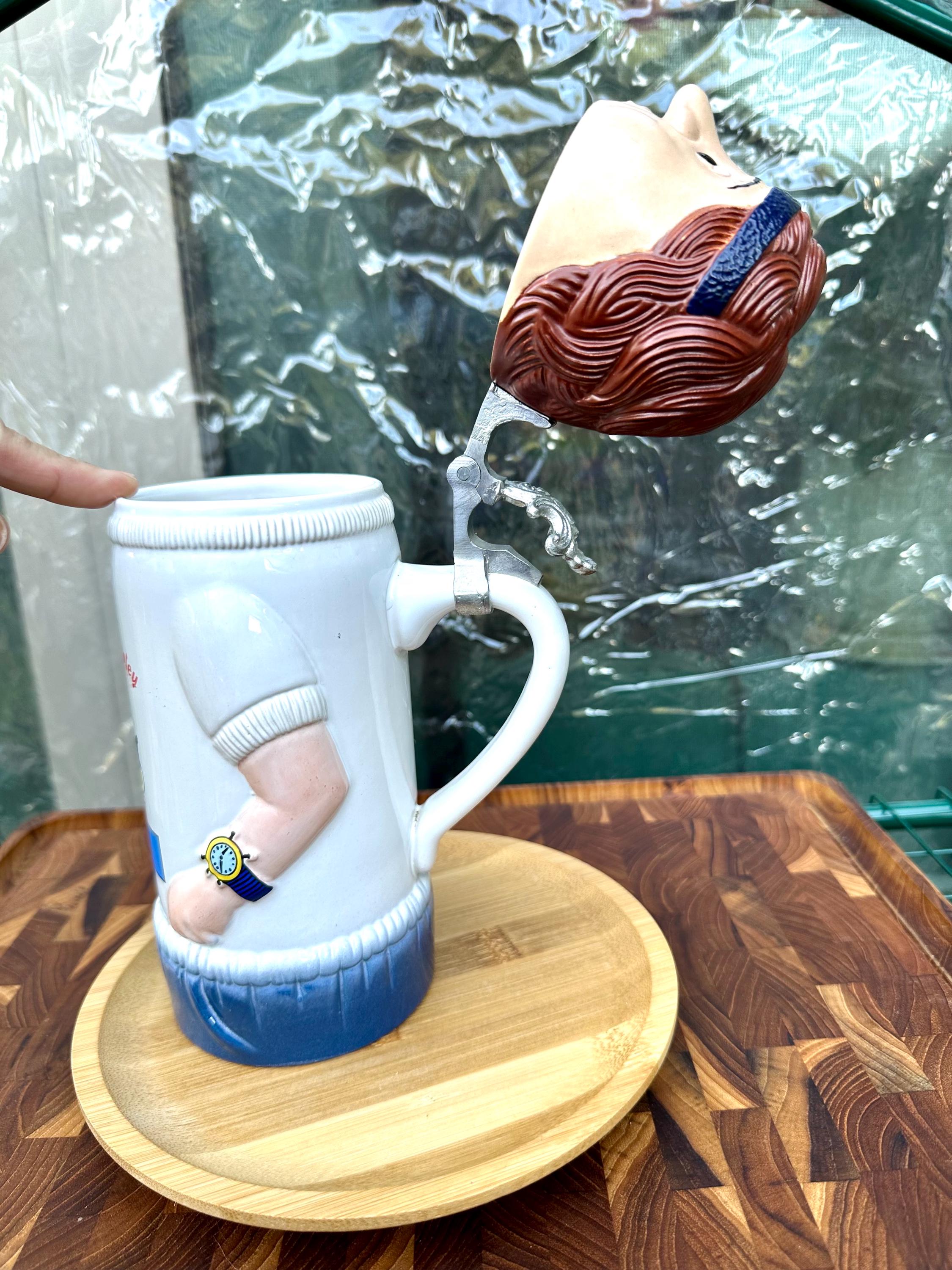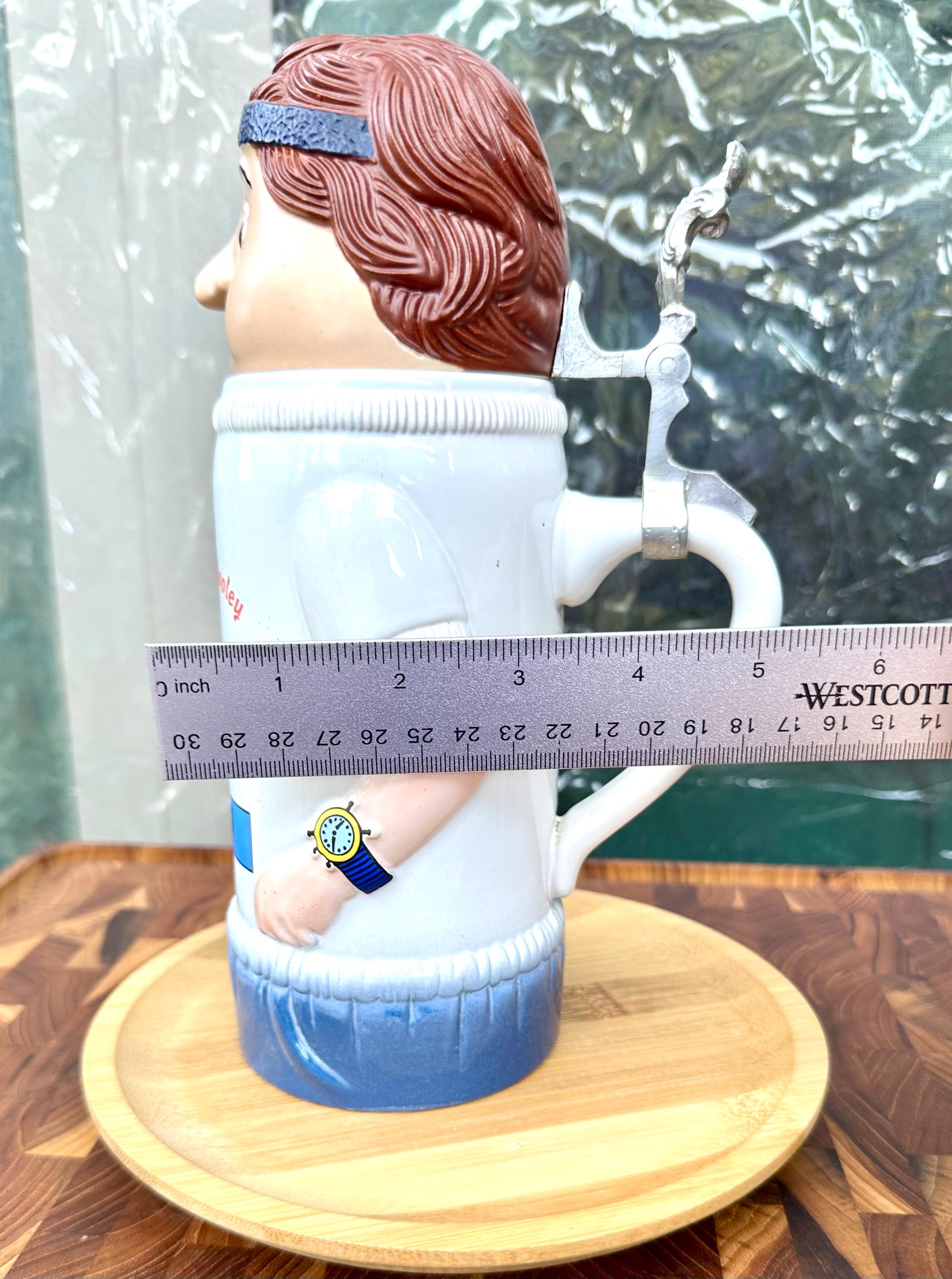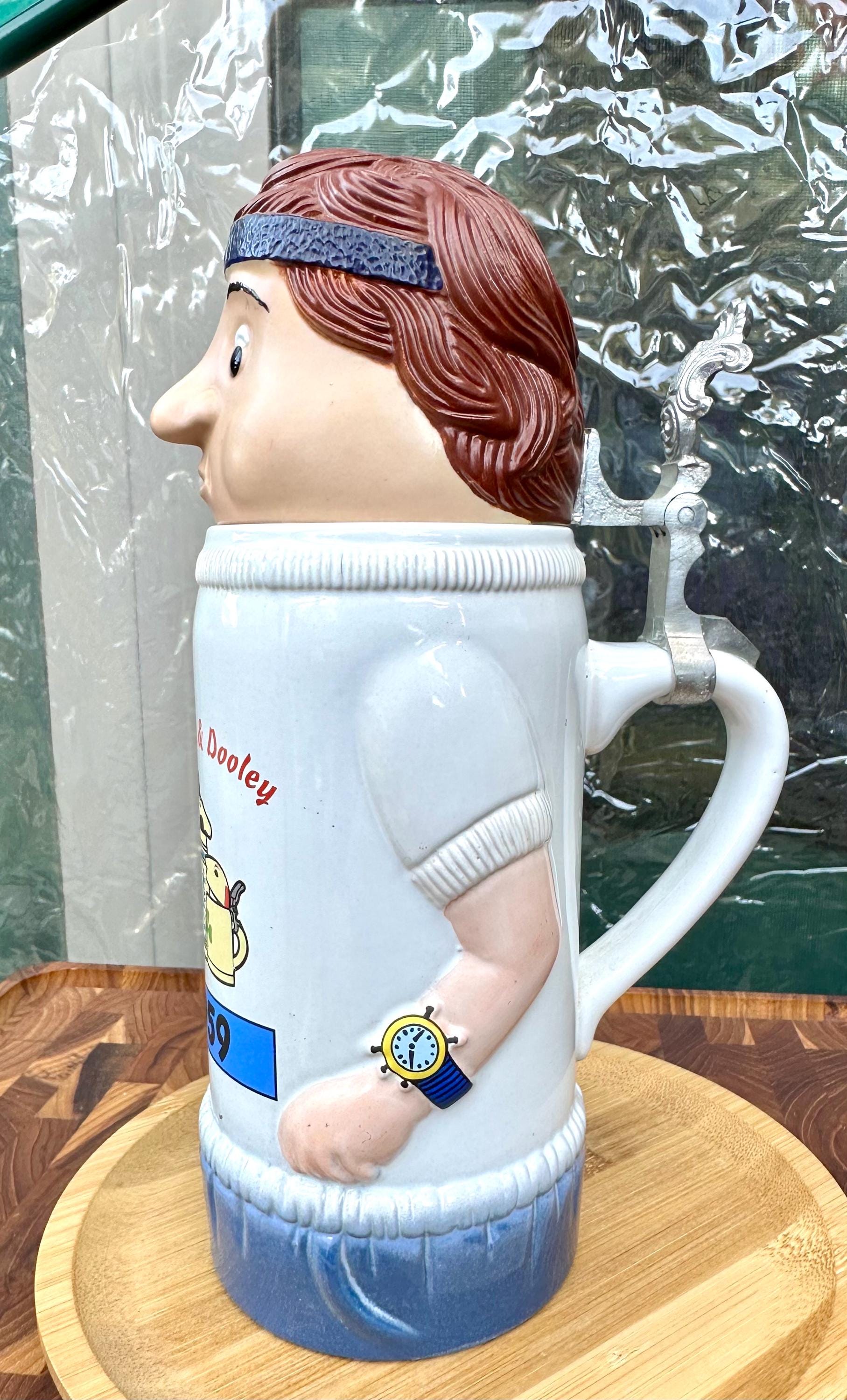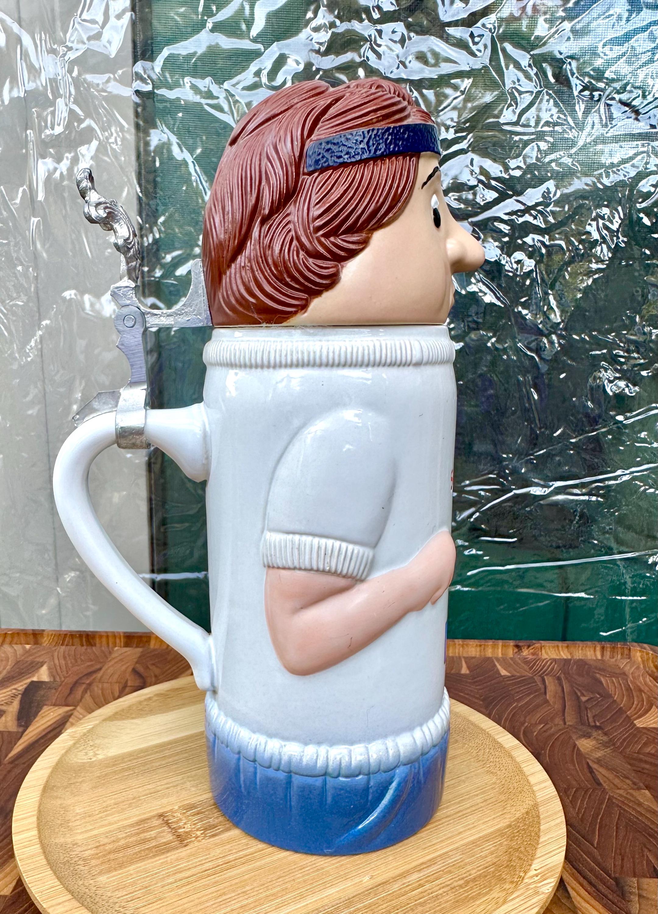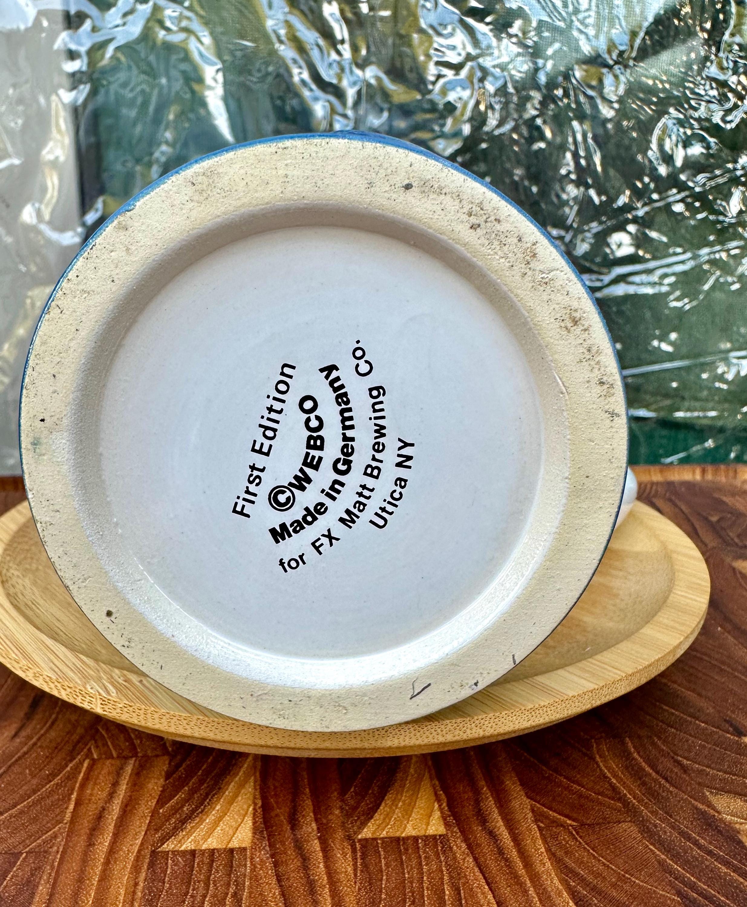 This is from Schultz & Dooley known as the "UC Runner" or "WEBCO". This is a 1st edition stein from the Utica Club beer family universe. The bottom of the mug reads: First Edition WEBCO Made in Germany for FX Matt Brewing Co. Utica NY By the stamp on the bottom this was produced between 1993 and 1995. There is no crazing or cracks. There is a chip on he right sleeve. Also the handle near the strap is slightly discolored. Pictures are included. I do not recommend putting this beer stein in the microwave or dishwasher. This is a hand wash only item.
