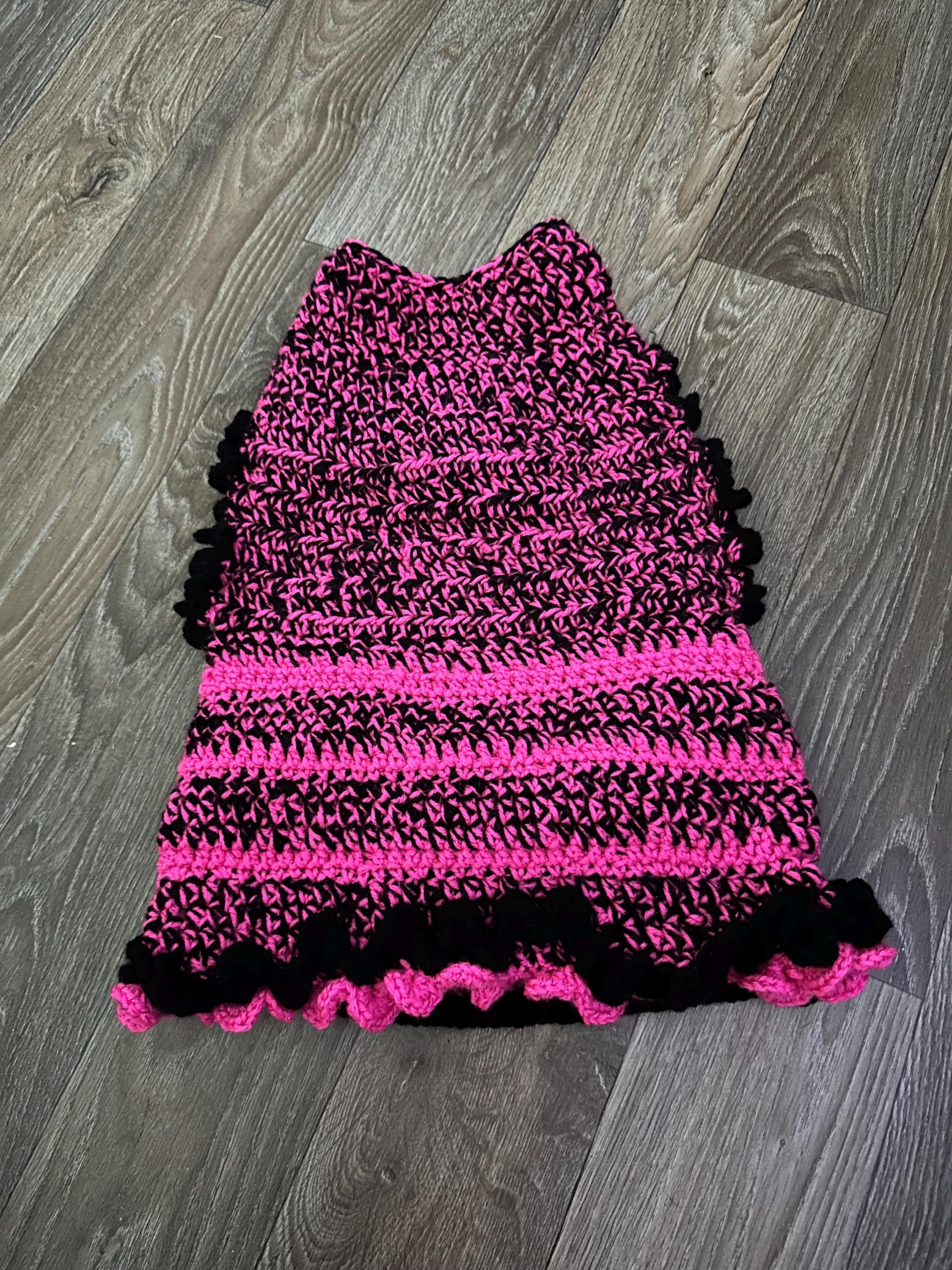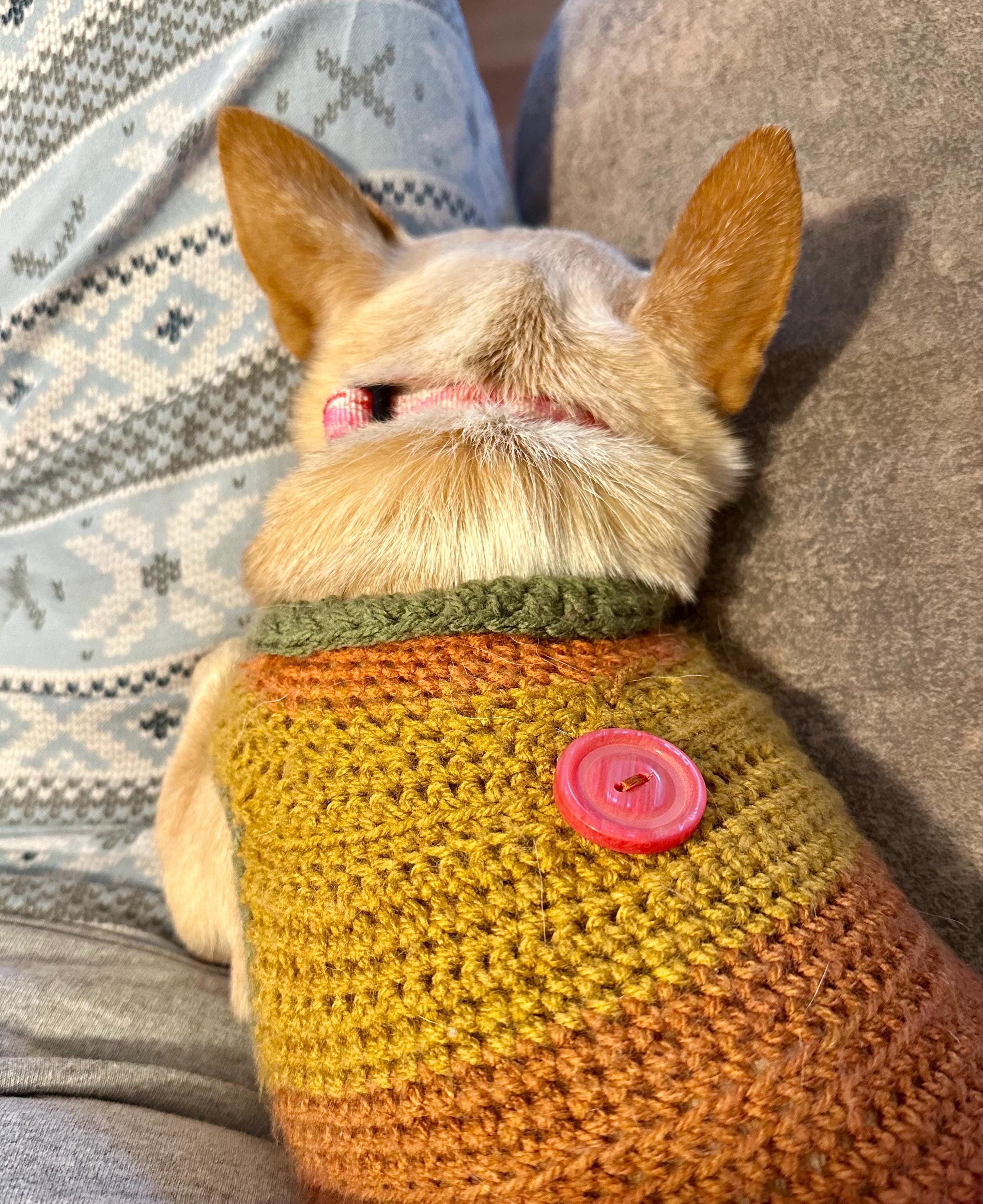 I custom crochet sweaters for dogs and other pets. If you would like to discuss my services, you may contact me by messaging me on Etsy or by sending an email to lilbittyfinds [!at] gmail.com.