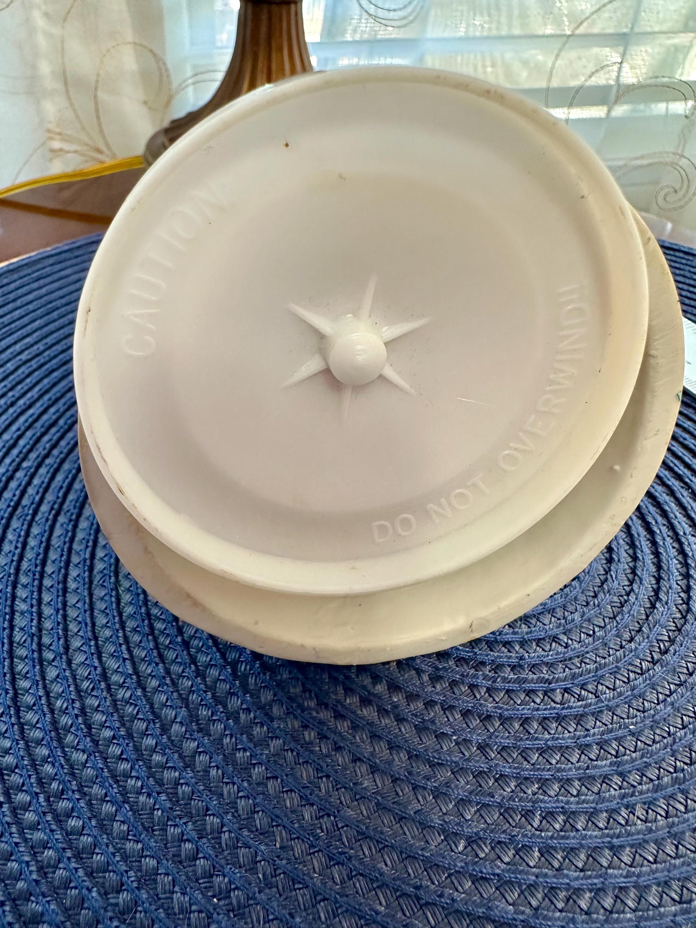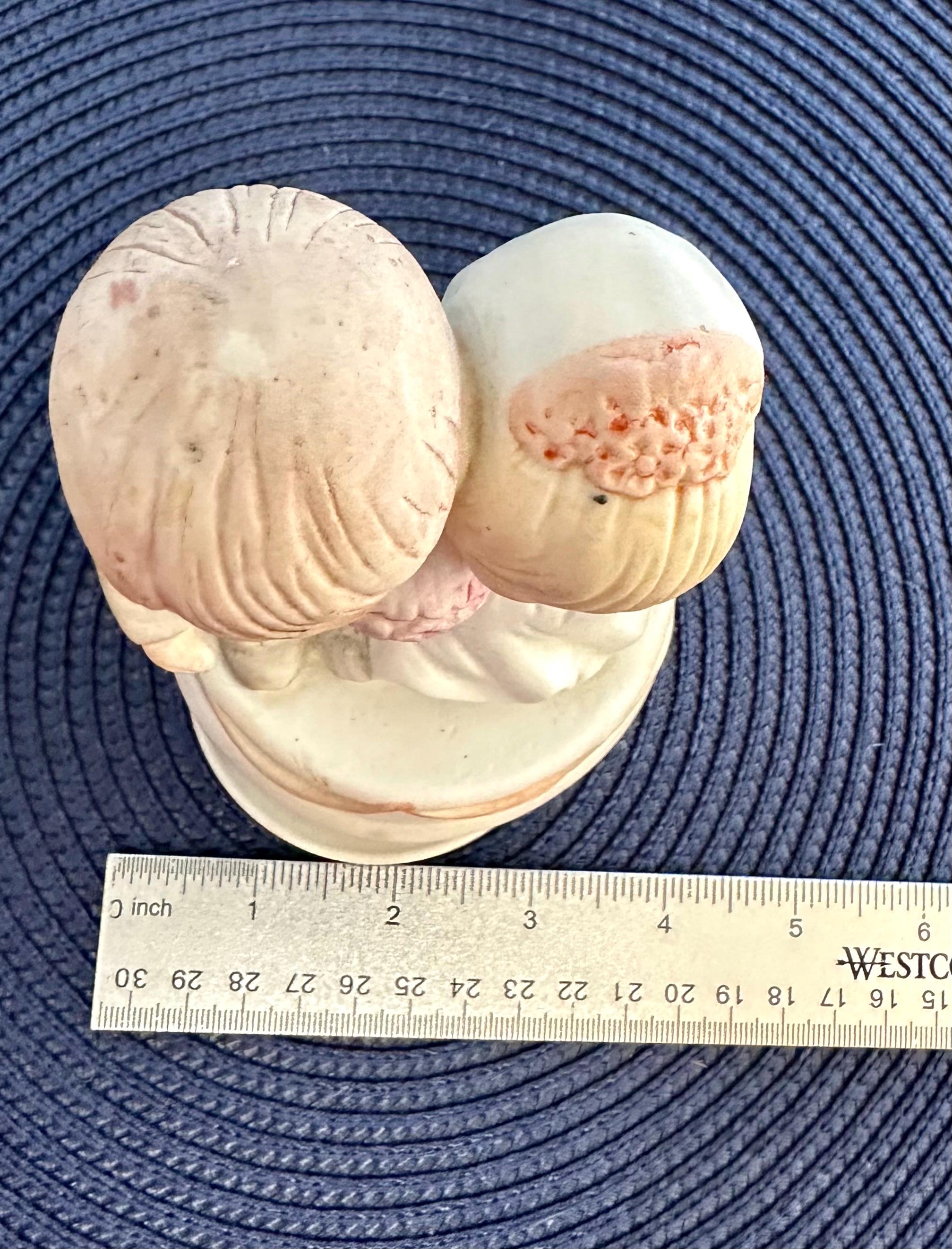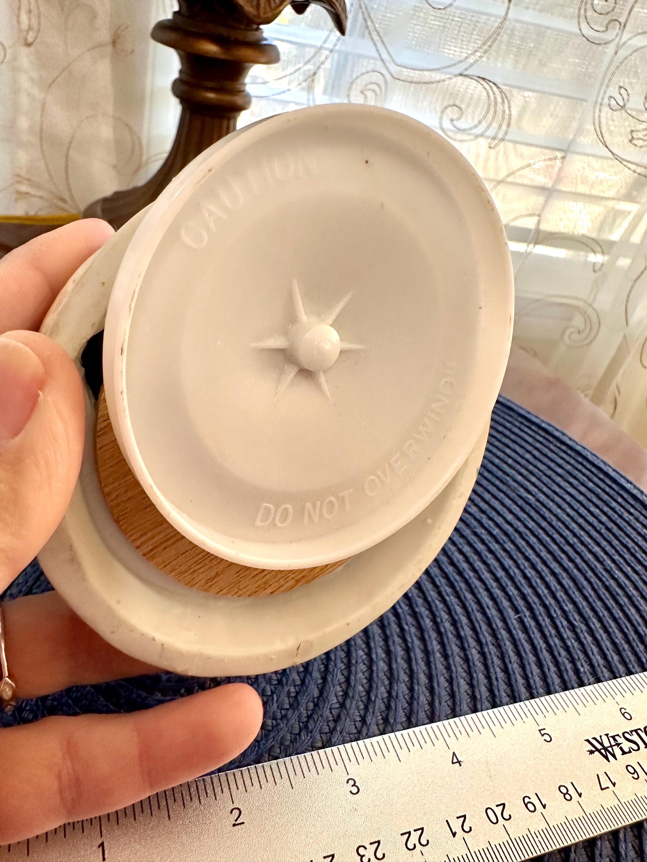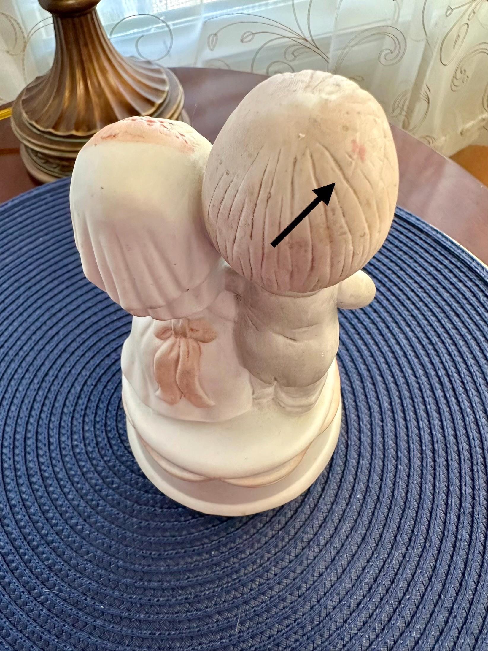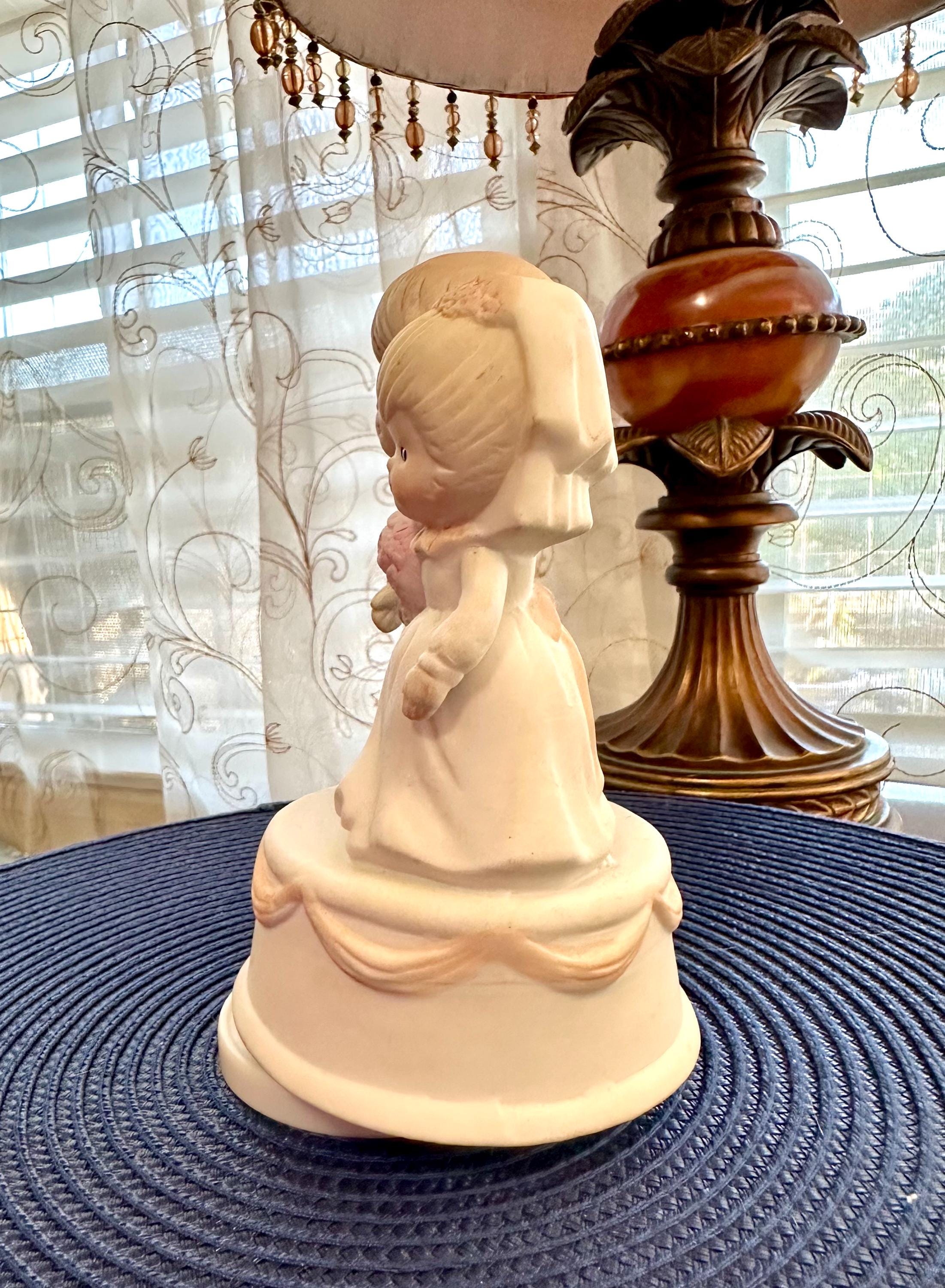 This is a Vintage Porcelain Husband and Wife Music Box. This is a working music box, I do not know the song but I am willing to send you video of this working. There are no cracks or chips. There is one spot on the groom's head, there is a picture included. Our inventory changes often so come back and visit.