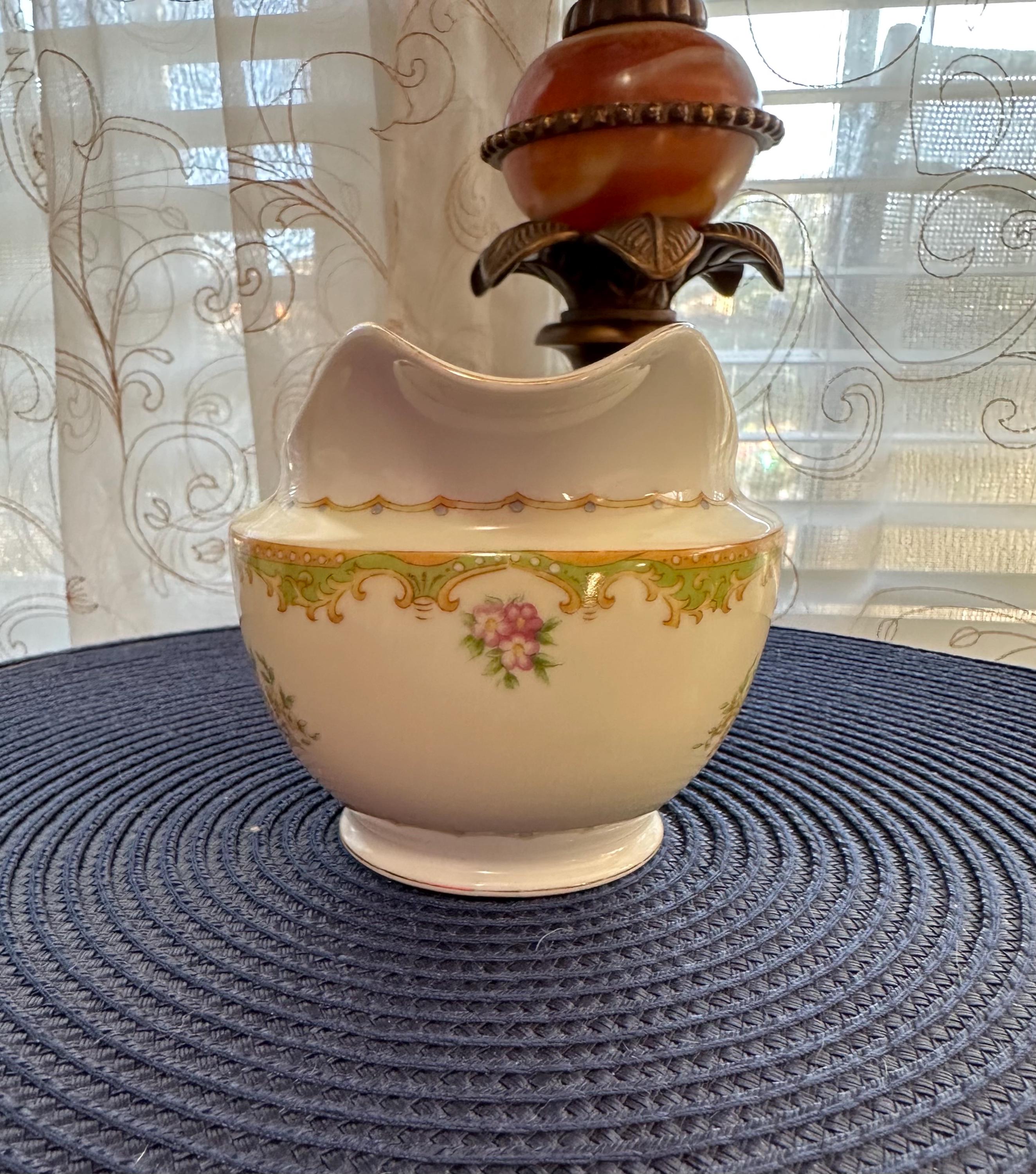 This a beautiful cream with flowers and gold by Noritake. This is an older piece, there are no cracks or chips. There are a few spots where the gold has been worn off. There are pictures included. The bottom of this creamer reads: Noritake Japan Base on the letter "M" with the wreath around it, stands for the Morimura Brothers. The Morimura Brothers mark was used up until 1953. However, this pattern was manufactured in 1933. This would be perfect to add to your creamer collection or to your Noritake dish set.