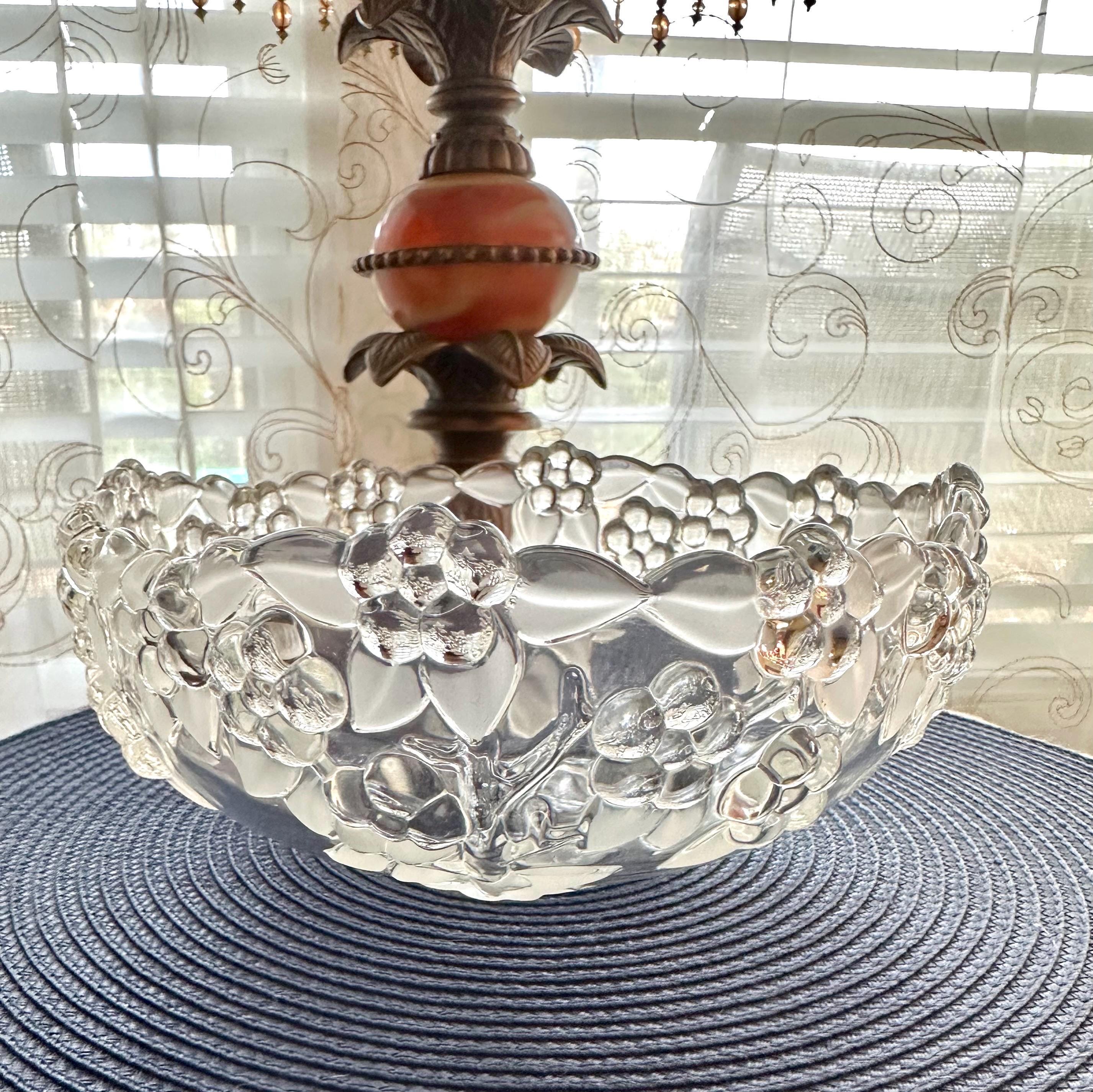 This is a crystal glass bowl by Mikasa in the "Carmen Floral" pattern. This bowl DOES NOT come in the original box, but will be sent to you with love and care. However, it is in pristine condition and has no chips, fading, cracks, or scratches. This bowl is 8 inches wide and 3 1/2-4 inches tall. This bowl is a beautiful addition to be used for any season and occasion.