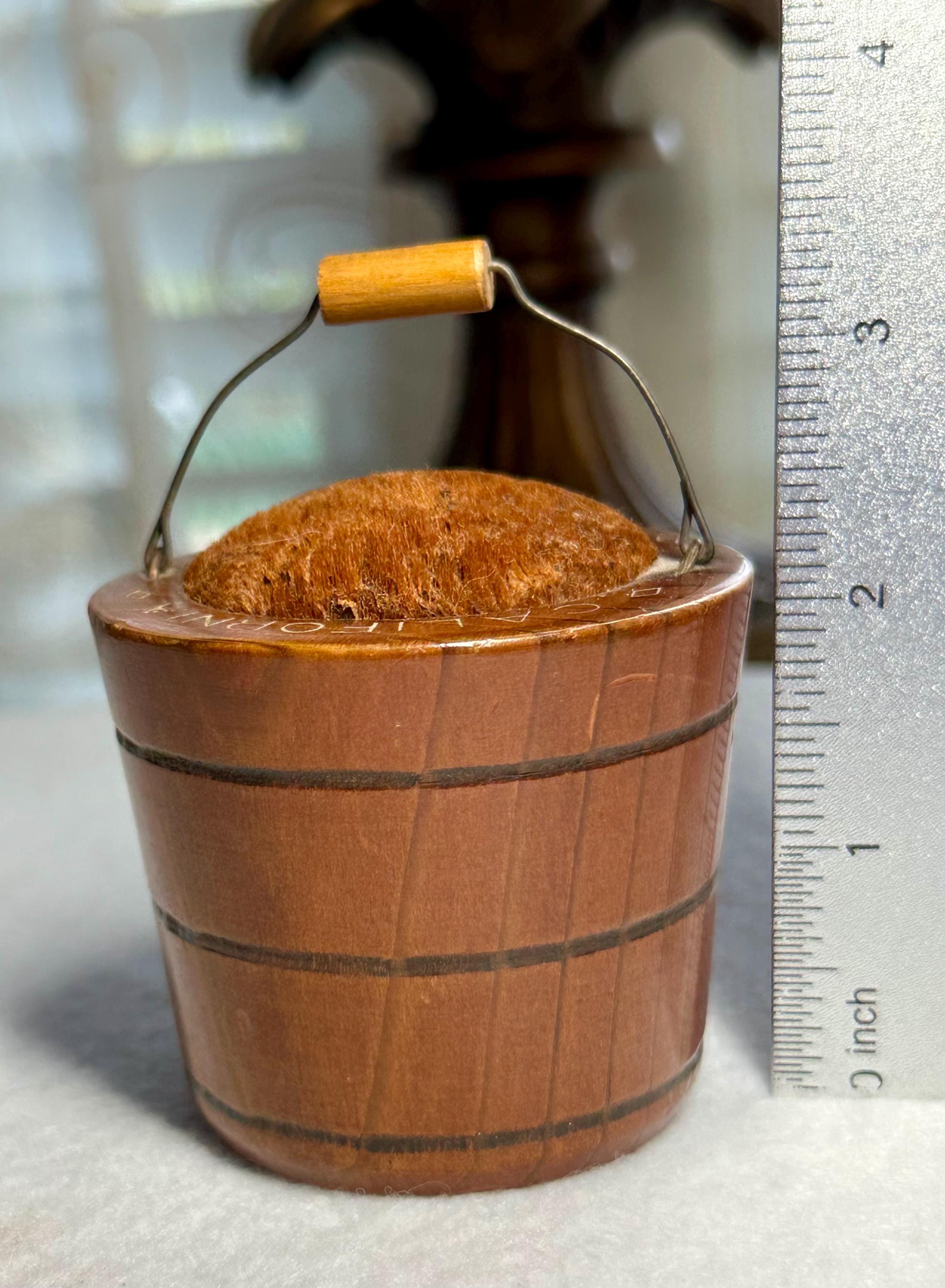 This is a vintage souvenir from California. This vintage item can be used as a pincushion or if you have a dollhouse it would be a great prop to put it in. This is 3 inches tall including the handle standing up and 2 1/2 inches wide. This item is being sold with no refunds. We do have other miniatures and dollhouse items in our shop. Disclaimer: The color maybe different due to the lighting or camera. Though we try to reduce and reuse, the cost of additional shipping materials are included in the price. We are not responsible for damages incurred during shipping. As always please contact us if you would like additional pictures or if you have any questions.