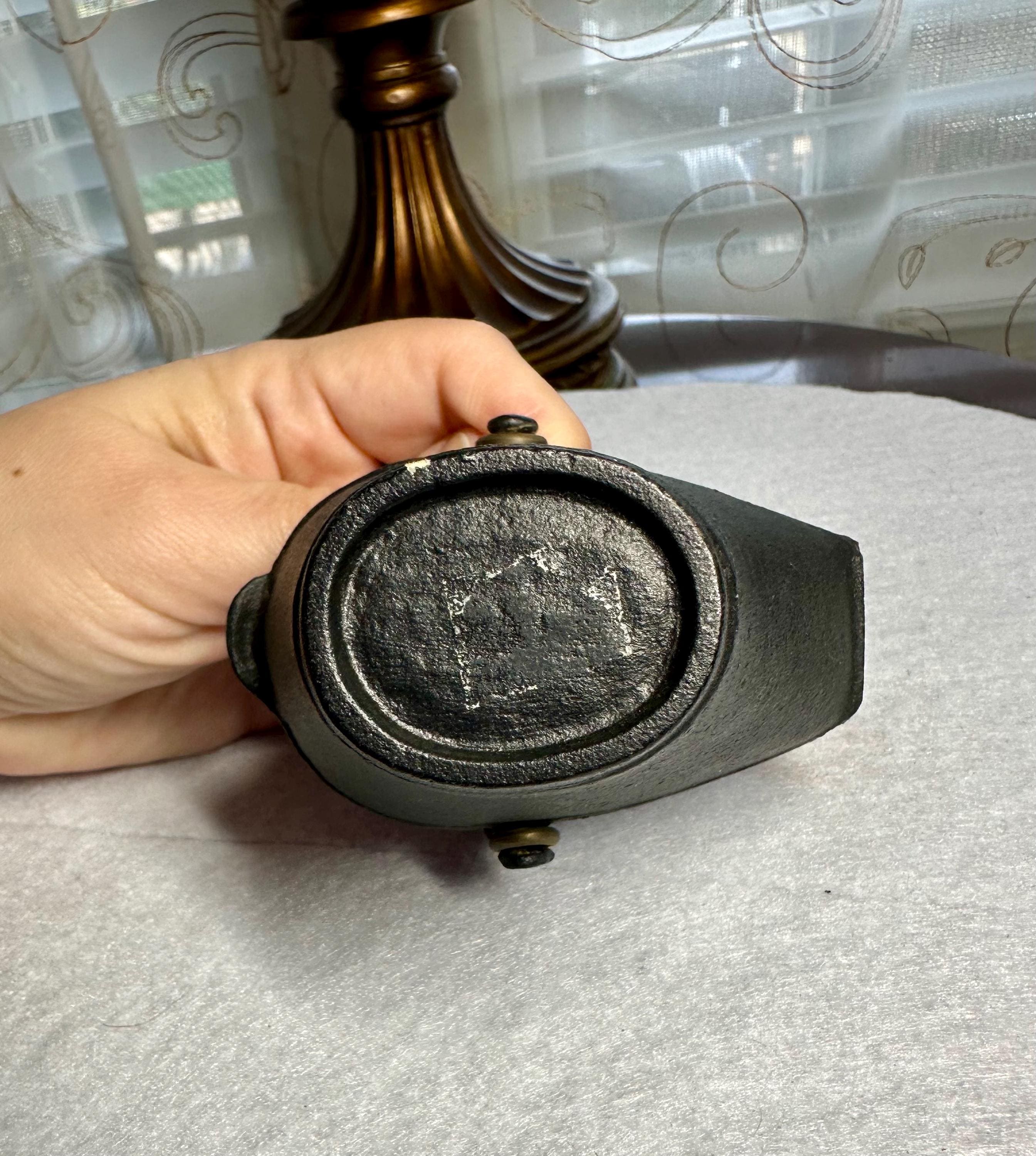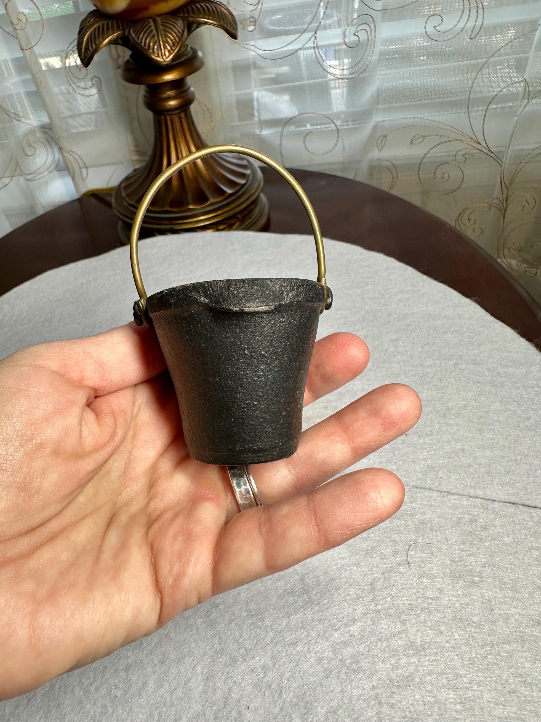 This is a cast iron miniature pail that stand 3 inches tall and is 3 inches wide. This is a nice piece to add to your collection. There are no refunds on this item. I do not recommend for you to put the this in the dishwasher or microwave. I am not sure if this item is safe to put food on and or eat with it, so we recommend that you use this strictly for decoration. We do have other miniature items in our shop please take a minute to look at our other items. Disclaimer: The color maybe different due to the lighting or camera. Though we try to reduce and reuse, the cost of additional shipping materials are included in the price. We are not responsible for damages incurred during shipping. As always please contact us if you would like additional pictures or if you have any questions.