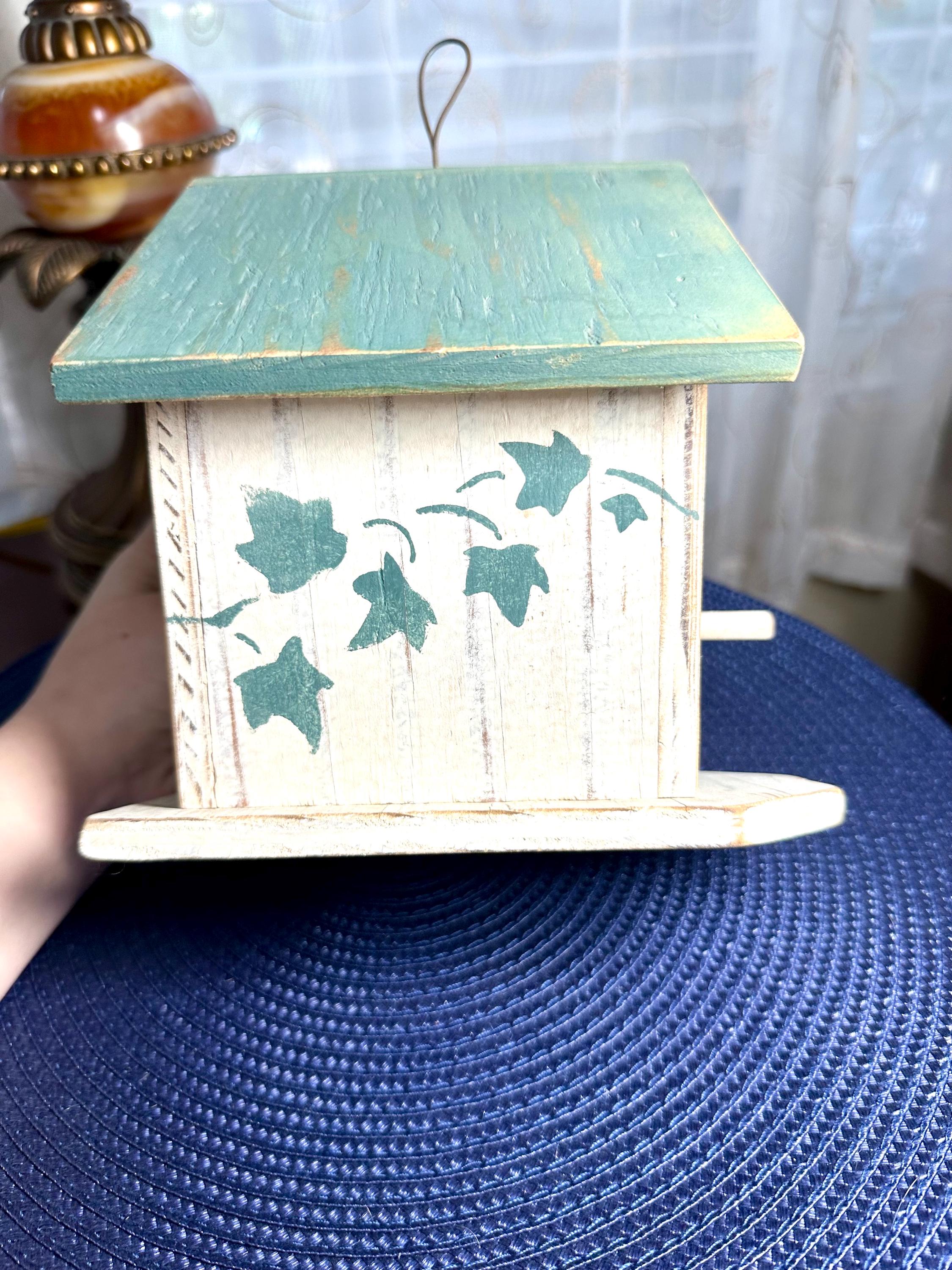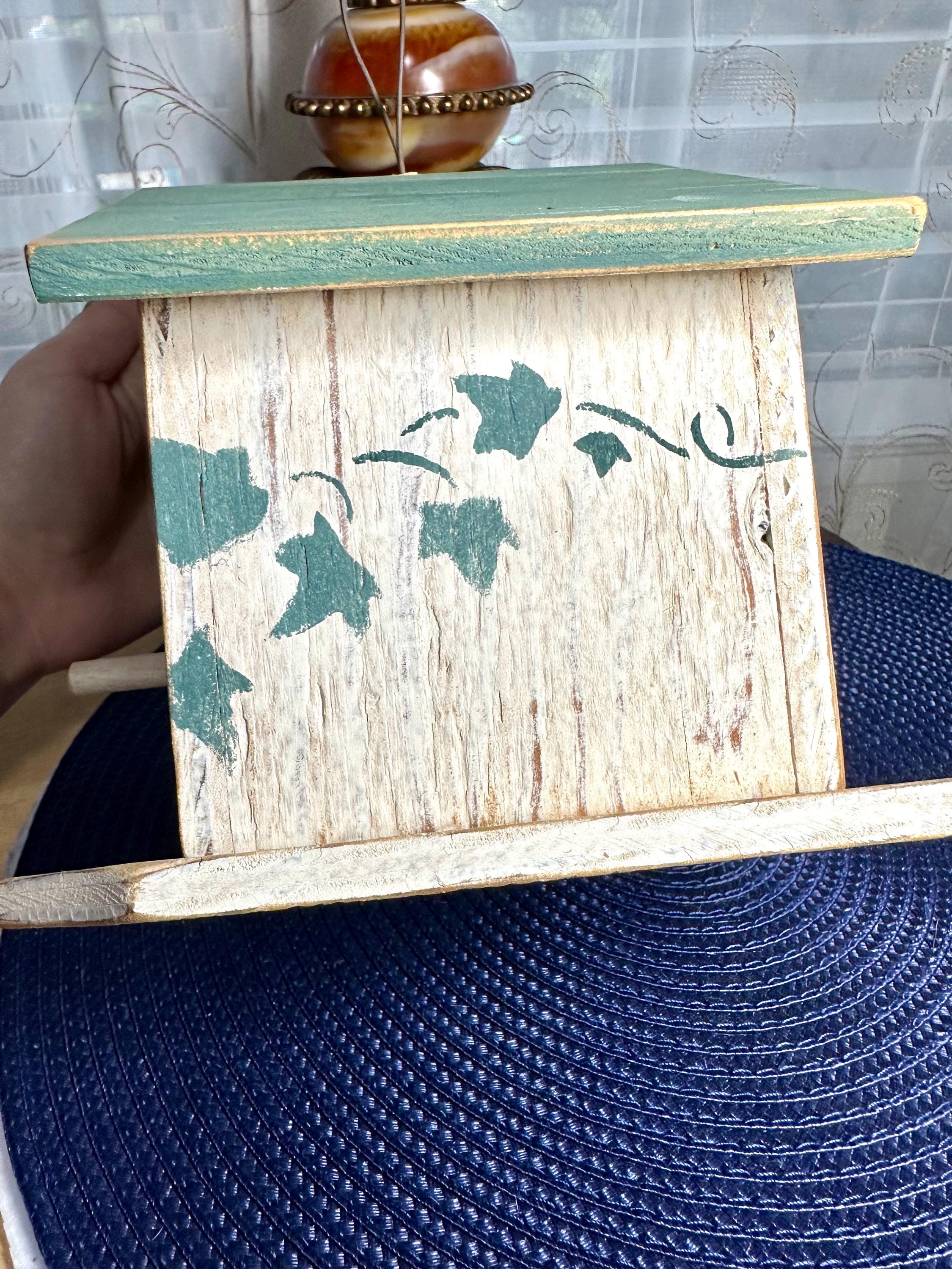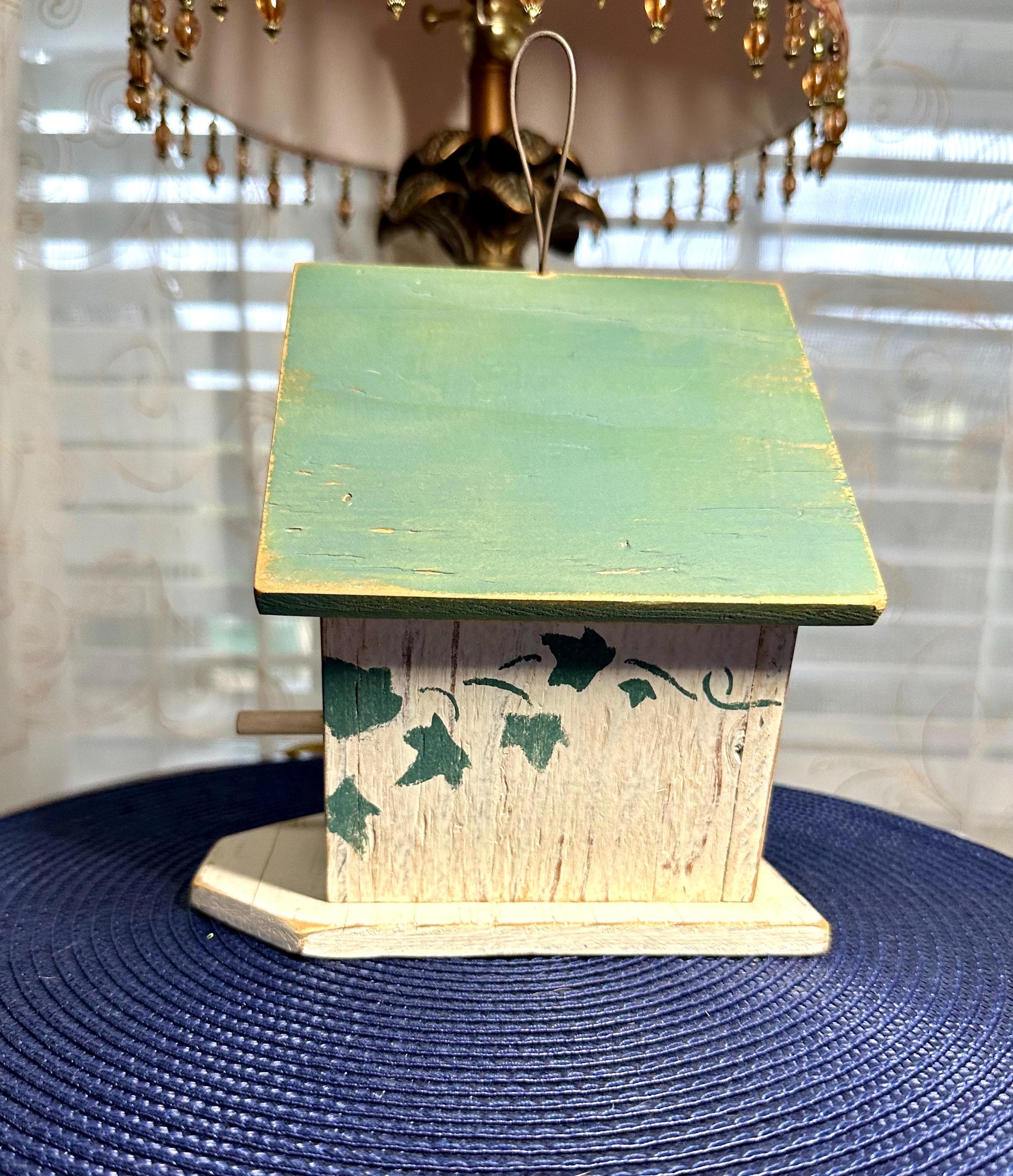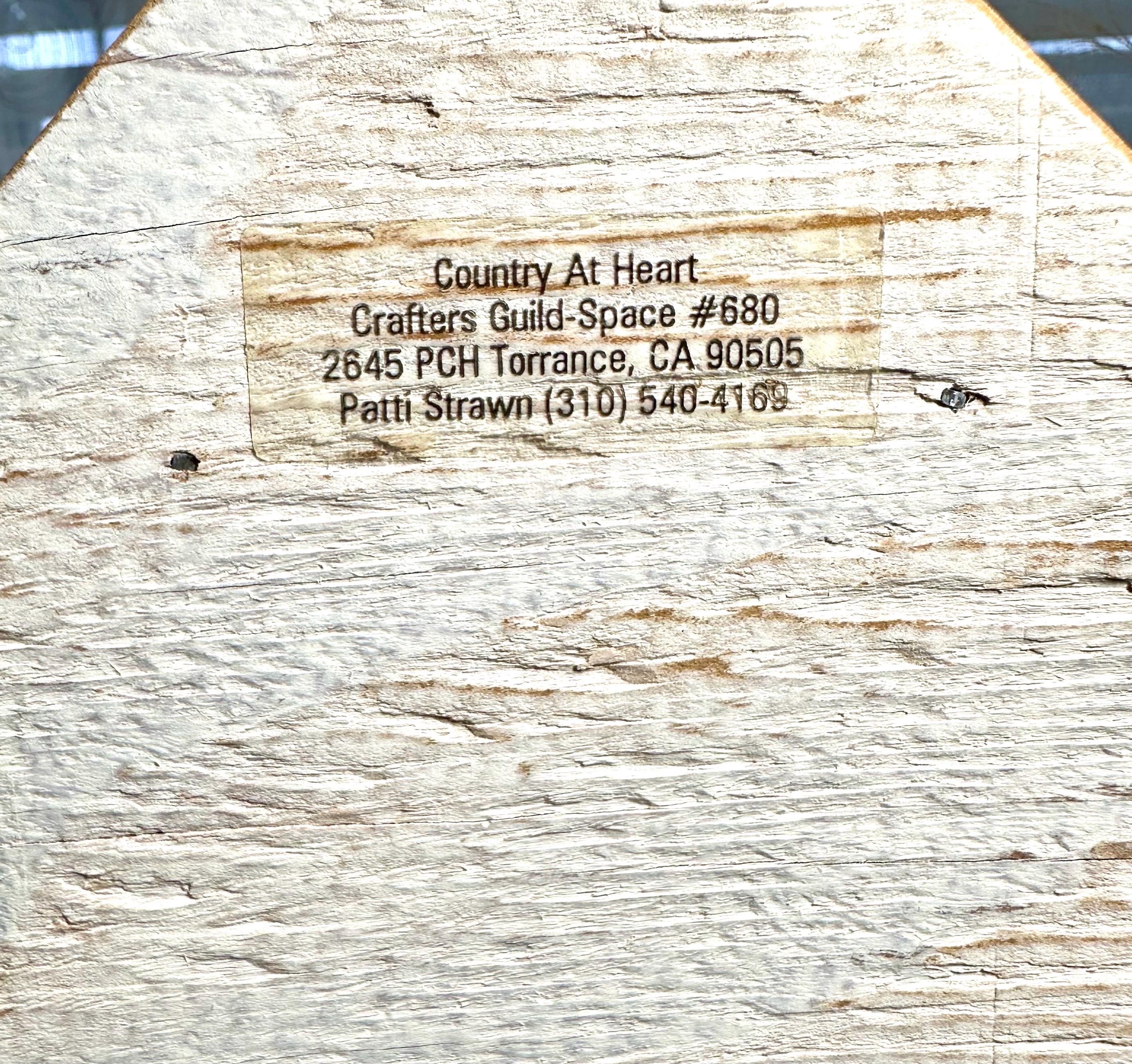 This is a must have decoration for anyone's backyard. This is a handmade birdhouse in a shabby cottage chic design. This birdhouse is 7.5 inches tall and 7 inches wide at the largest part of this house. The bottom of this house says: Country At Heart Crafters Guild Space #680 2645 PCH Torrance, CA 9050 Patti Strawn (310) 540-4169 To hang the birdhouse there is a metal loop. There are no returns on this item. If you have any questions please contact us. Disclaimer: The color maybe different due to the lighting or camera. Though we try to reduce and reuse, the cost of additional shipping materials are included in the price. We are not responsible for damages incurred during shipping. As always please contact us if you would like additional pictures or if you have any questions.