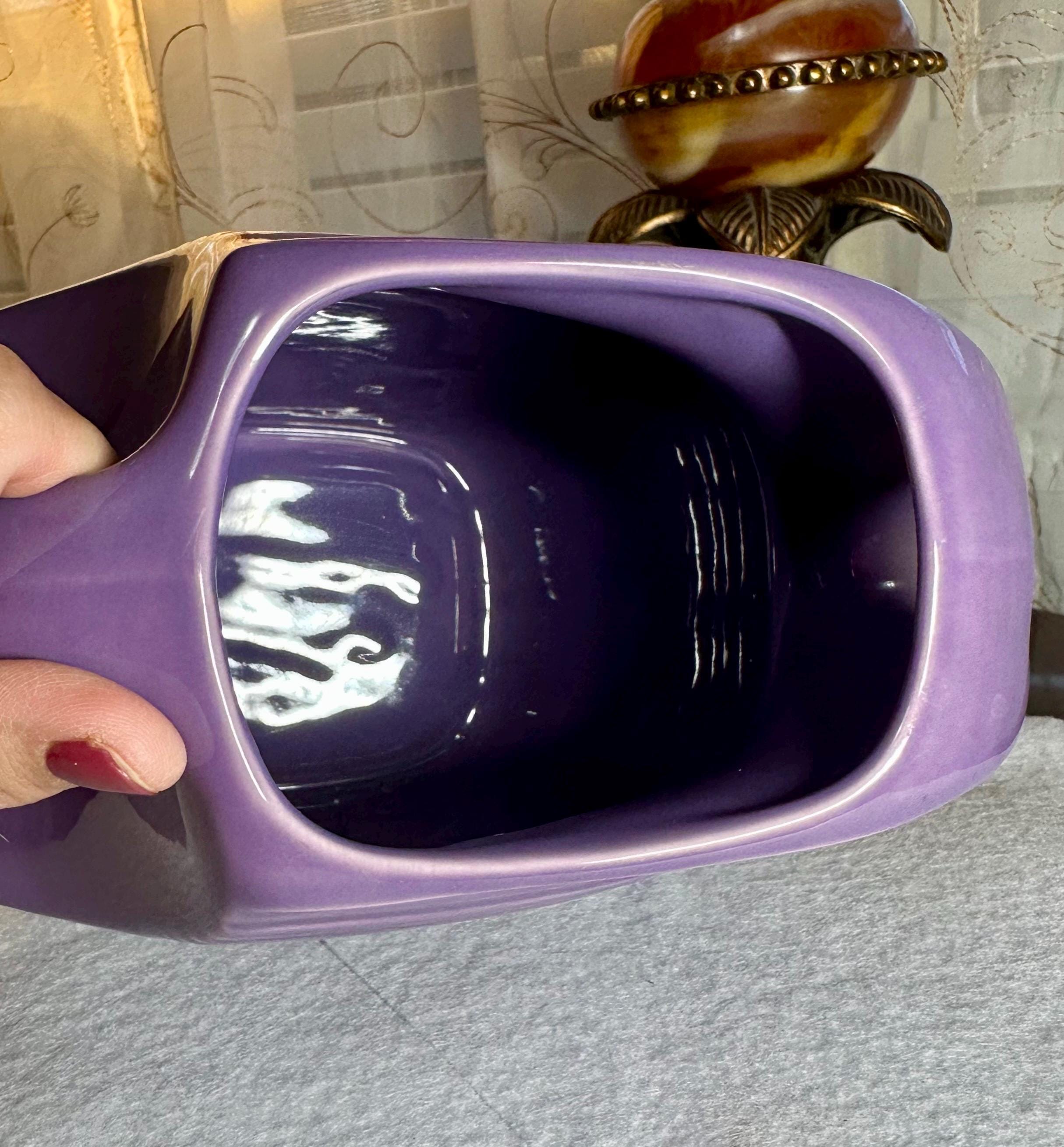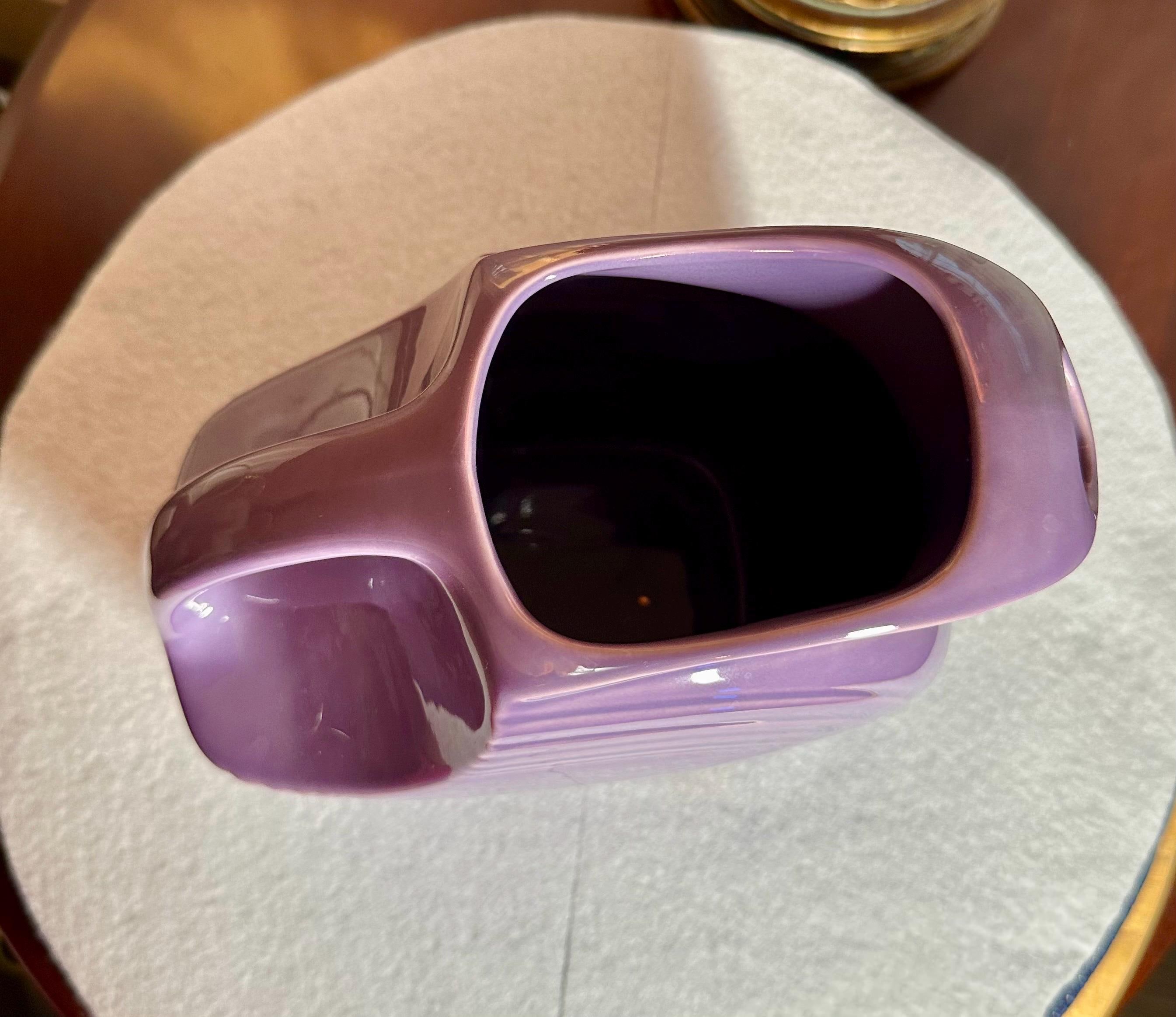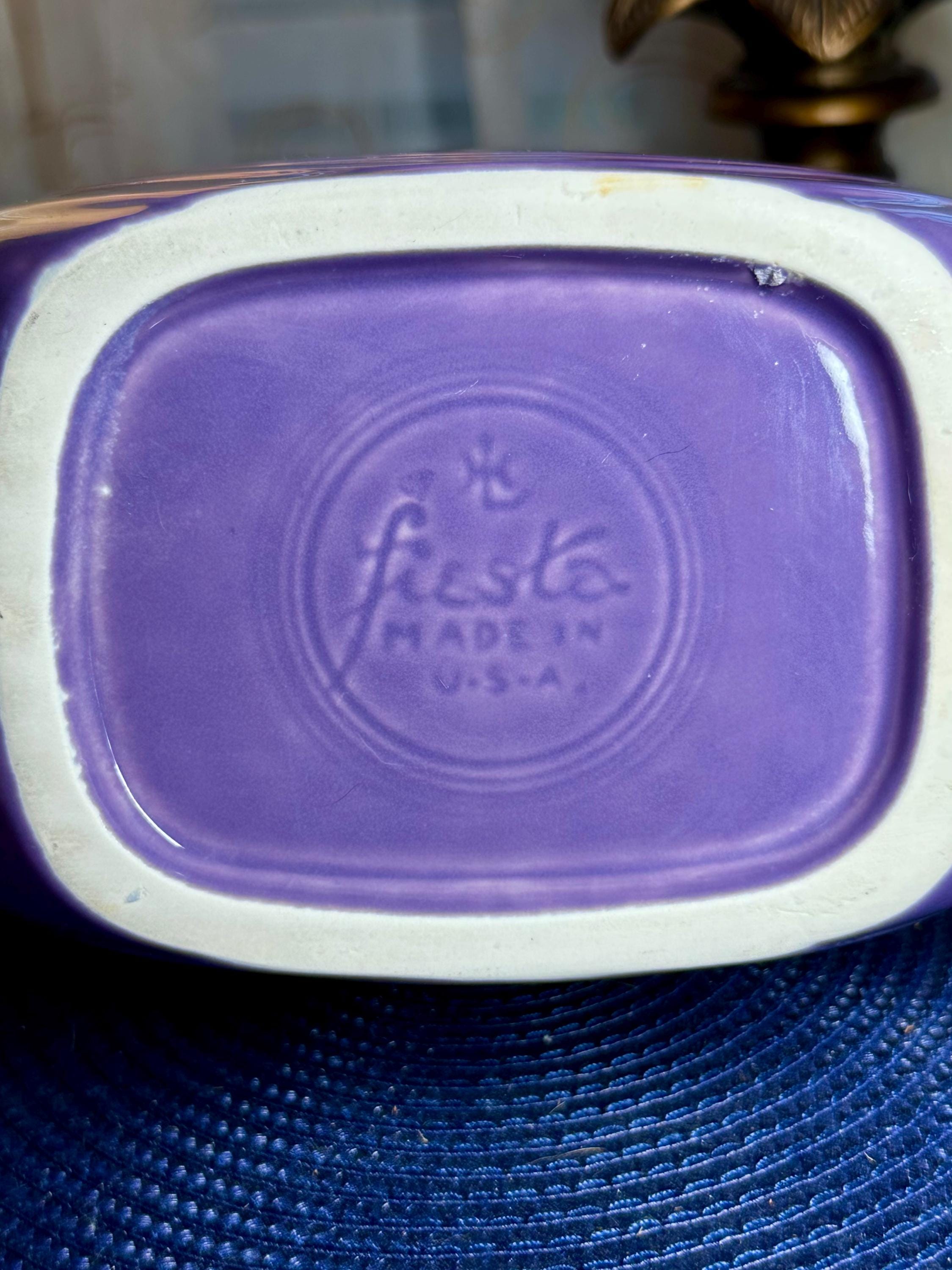 This is a Fiesta Large Disc Pitcher in Lilac. This will hold around 2 liters (67 ounces) and is 7 inches tall, 7.5 inches long and 3.5 inches wide. This lilac pitcher was made between 1993 to 1995. This can be used since it is lead-free ceramic made in China. I do not recommend putting this in the dishwasher or the microwave. There is a spot on the bottom that looks like it was made when this was produced, picture is included. There are no cracks or crazing. This is a beautiful lilac color and the camera did not do it justice. This does not have the original box but we will ship it to you in biodegradable packing peanuts and with love.