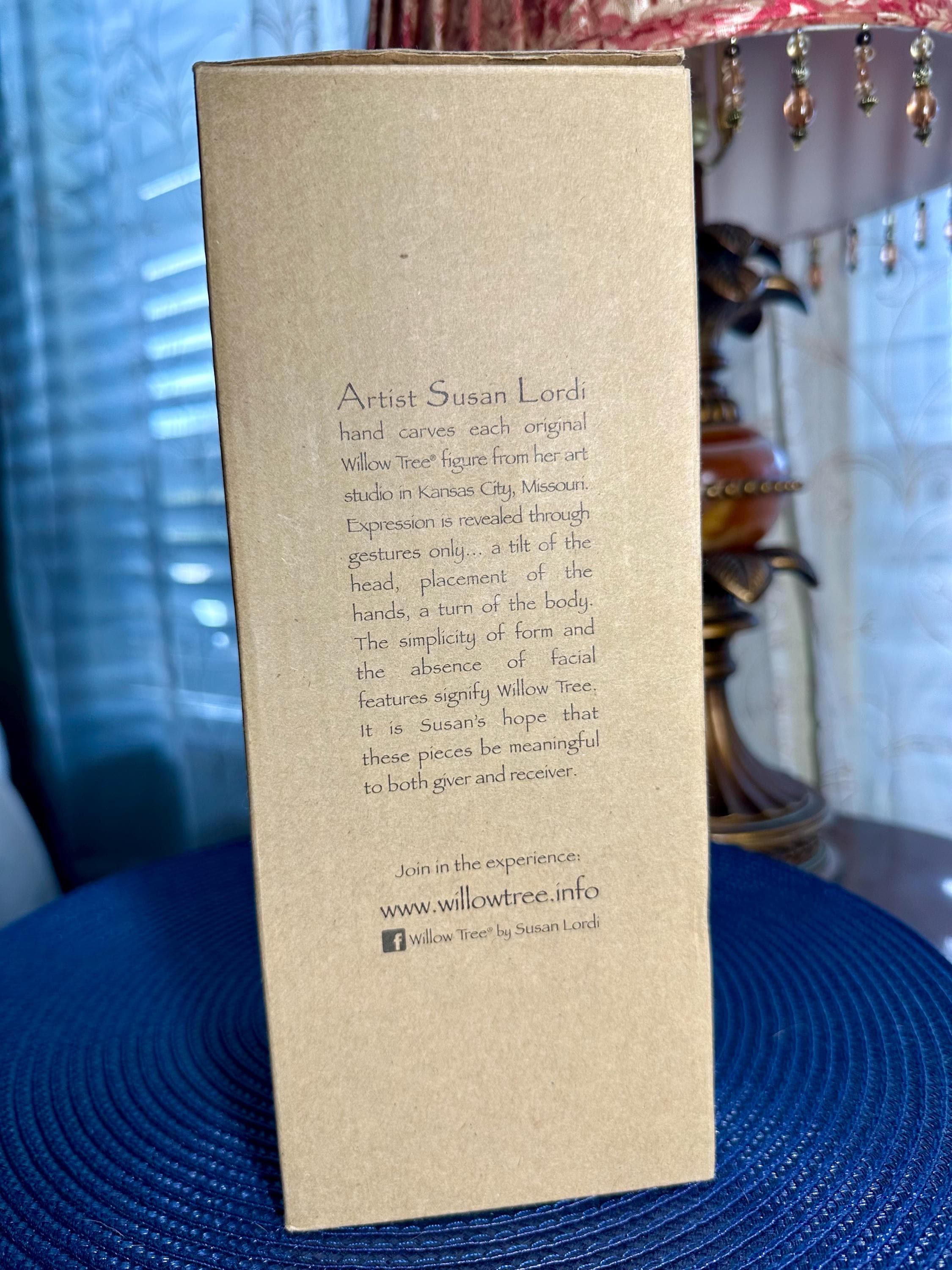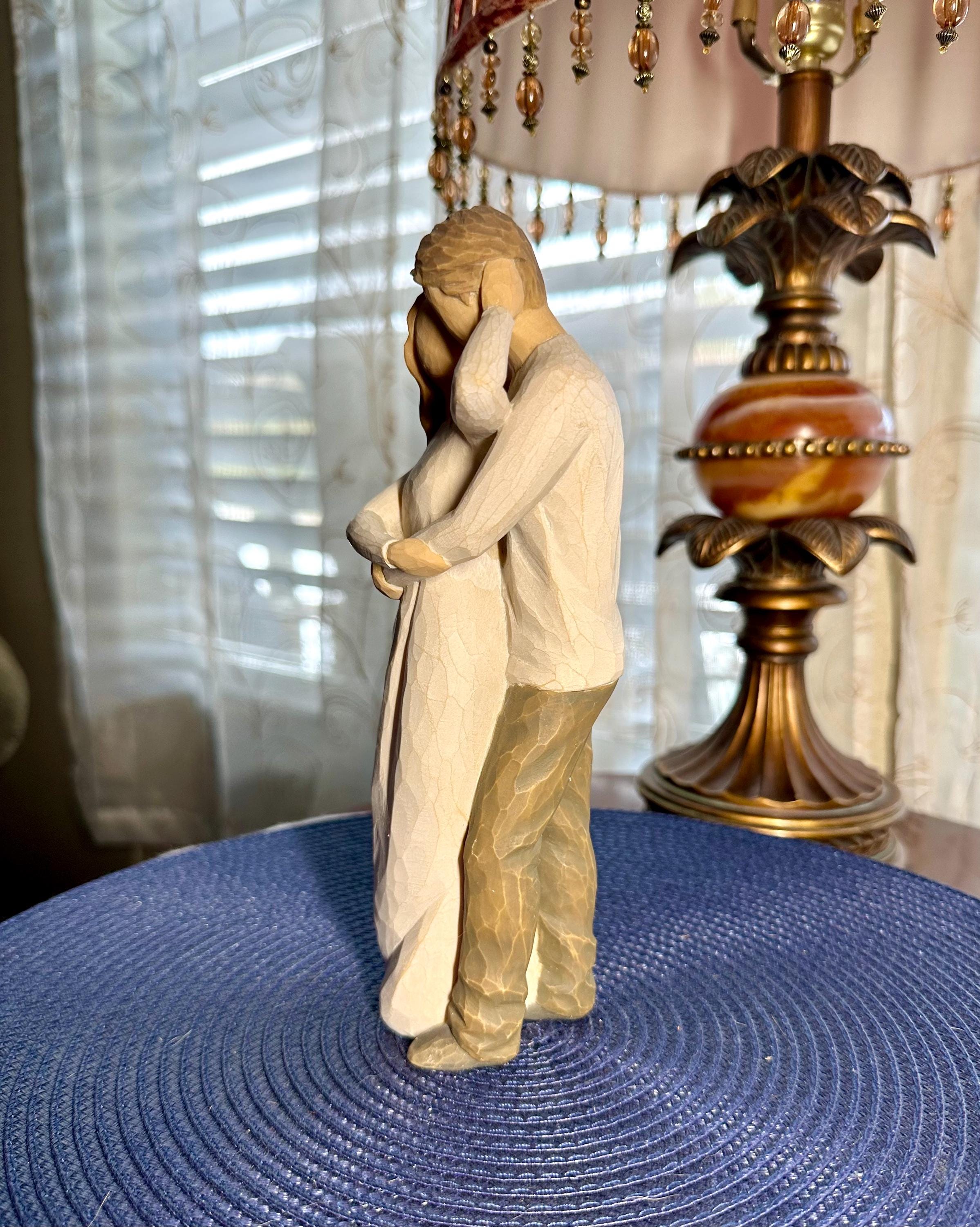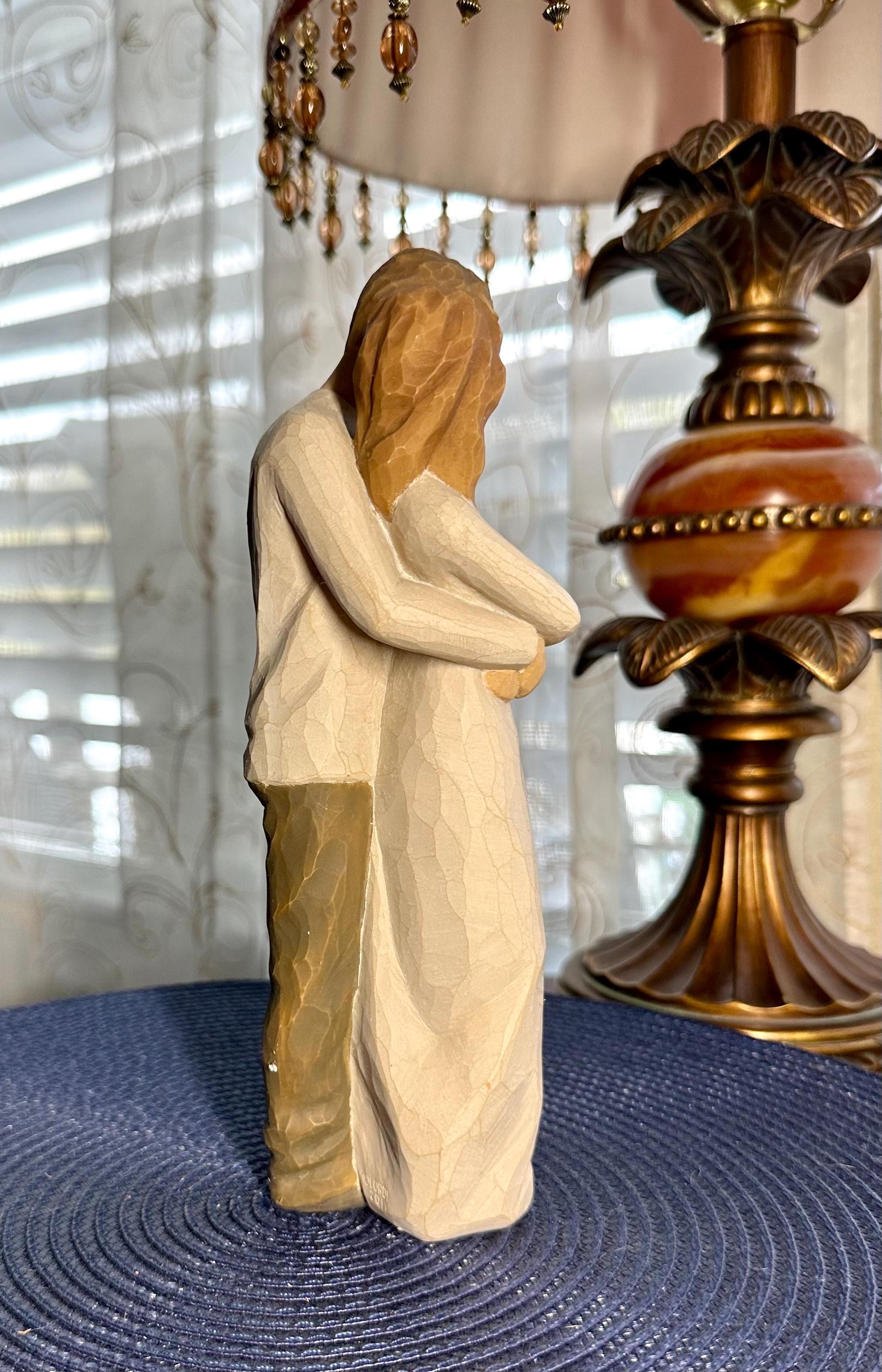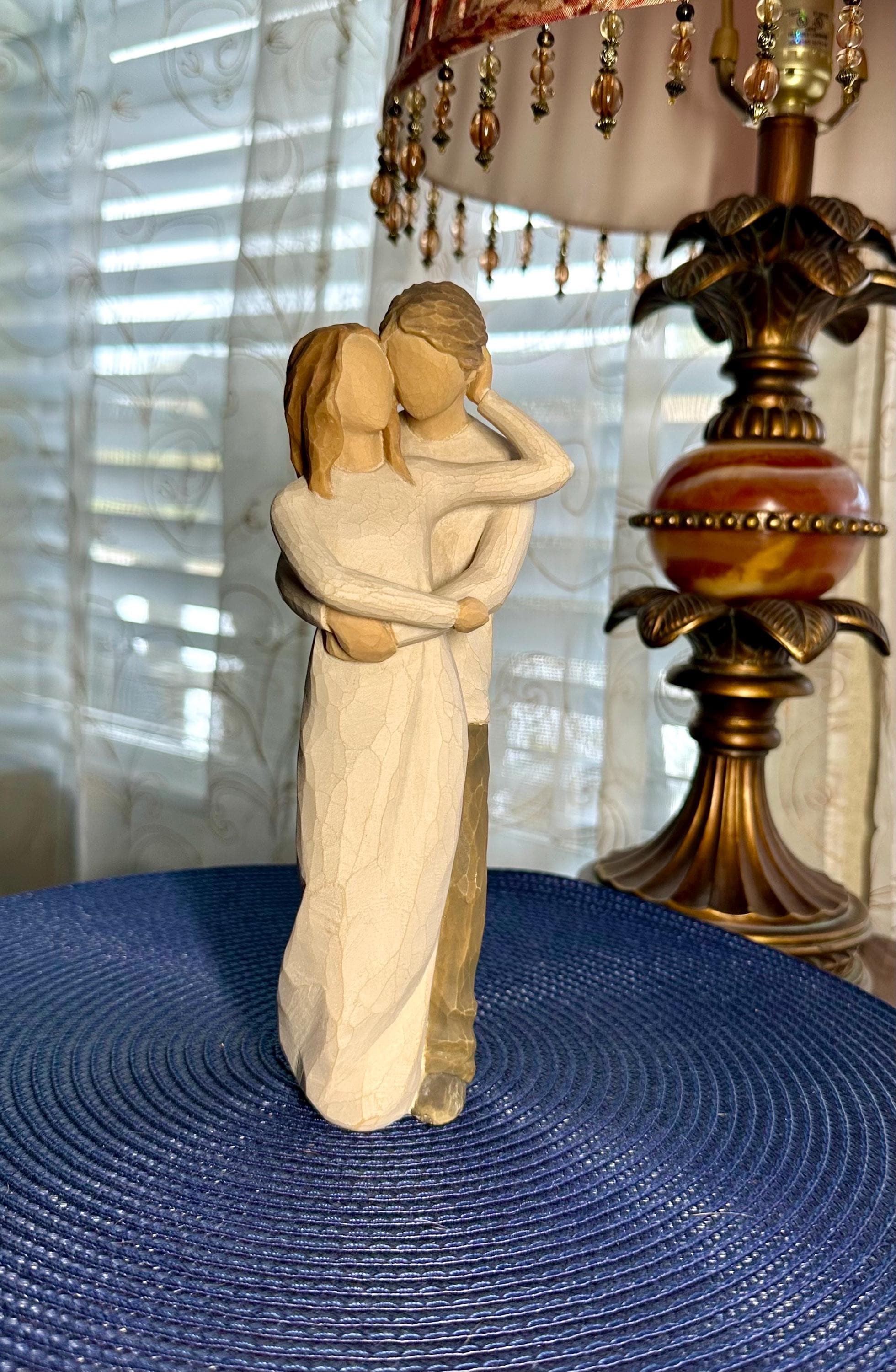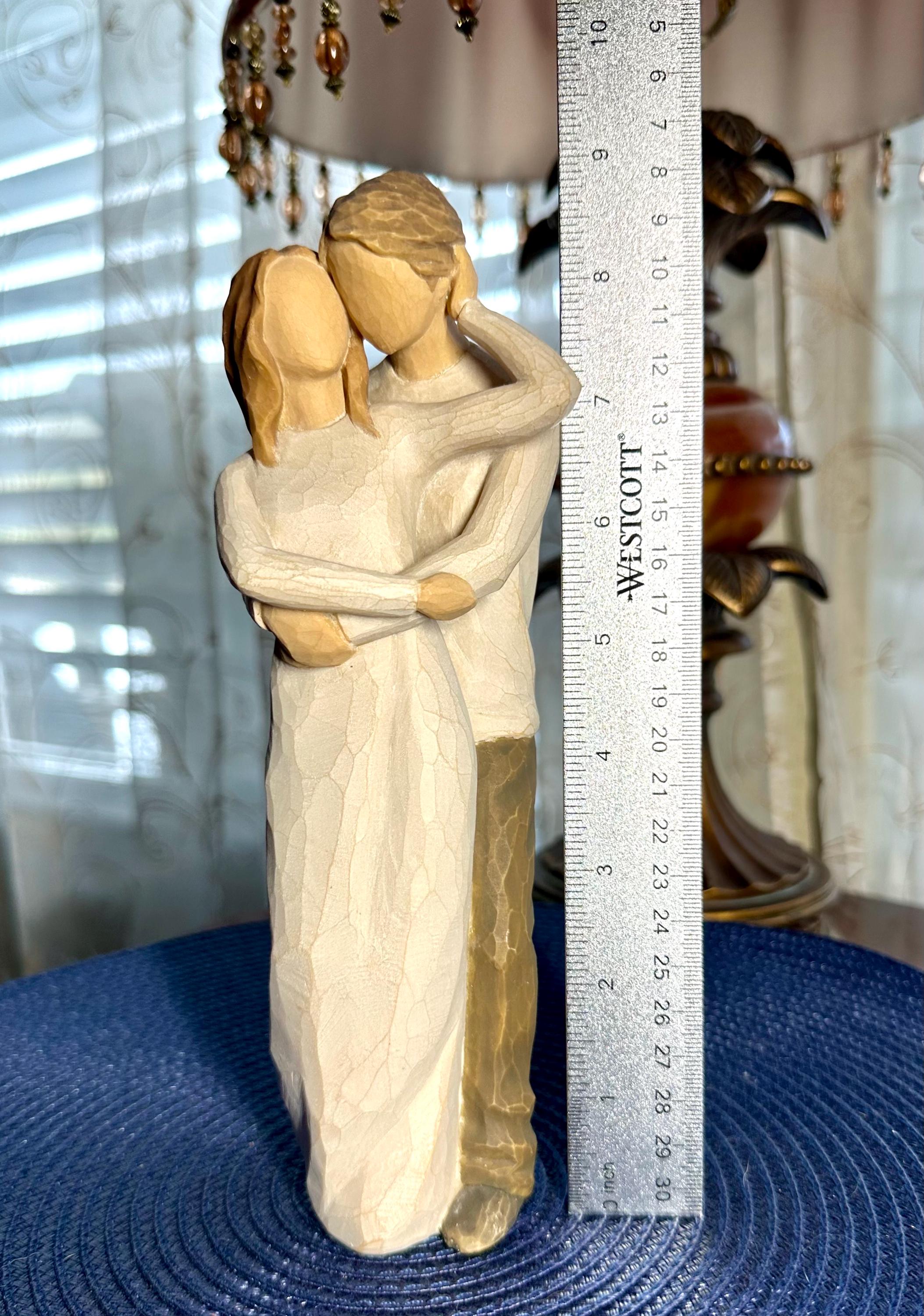 This is a Willow Tree Figurine by Susan Lordi named "Together". This comes with the original box and styrofoam. The styrofoam is not in perfect condition; pictures are included. The original tag is not included. This statue is almost 8 inches tall. There are no chips, cracks or discoloration. On the bottom of the figurine the 'made in China' sticker is worn. Sticker can be removed easily; however, I am not sure if there would be discoloration in the resin. This figurine is in great condition and is priced to sell.