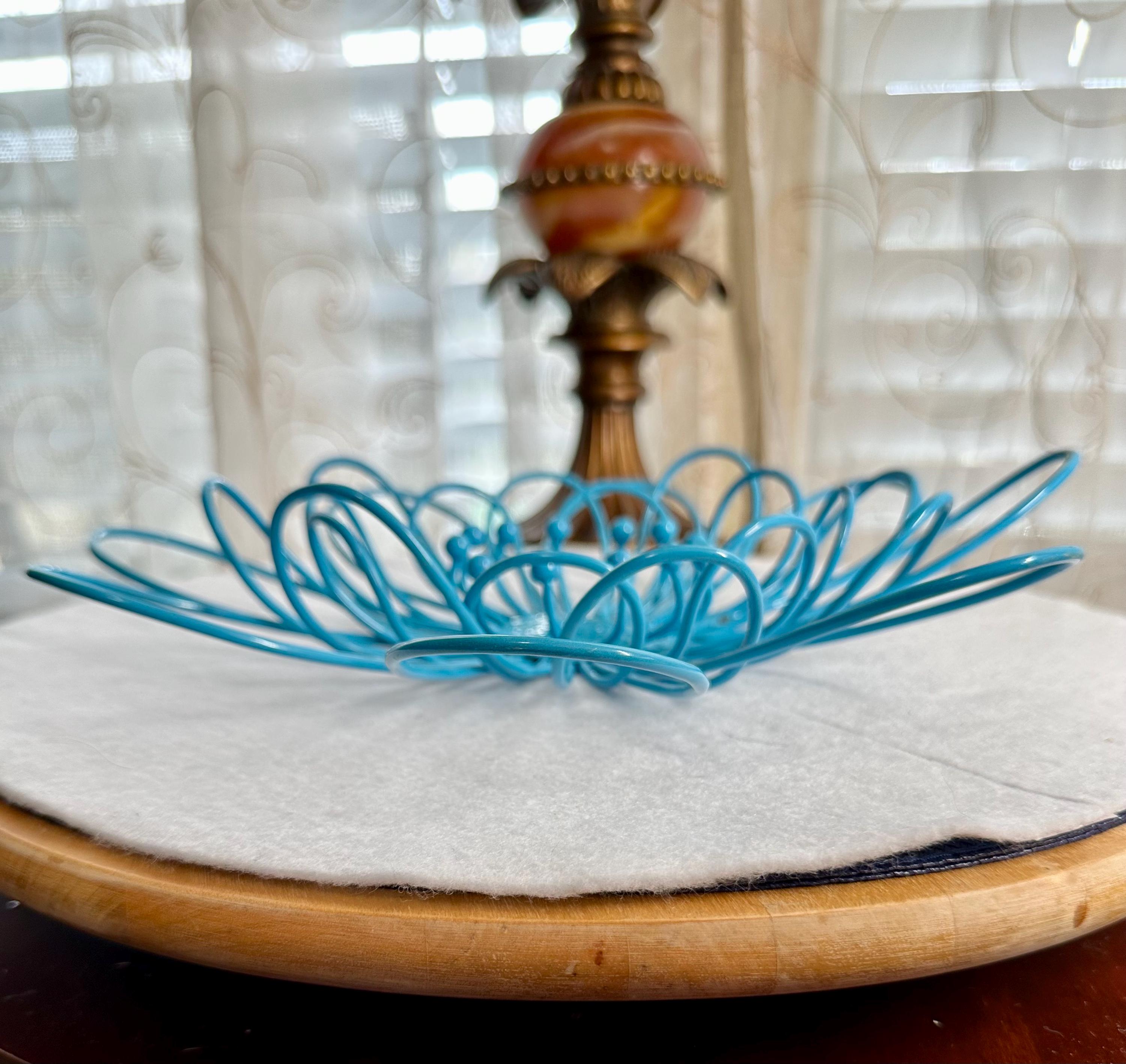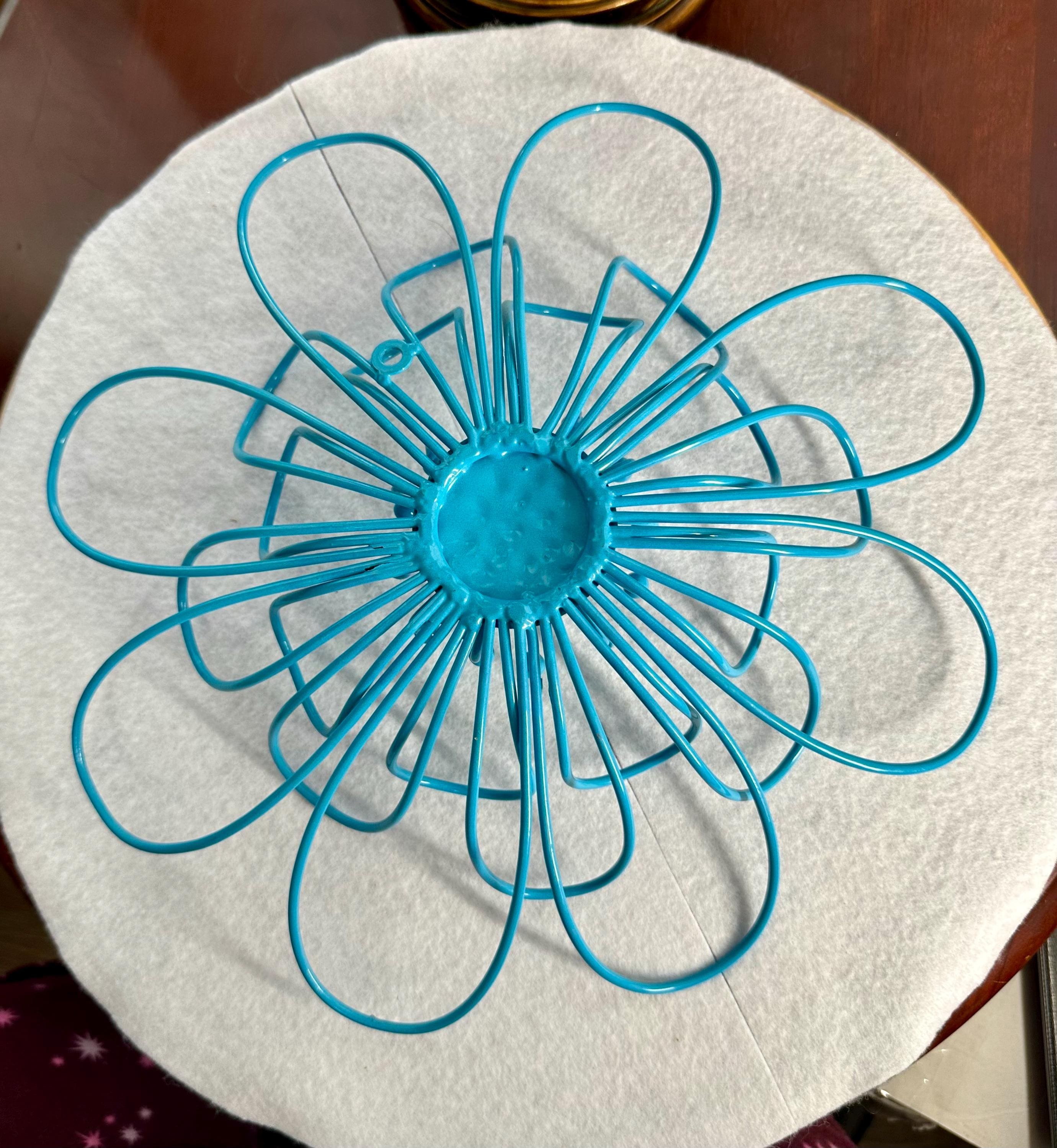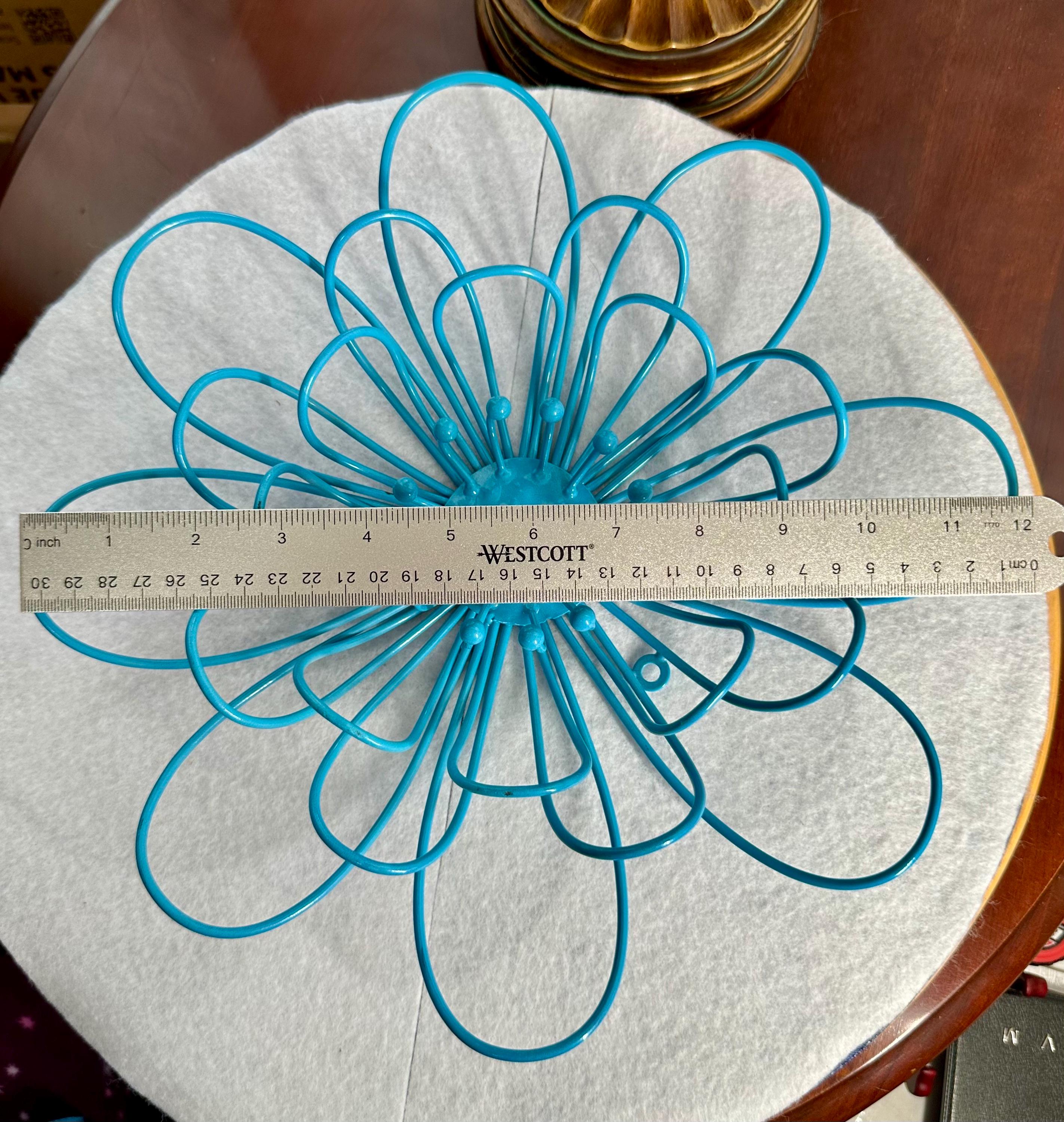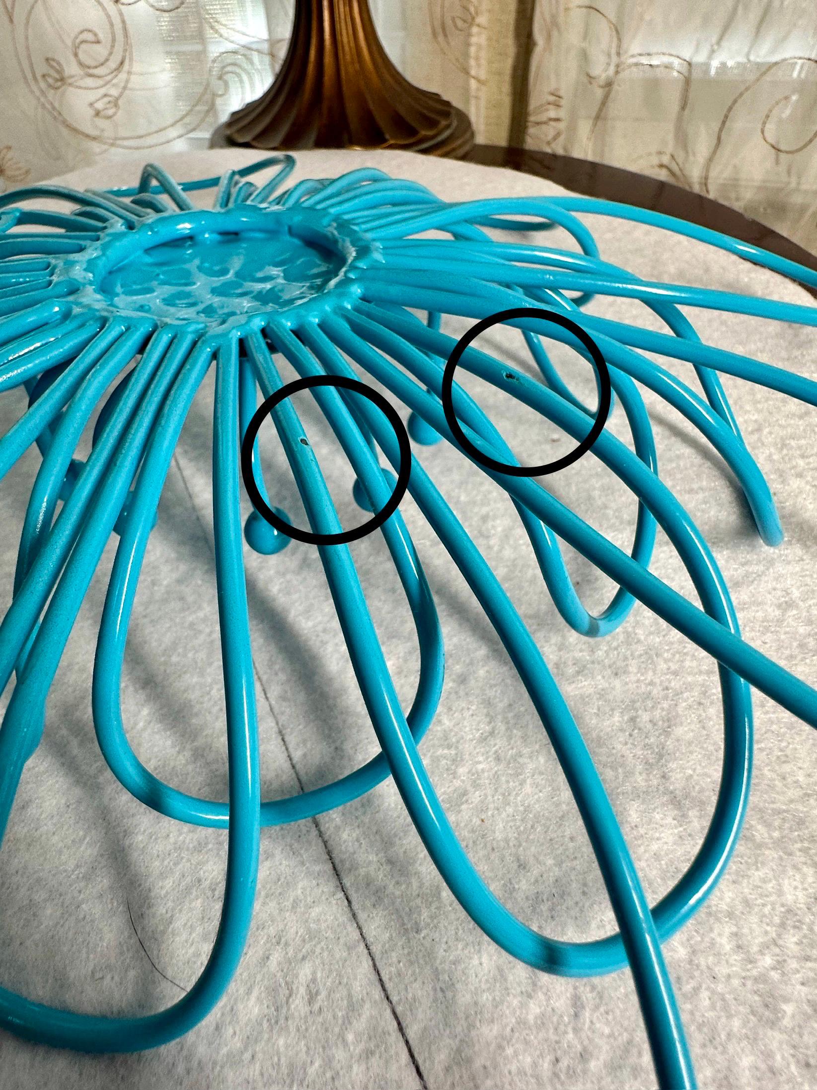 This is a pair of Atomic Turquoise Metal Flowers. These do have a few spots on them where the coating has rubbed off. The areas are small and can be repaired easily. I did not have the correct paint to use to cover up the small areas. I have pictures included. These are 12 inches wide. If you would like additional pictures, please contact me.
