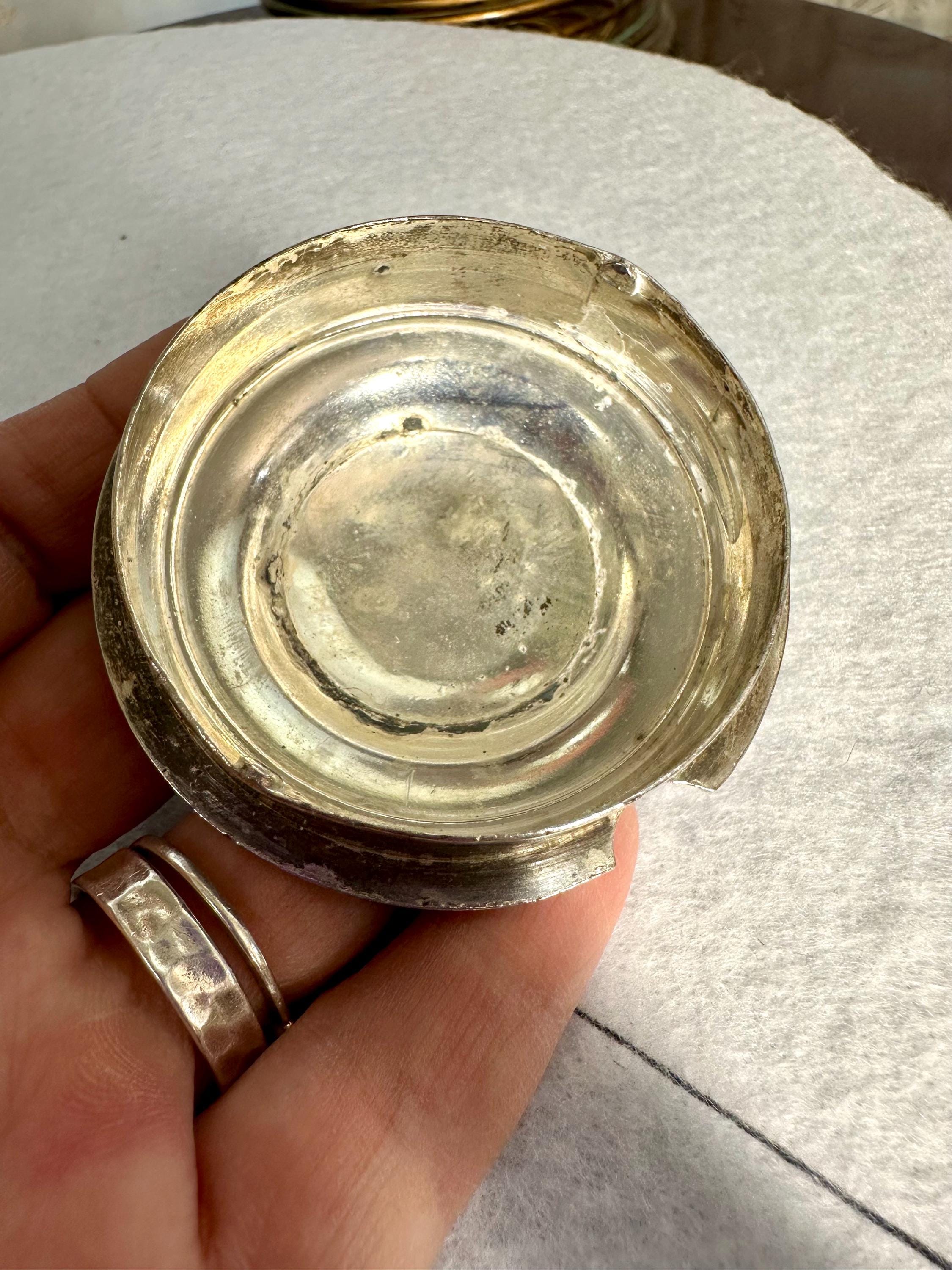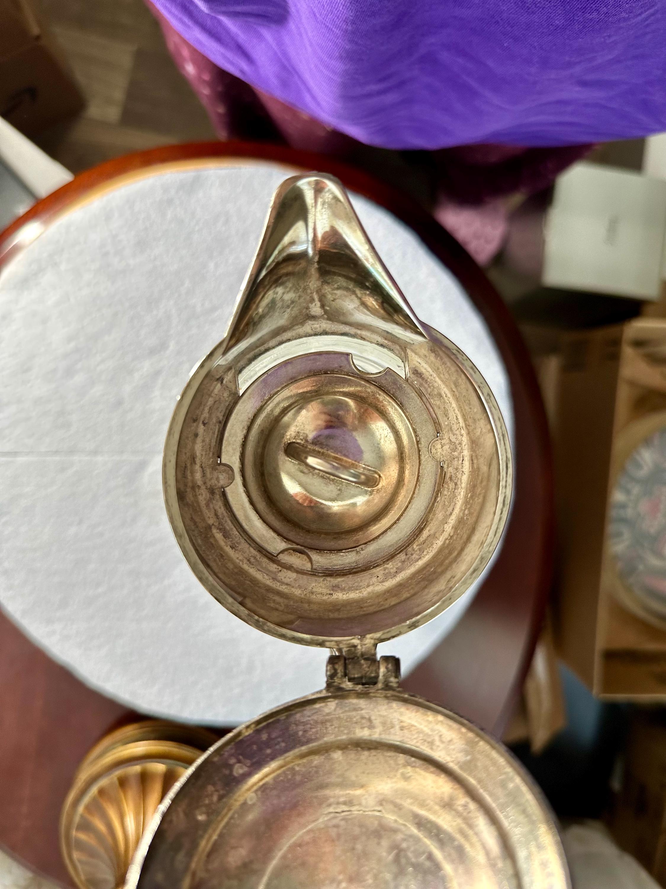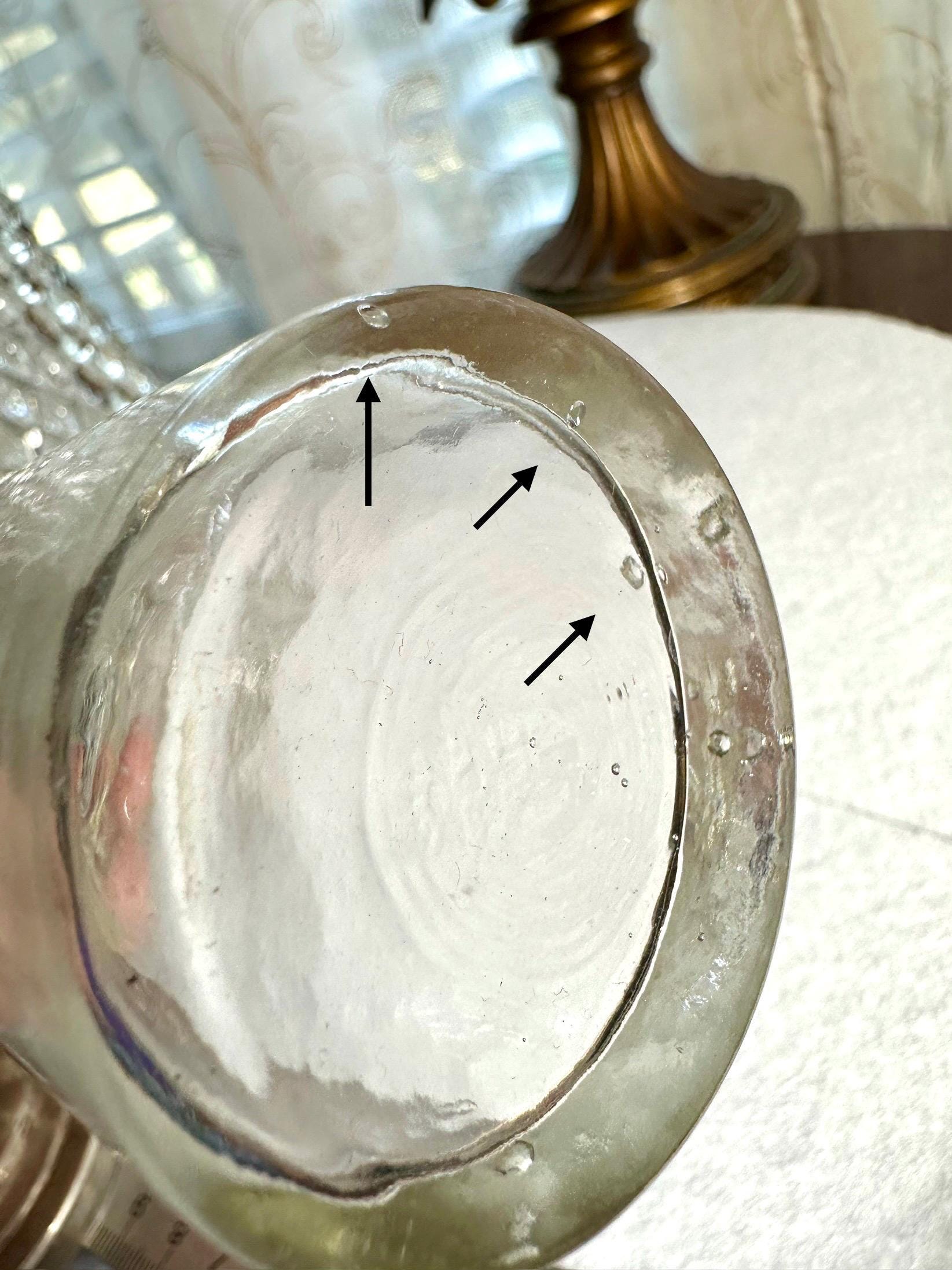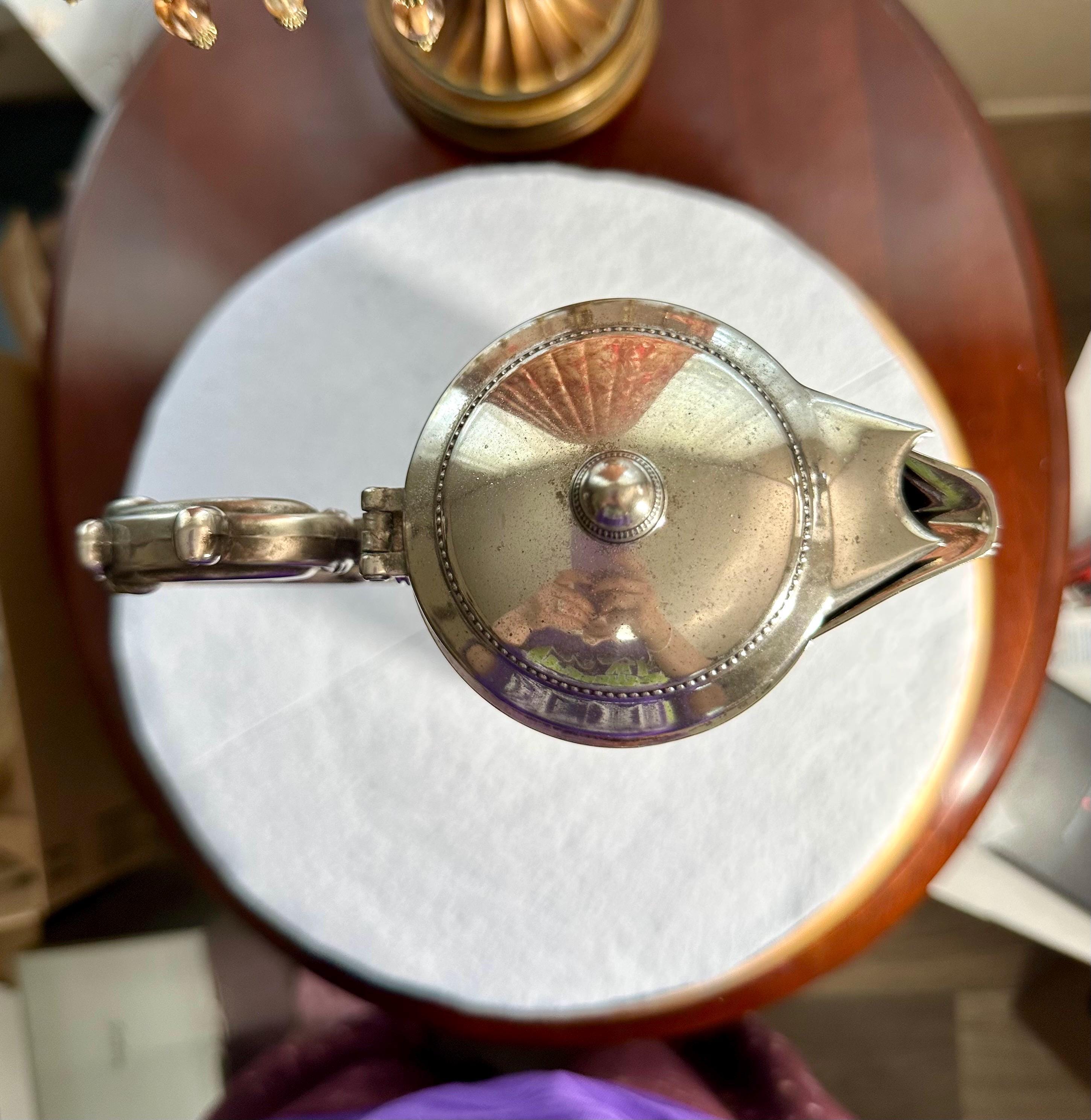 This is a Vintage Crystal Claret Jug with an ice insert. This is NOT in pristine condition. The lid will not unscrew, but the ice insert does come out easily and can be put back in without any effort. There is mild patina on the silver that can be easily buffed out if you would like to do that. There is also tarnish on the inside of the ice lid. I left it in this condition since I know that some people prefer it to have a "vintage" look. There are a few stains on the interior of the glass, but that is only because I could not find a brush long enough to clean the bottom. There are natural bubbles in the glass. Pictures are included. This stands at 14 inches tall, 5 inches wide at the bottom, and 7 inches wide from the handle to the spout. I recommend that this item be hand-washed and not put in the dishwasher, microwave, or on the stove top.