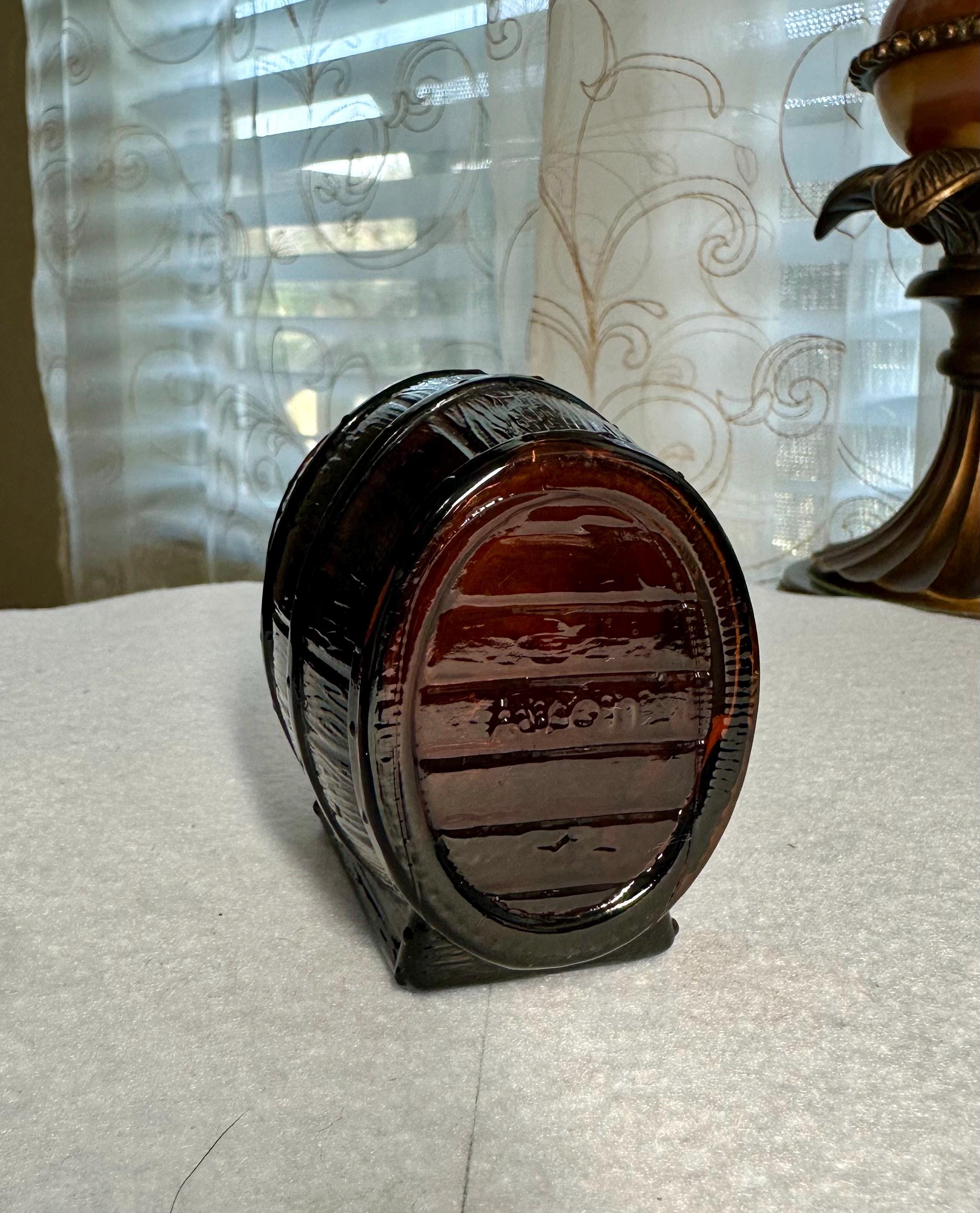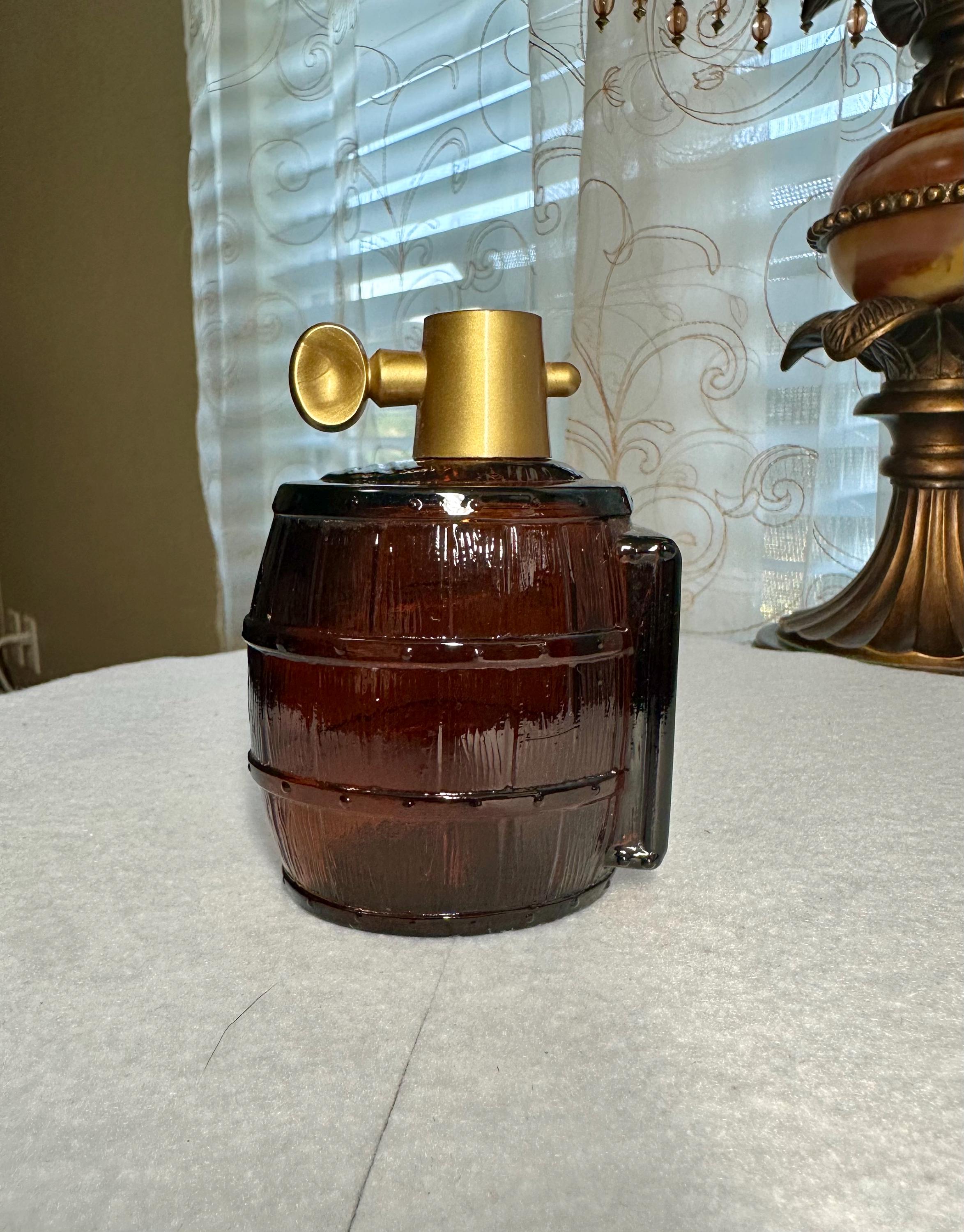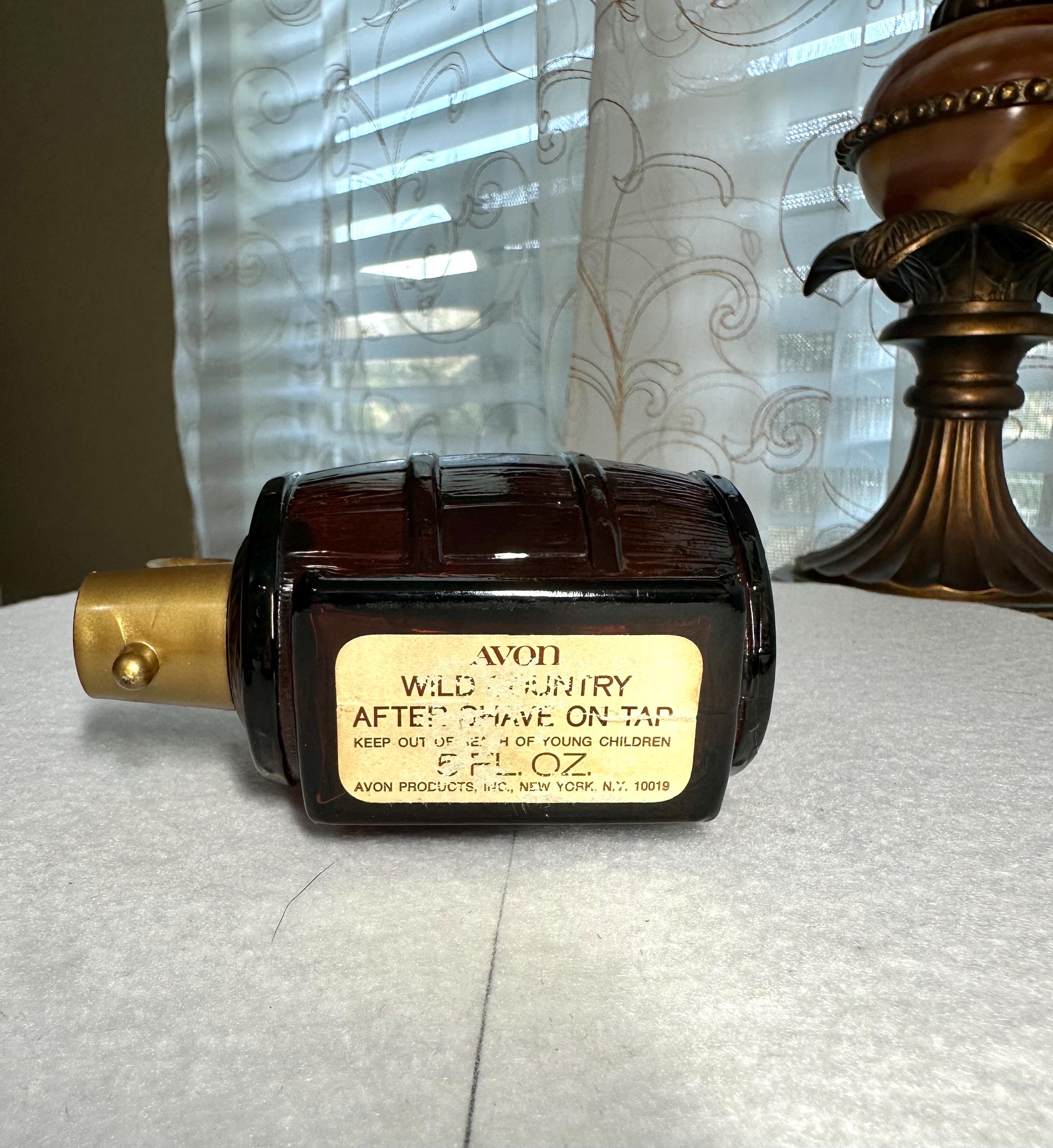 This is an Avon Wild Country Aftershave Bottle. This bottle is emptied but you can still smell the remnants of this masculine aftershave. This bottle is 4 inches wide and 3 1/2 inched tall There are no chips, cracks or crazing. The sticker on the bottom is slightly worn.